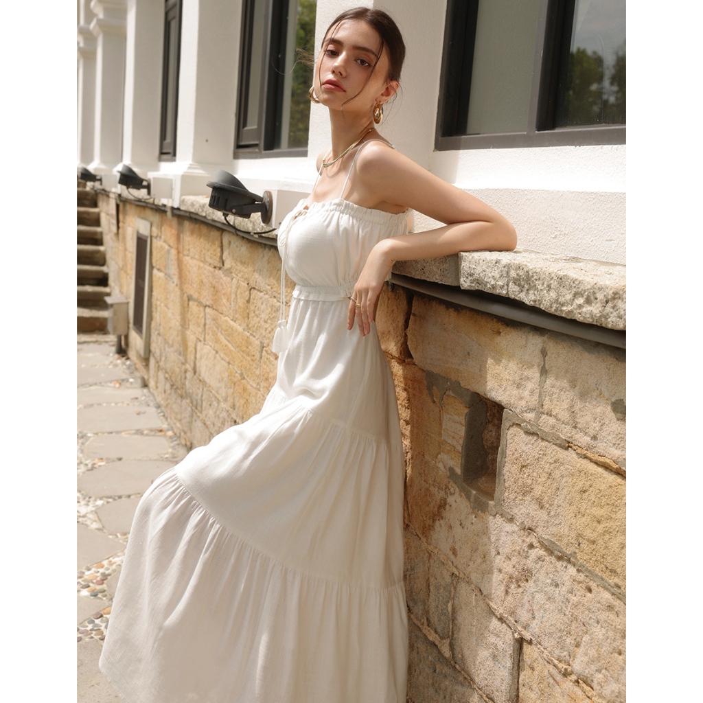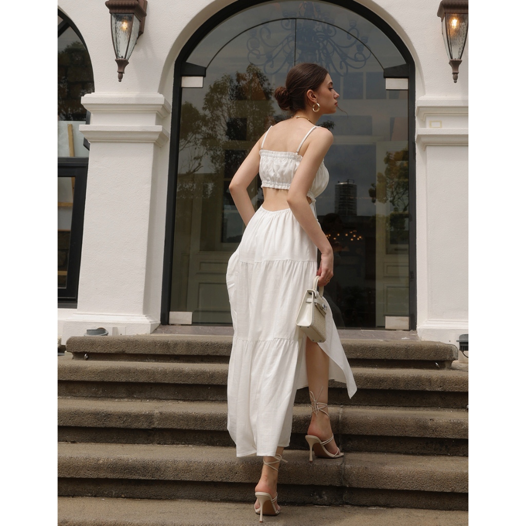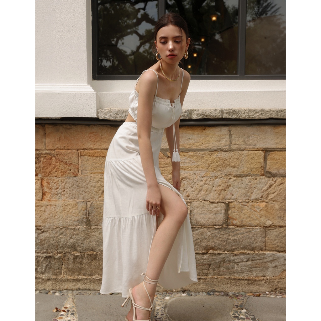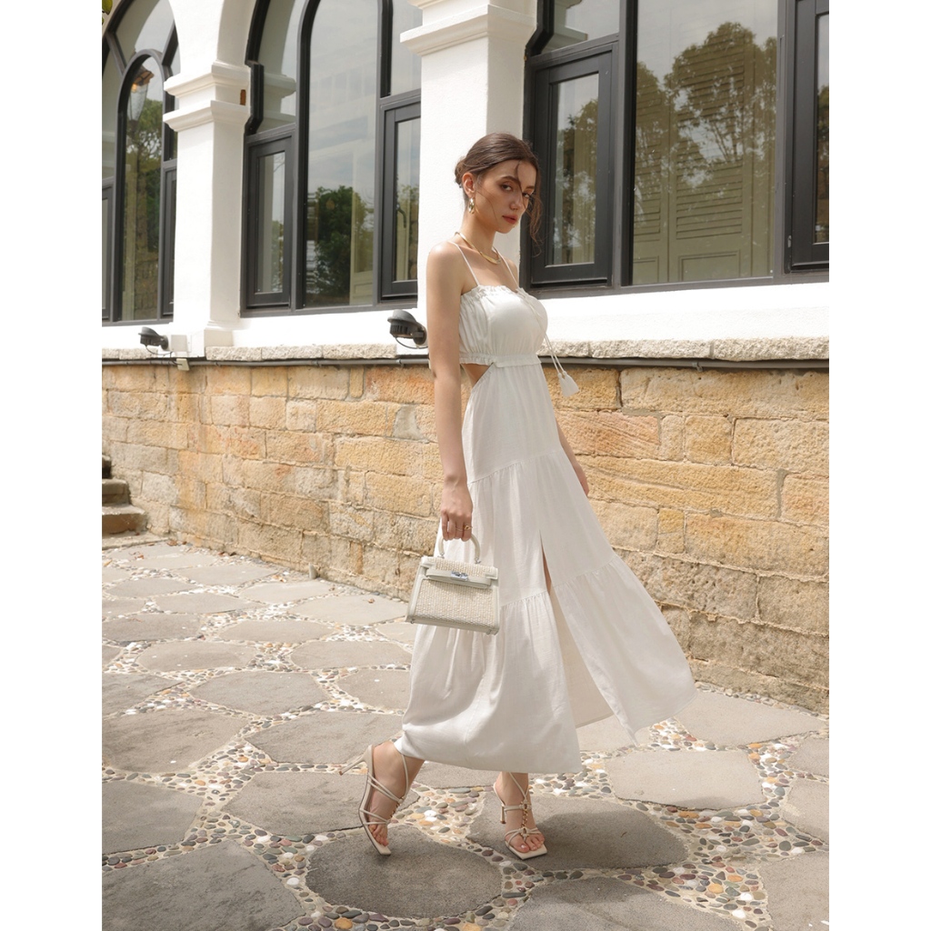 AIR SPACE 流蘇綁帶側開衩露背細肩帶長洋裝(附胸墊)(白/黃) 女裝 現貨白,S|白,M|白,L|黃,S|黃,M|黃,LAIR SPACE