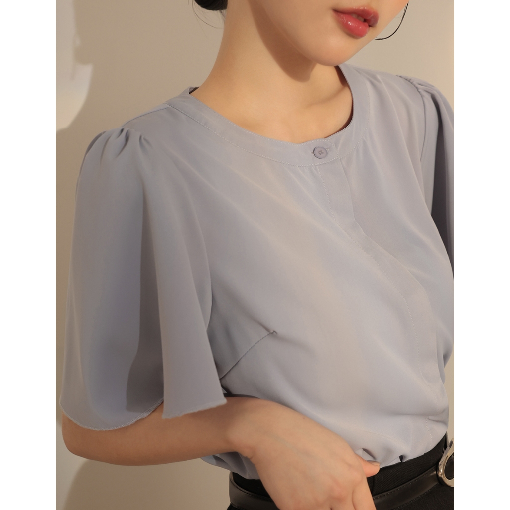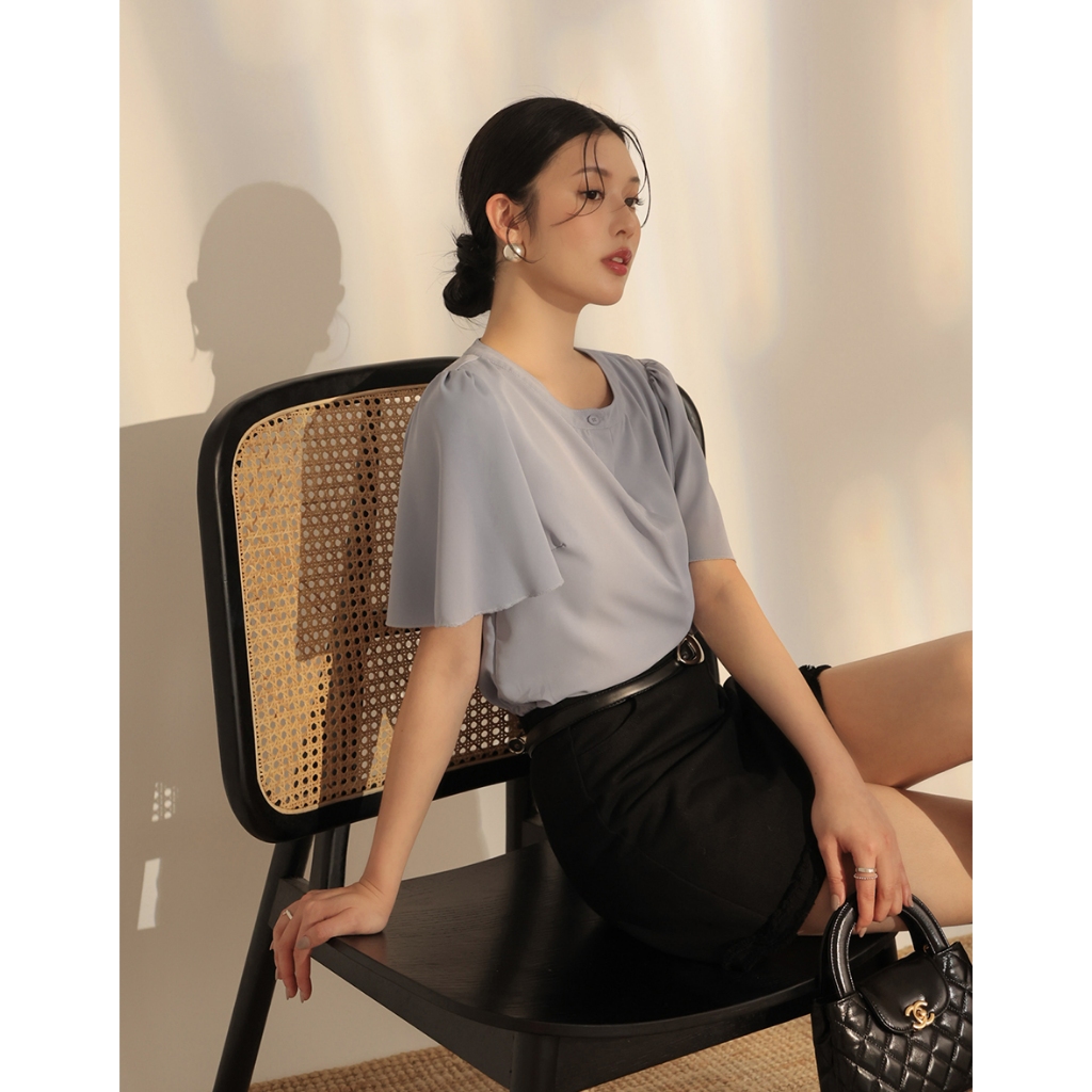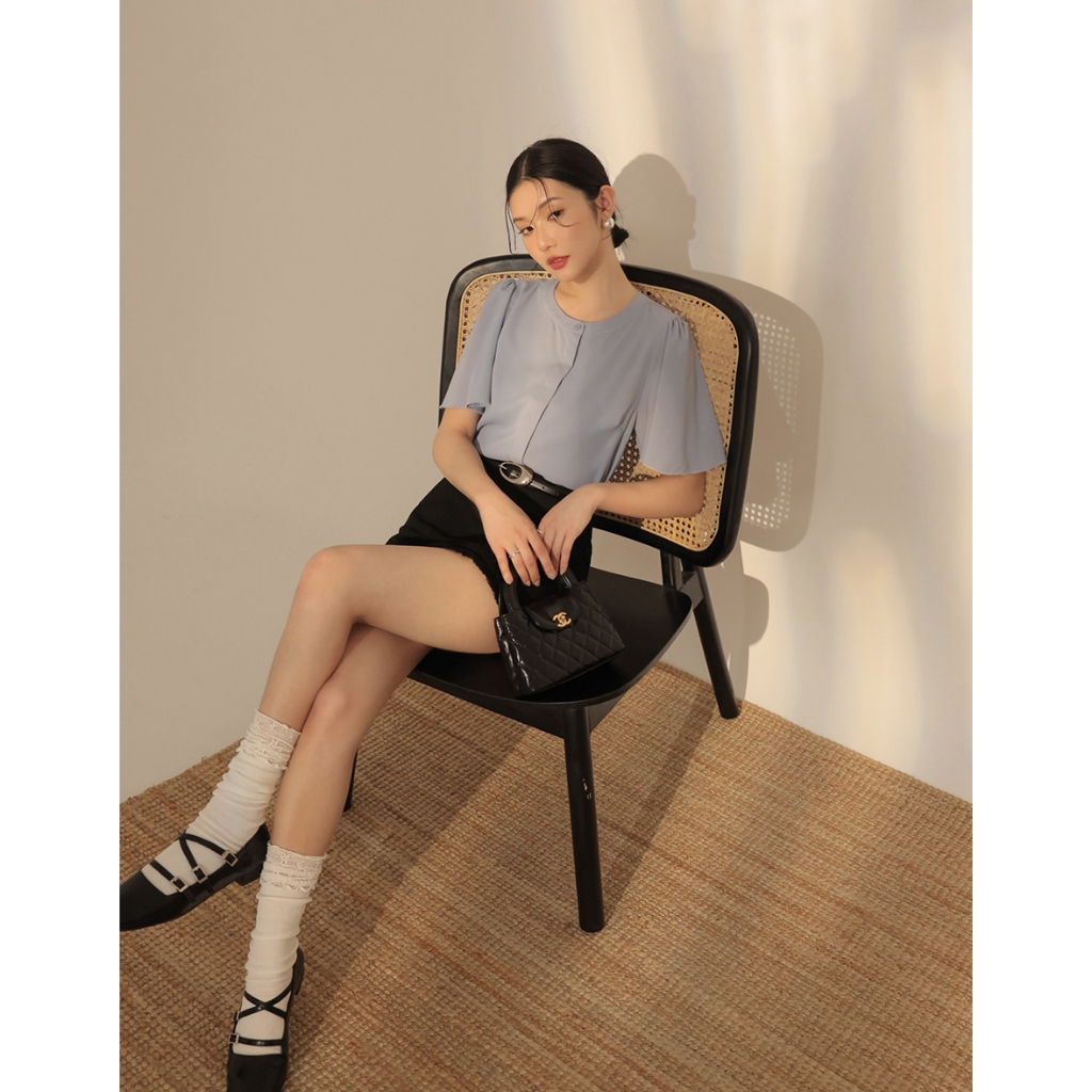 CHIC A SPACE 暗門襟配色傘袖上衣(藍/杏) 女裝 現貨藍,S|藍,M|藍,L|杏,S|杏,M|杏,LT-shirtsAIR SPACE