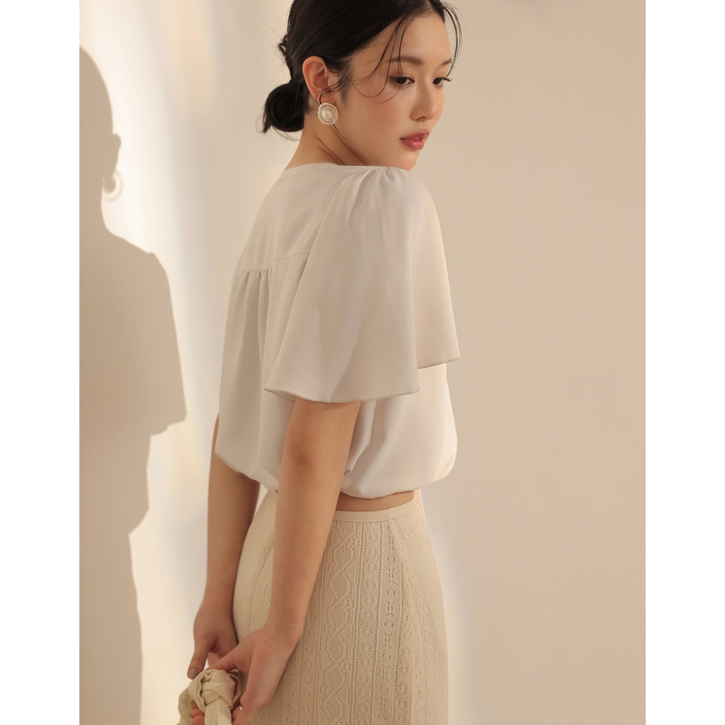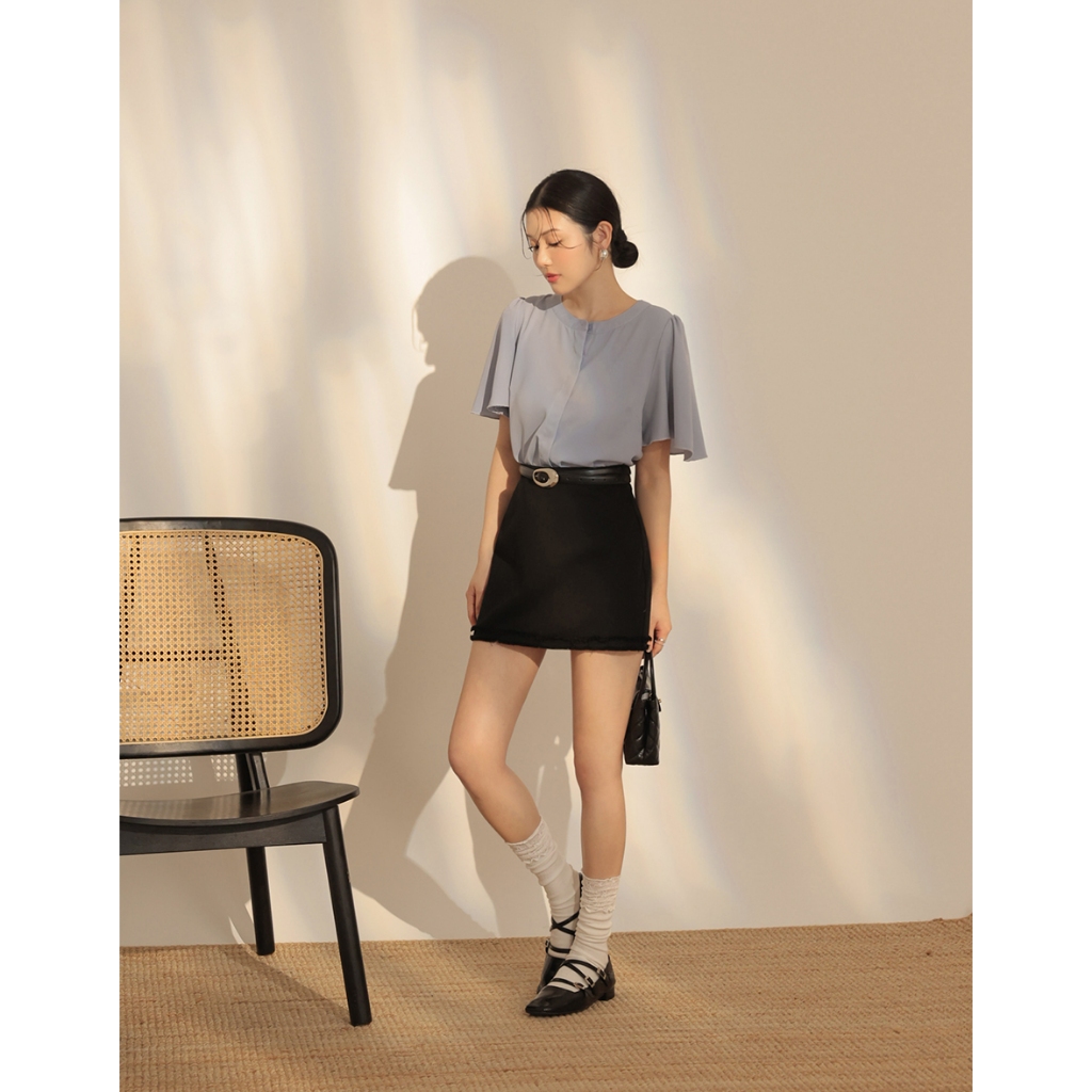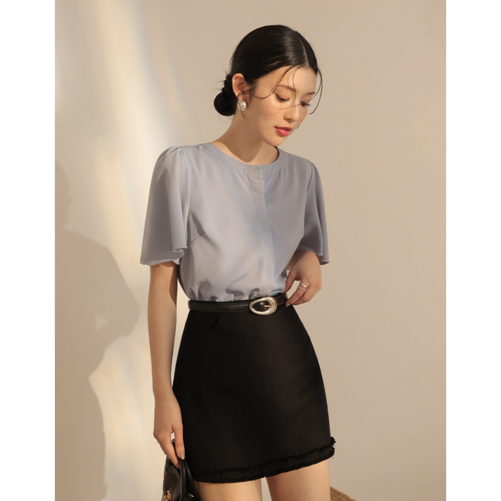 CHIC A SPACE 暗門襟配色傘袖上衣(藍/杏) 女裝 現貨藍,S|藍,M|藍,L|杏,S|杏,M|杏,LT-shirtsAIR SPACE
