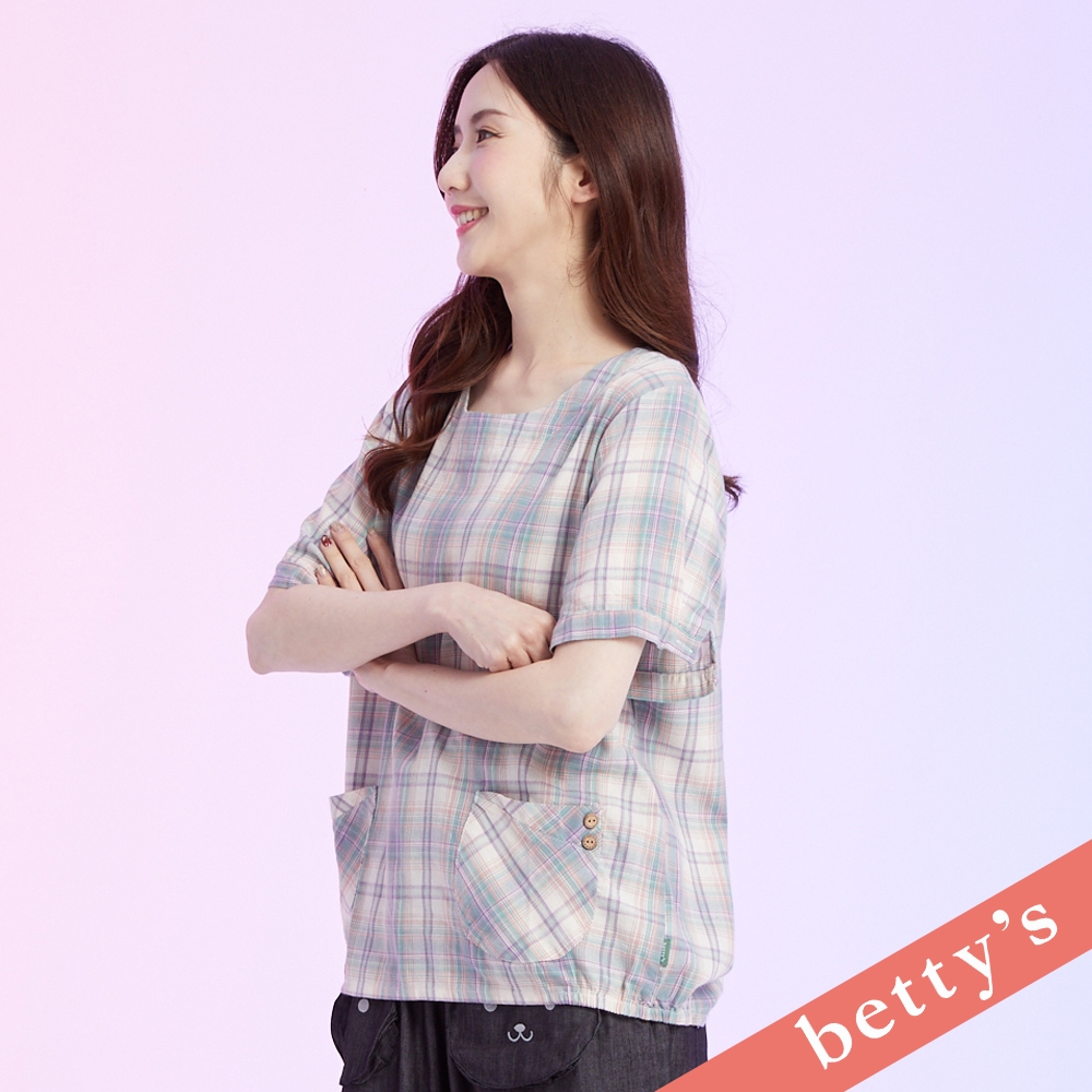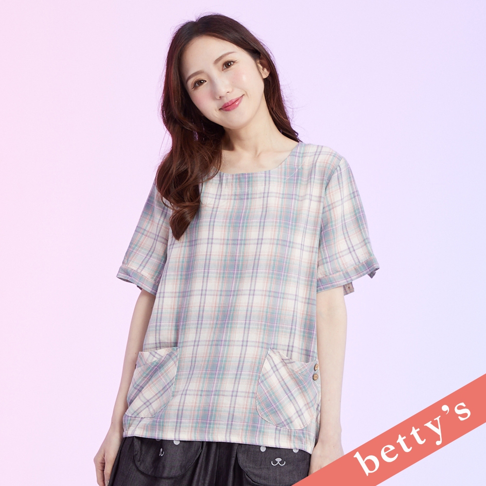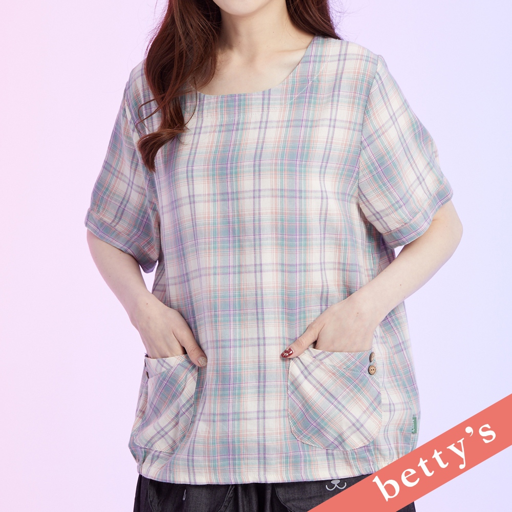 betty’s貝蒂思(41)多彩格紋口袋短袖上衣(淺綠)淺綠,M|淺綠,L|淺綠,XLT-shirtsbetty’s貝蒂思