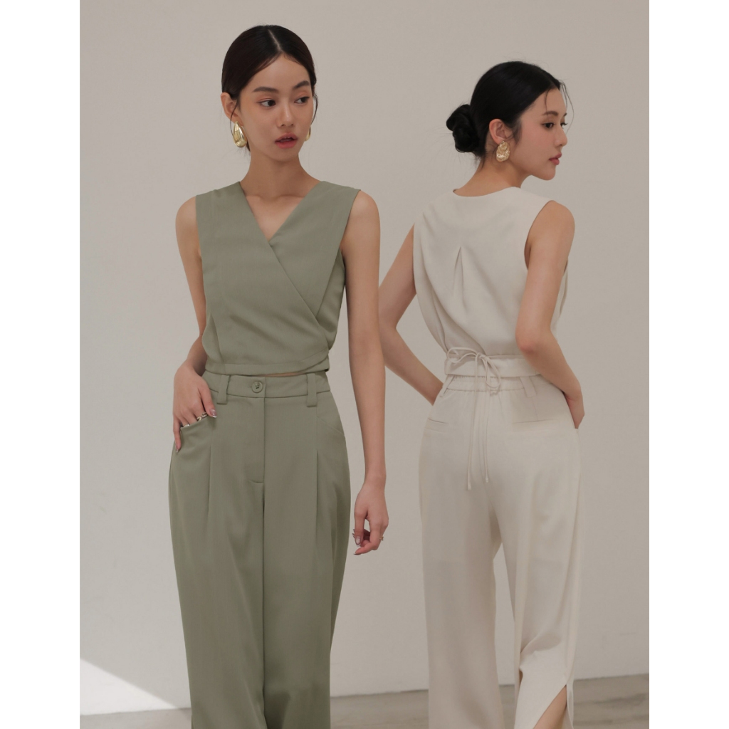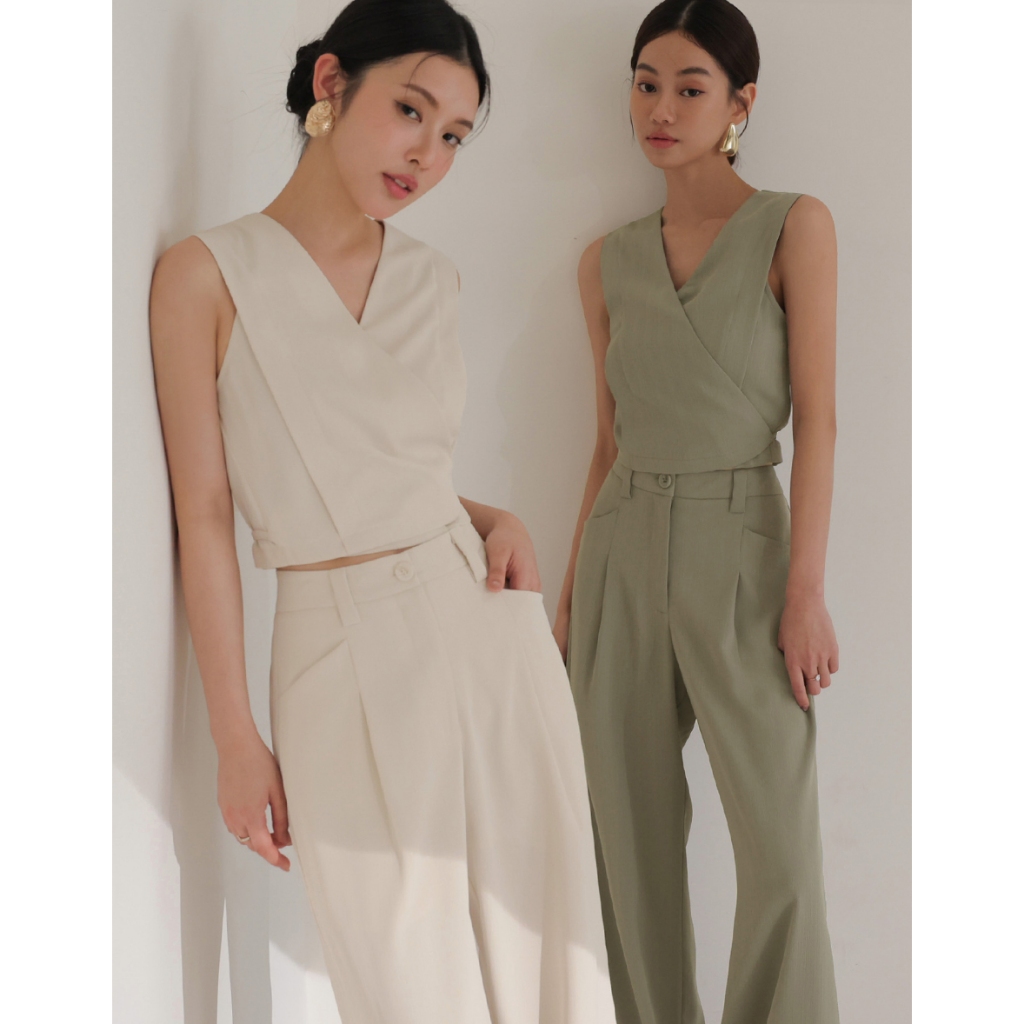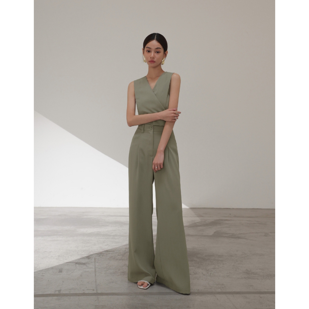 CHIC A SPACE 俐落高腰打褶西裝褲(杏/綠) 女裝 現貨杏,S|杏,M|杏,L|綠,S|綠,M|綠,LPantsAIR SPACE