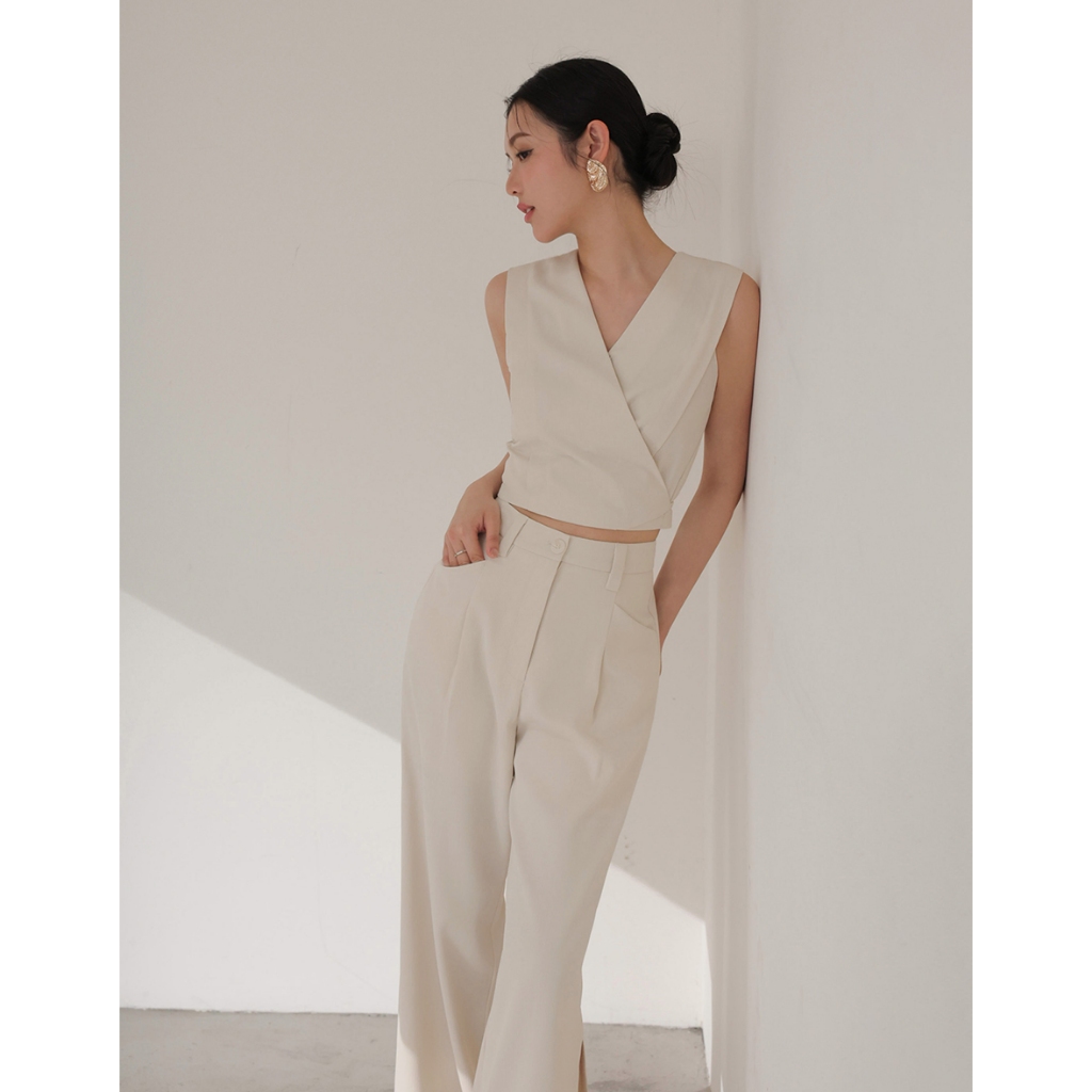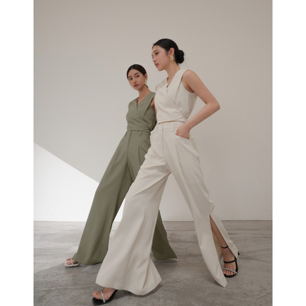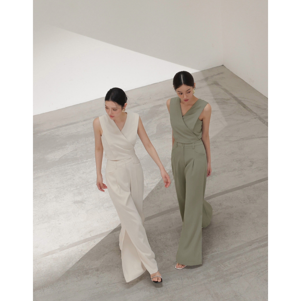 CHIC A SPACE 俐落高腰打褶西裝褲(杏/綠) 女裝 現貨杏,S|杏,M|杏,L|綠,S|綠,M|綠,LPantsAIR SPACE