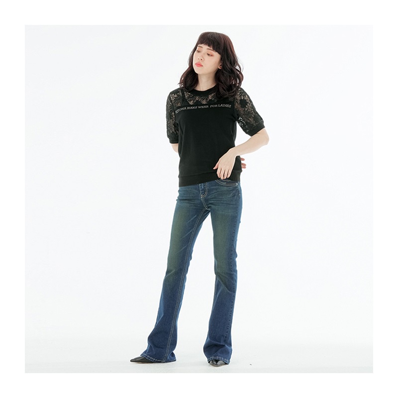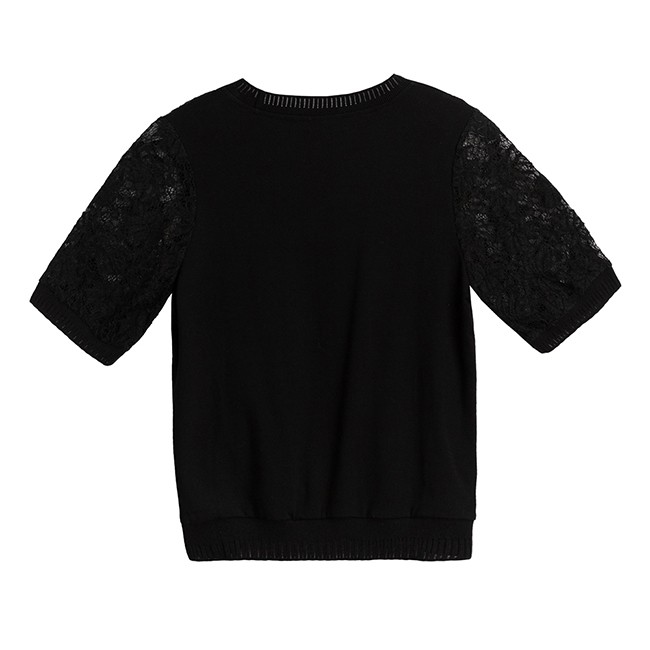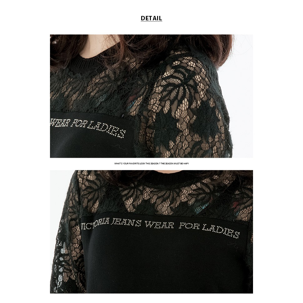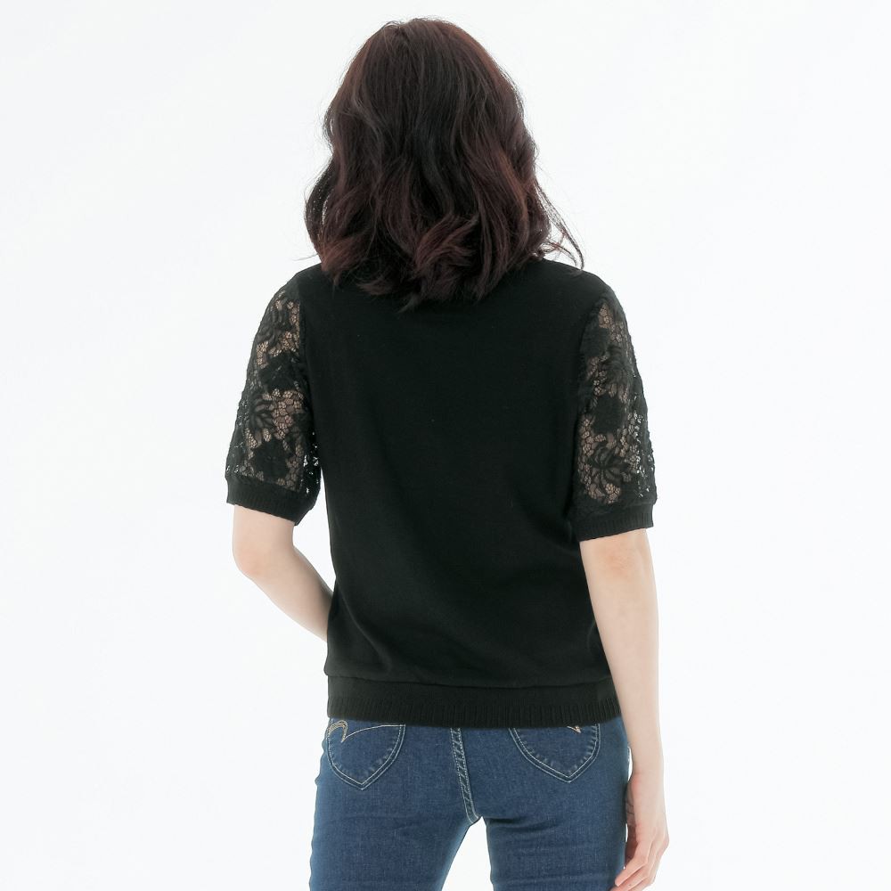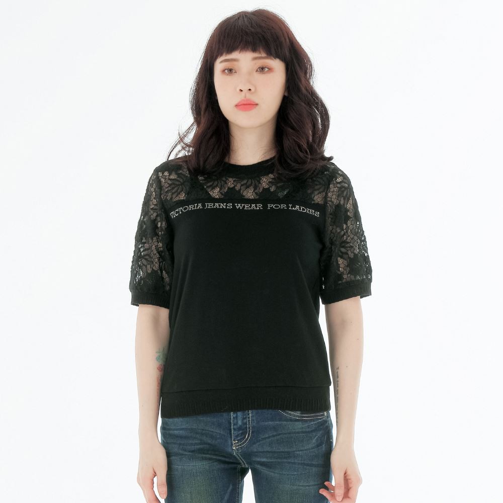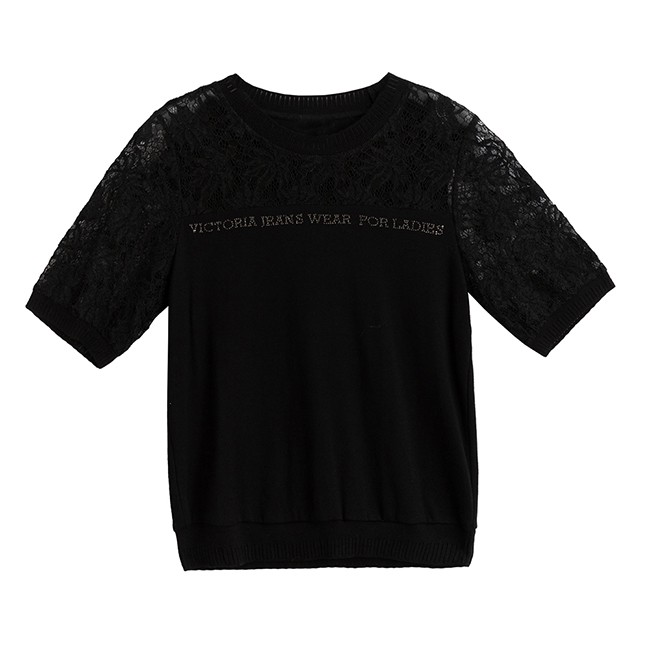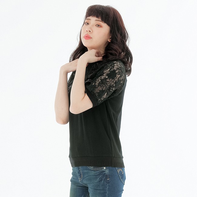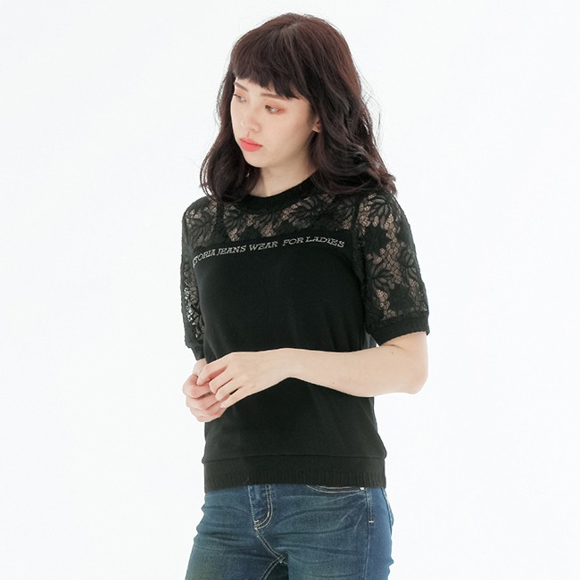 VICTORIA 刷毛蕾絲剪接女線衫-黑M|L|ST-shirtsBIG TRAIN 官方旗艦店
