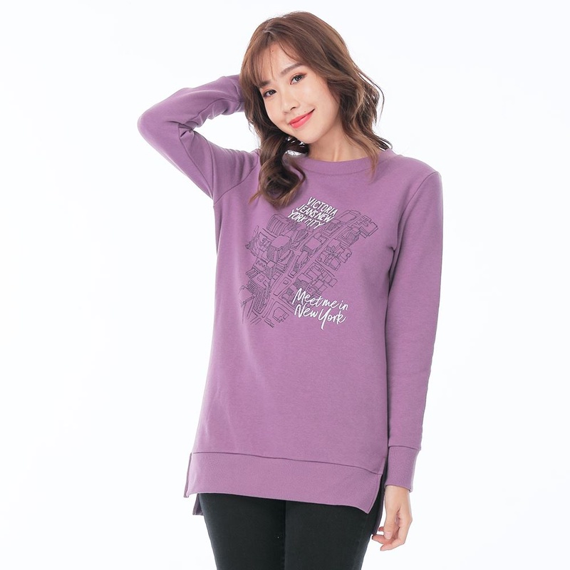 VICTORIA城市插畫長版厚絨T-淺紫-V25264-61淺紫,S|淺紫,M|淺紫,LT-shirtsBIG TRAIN 官方旗艦店