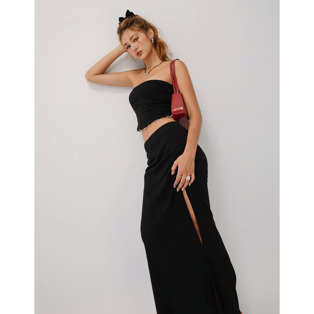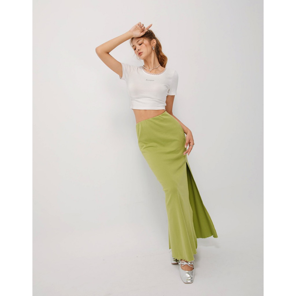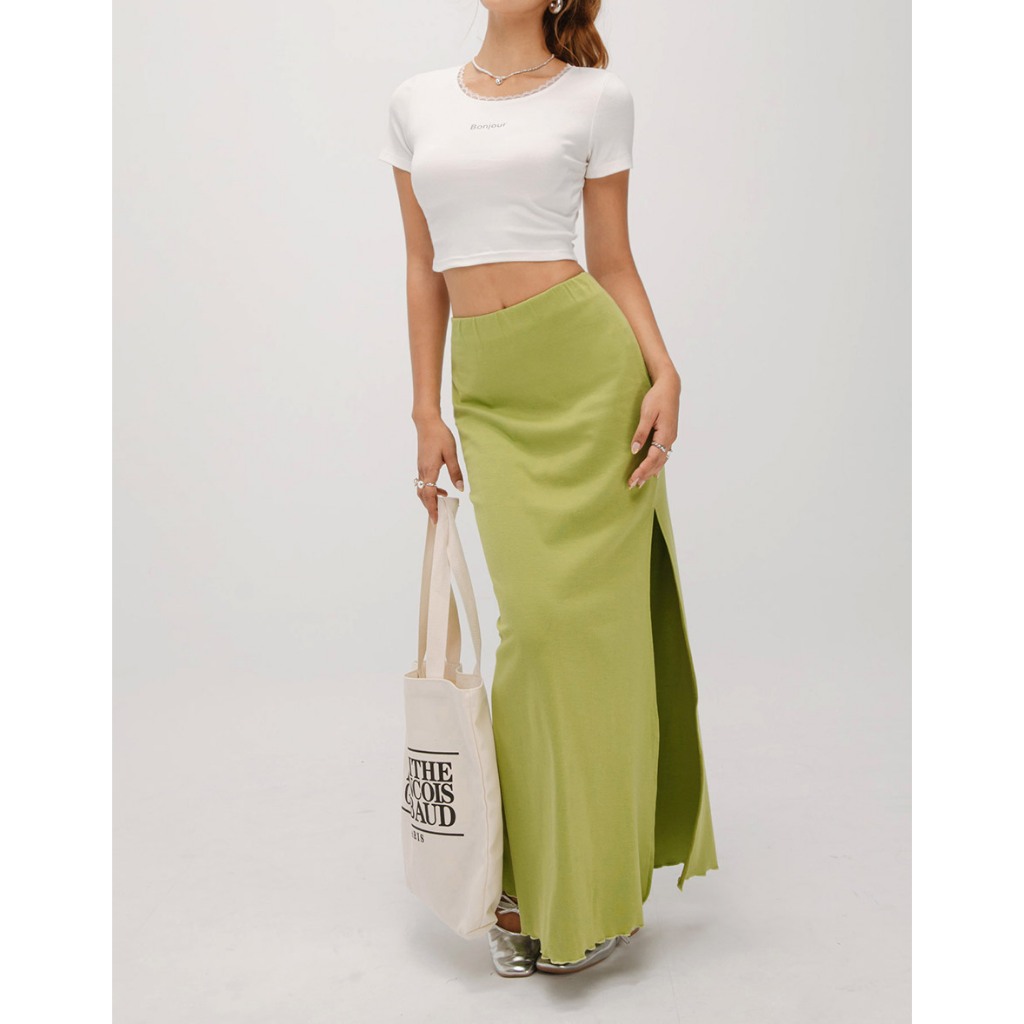 AIR SPACE 木耳捲柔滑包臀開衩長裙(黑/綠/咖啡) 女裝 現貨黑,S|黑,M|黑,L|綠,S|綠,M|綠,L|咖啡,S|咖啡,M|咖啡,LAIR SPACE