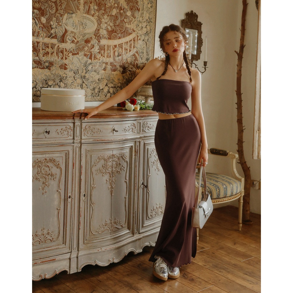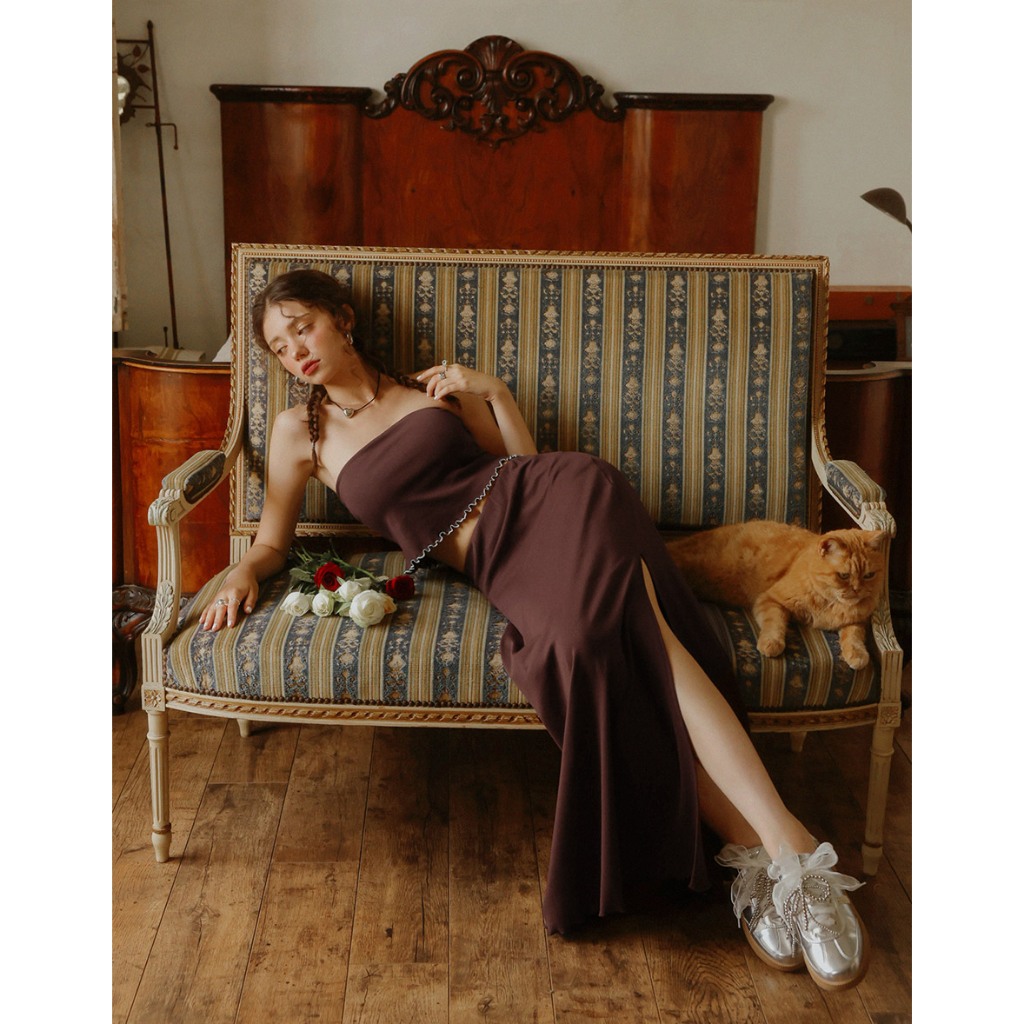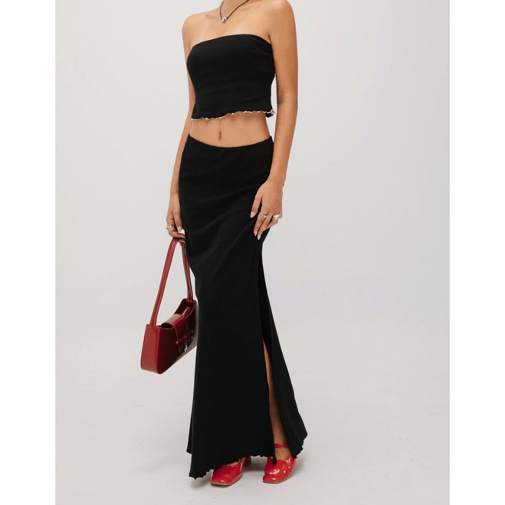 AIR SPACE 木耳捲柔滑包臀開衩長裙(黑/綠/咖啡) 女裝 現貨黑,S|黑,M|黑,L|綠,S|綠,M|綠,L|咖啡,S|咖啡,M|咖啡,LAIR SPACE