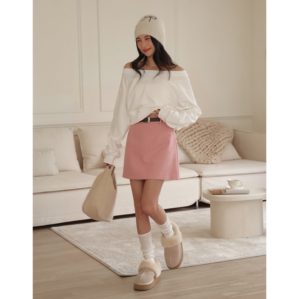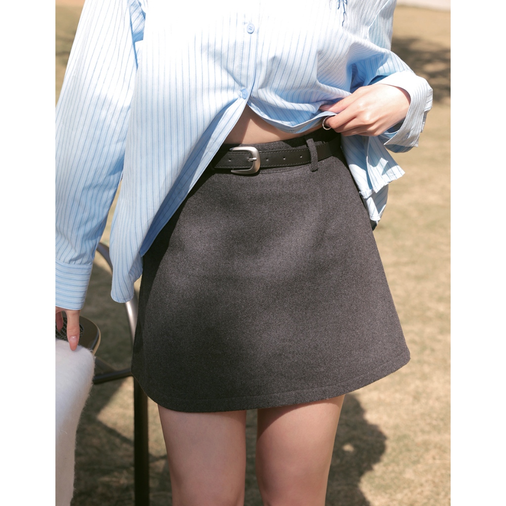 AIR SPACE LADY 純色毛呢短裙(附皮帶)(粉紅/深灰) 女裝 現貨粉紅,S|粉紅,M|粉紅,L|深灰,S|深灰,M|深灰,LAIR SPACE