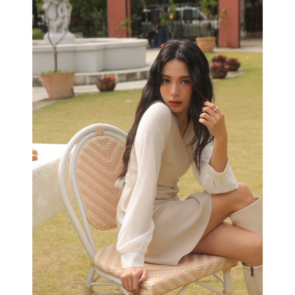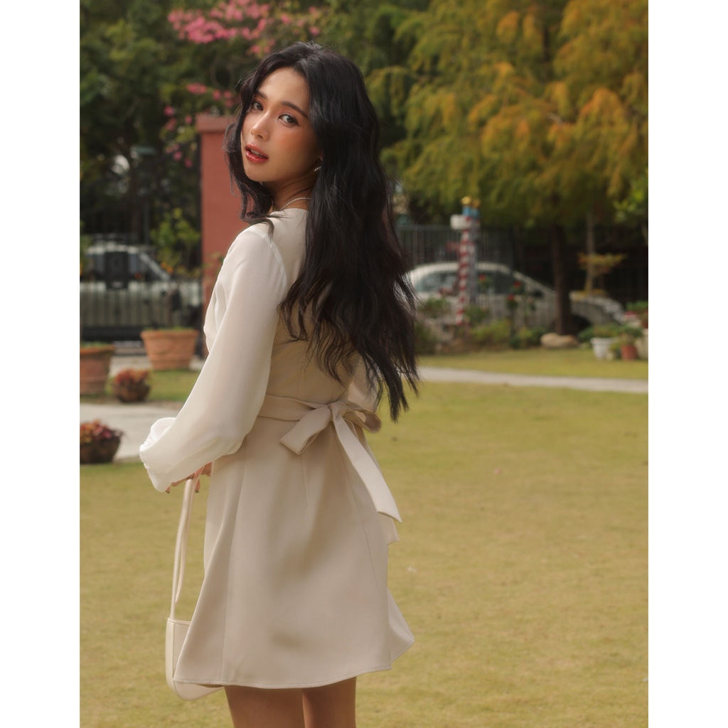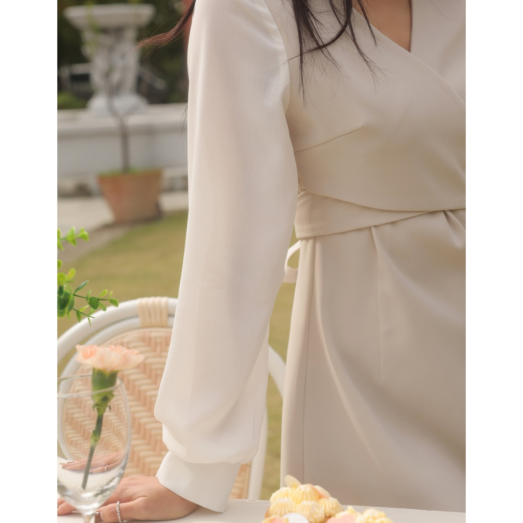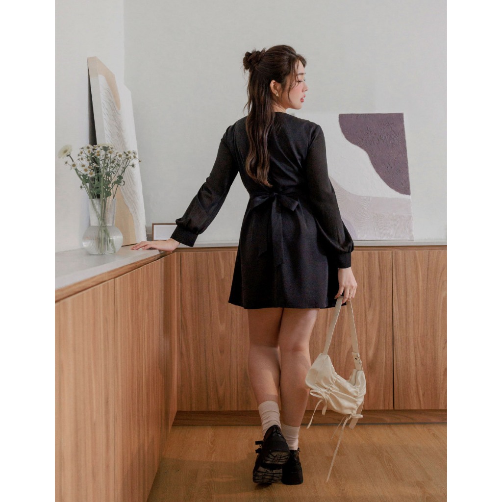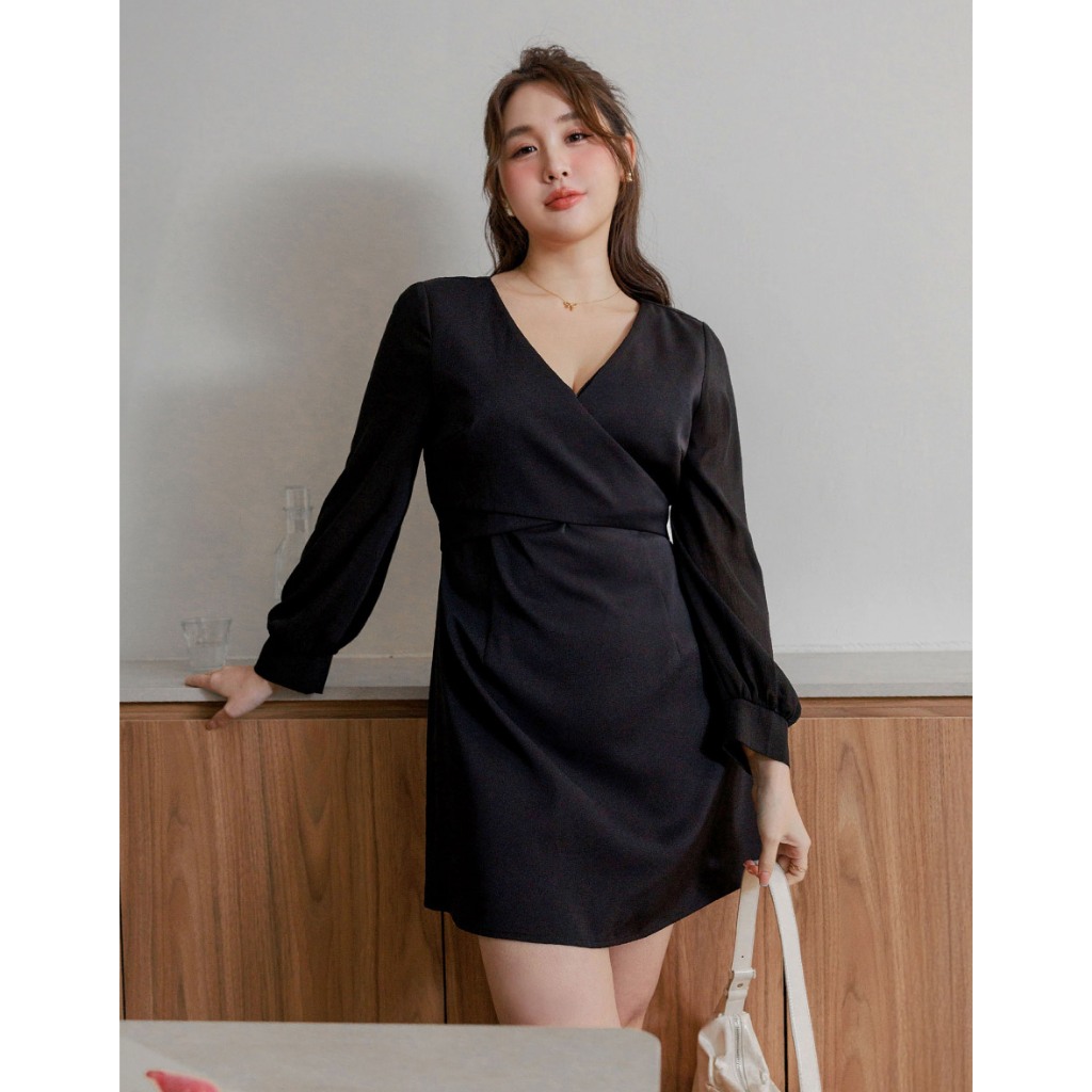 AIR SPACE PLUS 優雅透膚交叉綁帶短洋裝(黑/杏) 女裝 現貨 大尺碼 中大尺碼黑,XL|黑,2XL|黑,3XL|杏,XL|杏,2XL|杏,3XLAIR SPACE