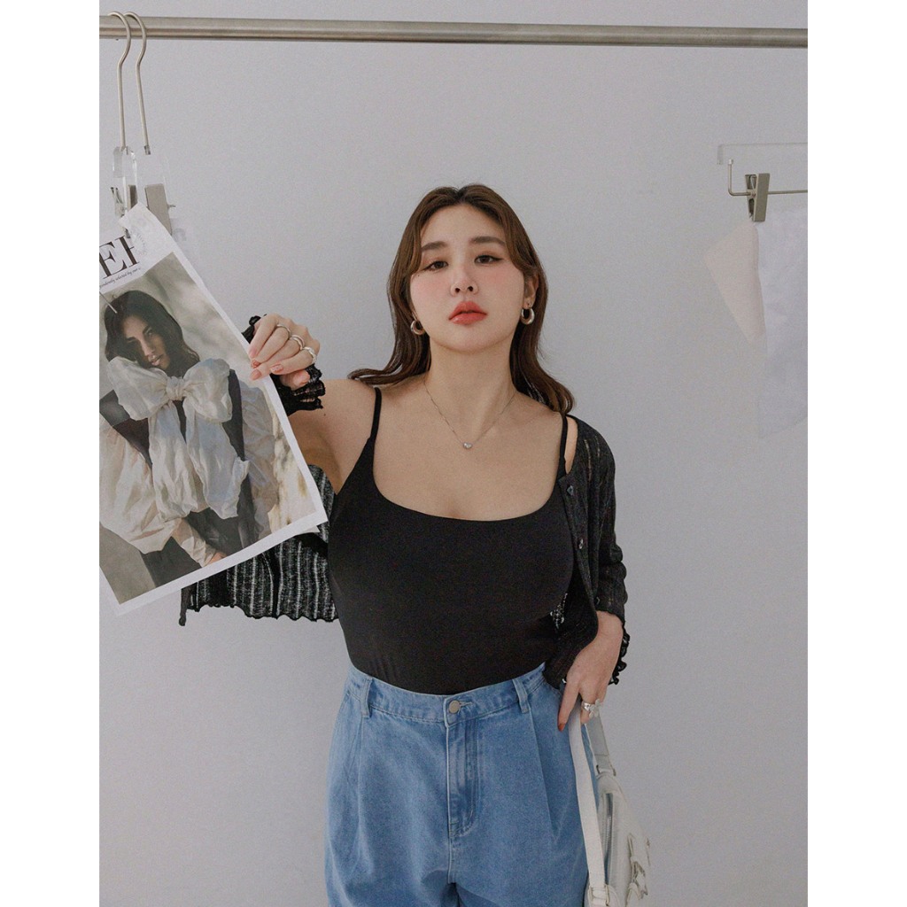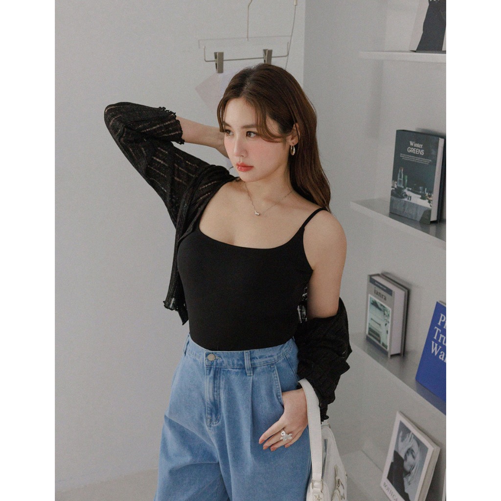 AIR SPACE 柔膚細肩背心(附胸墊)(黑/白/藍/灰杏) 女裝 現貨