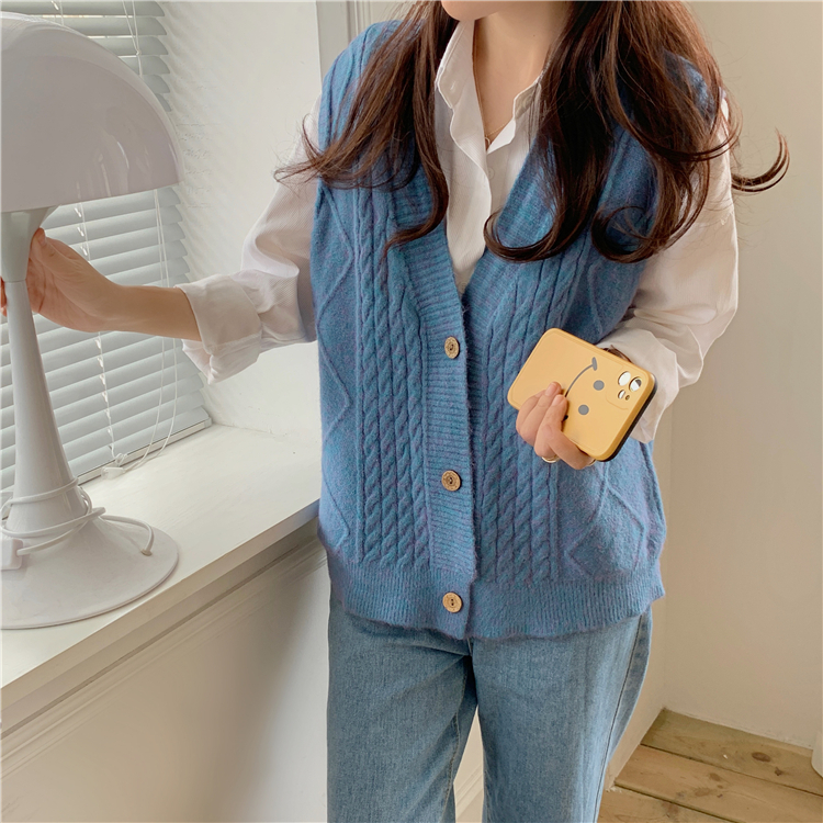 ANNE|出清中|245降163| 毛衣背心【AC10301】無袖毛衣 版寬鬆V領 無袖針織毛衣 馬甲背心 針織背心綠色|藍色|深灰色|粉紅色|杏色ANNE 孕婦裝 孕婦內衣褲 專櫃平替