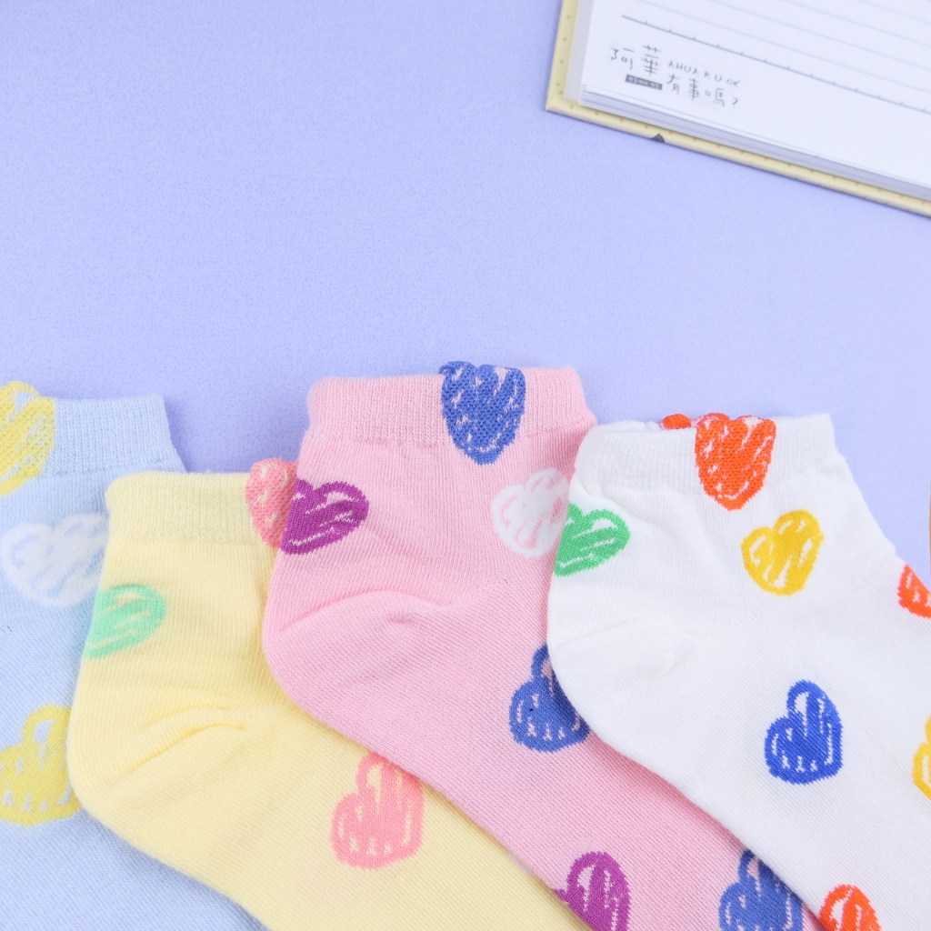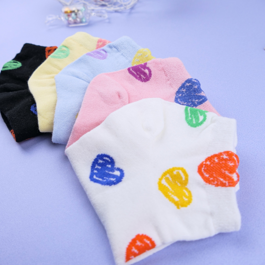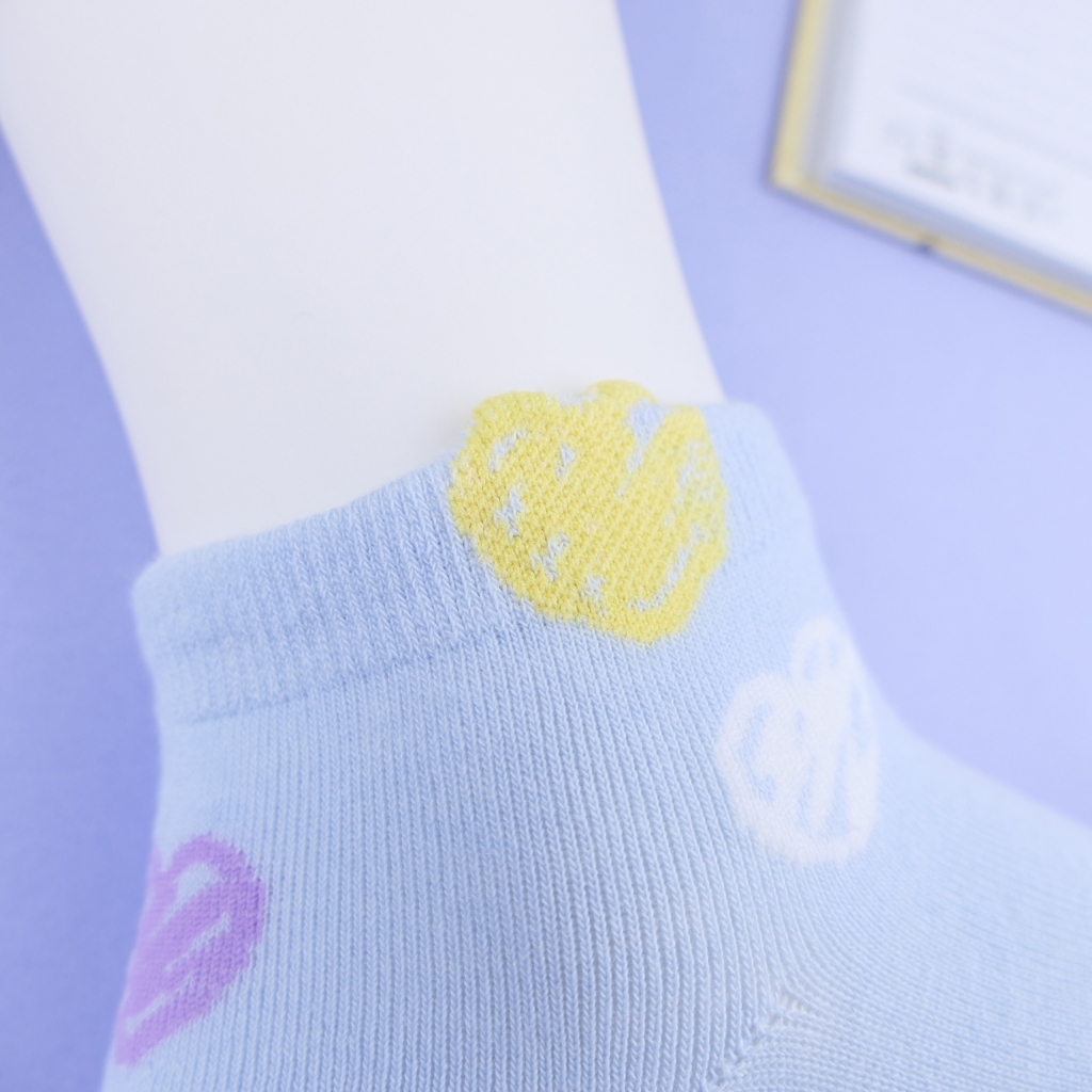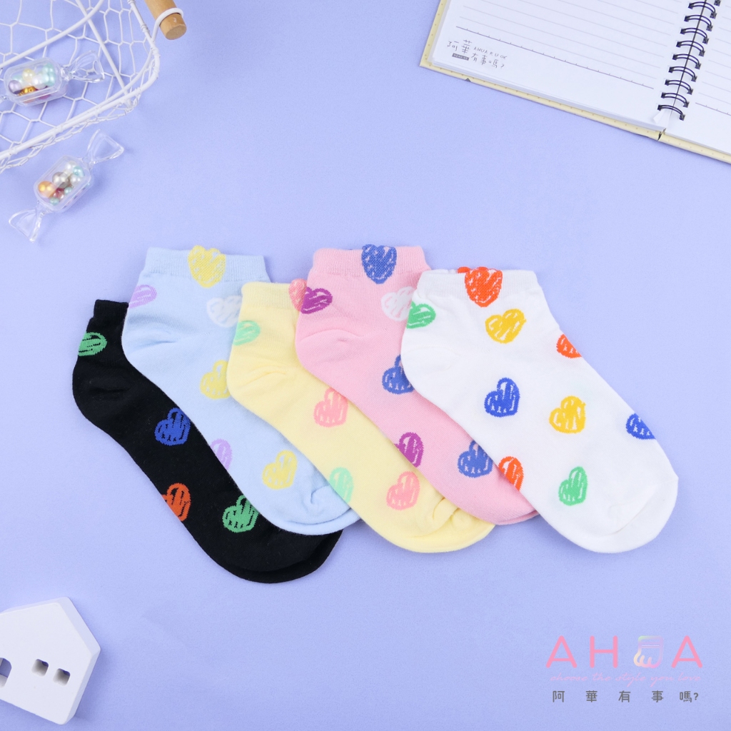 AHUA 阿華有事嗎 立體耳朵滿版愛心塗鴉短襪 K2340 正韓襪子 百搭純棉襪 韓系必備 少女襪粉底|黑底|黃底|藍底|白底SocksAHUA 韓國襪子品牌旗艦店