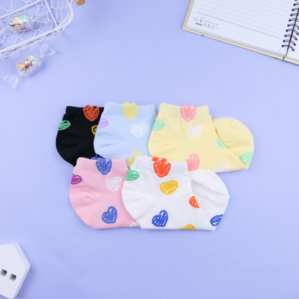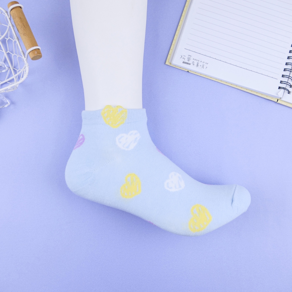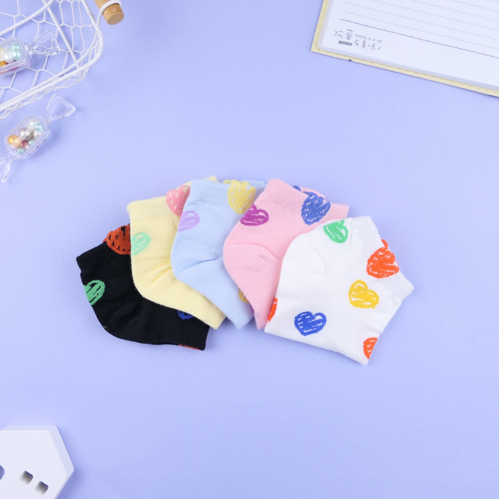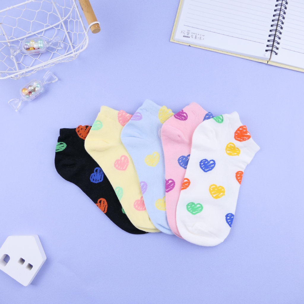 AHUA 阿華有事嗎 立體耳朵滿版愛心塗鴉短襪 K2340 正韓襪子 百搭純棉襪 韓系必備 少女襪粉底|黑底|黃底|藍底|白底SocksAHUA 韓國襪子品牌旗艦店