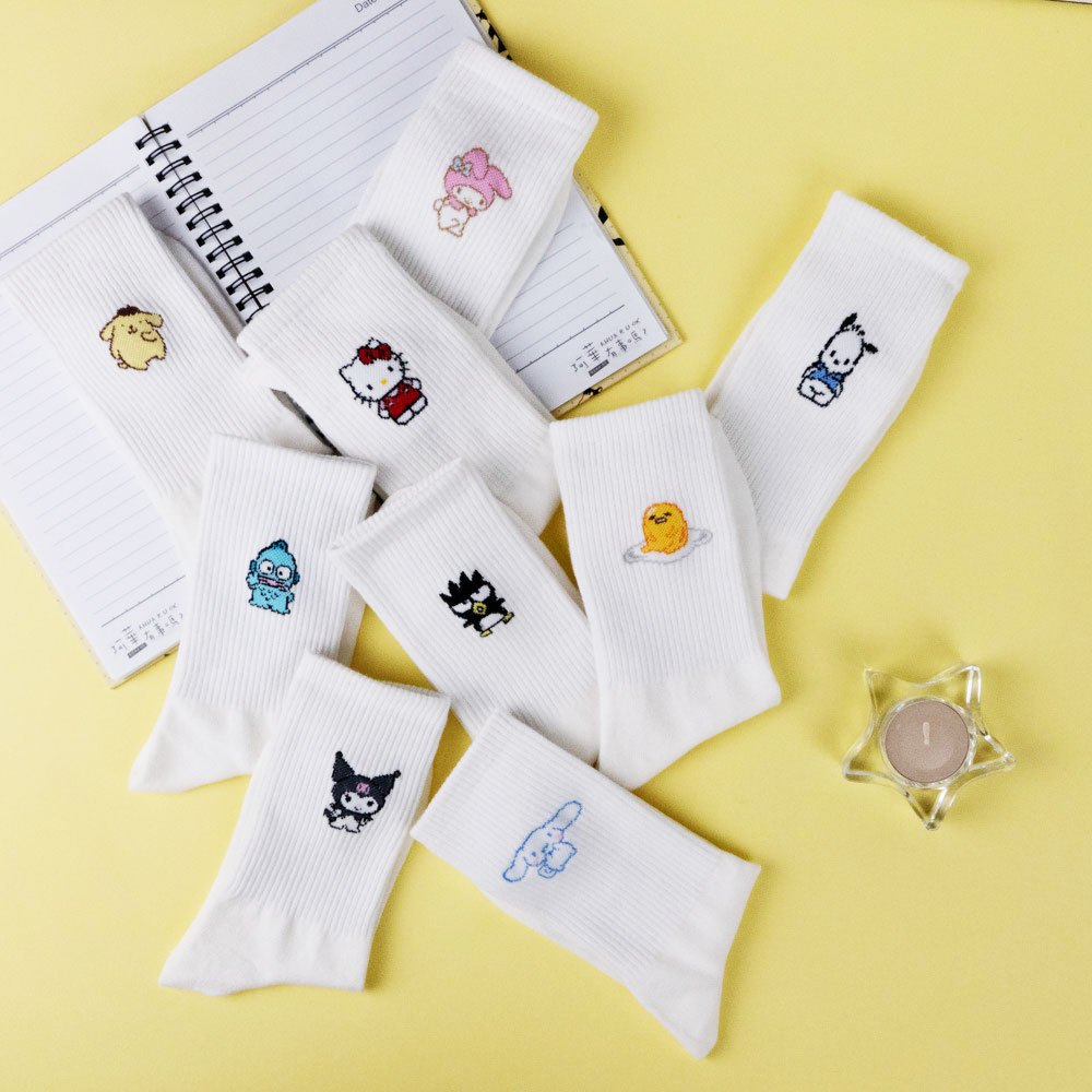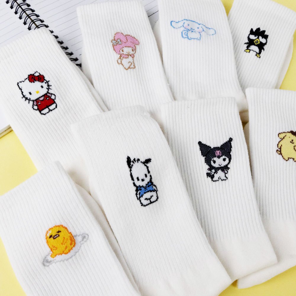 AHUA阿華有事嗎 三麗鷗迷你全身人物坑條襪口中筒襪 K2287 正韓襪子 百搭純棉襪 韓妞必備 少女襪Kitty|美樂蒂|蛋黃哥|大耳狗|帕恰狗|布丁狗|漢頓|酷洛米|酷企鵝SocksAHUA 韓國襪子品牌旗艦店