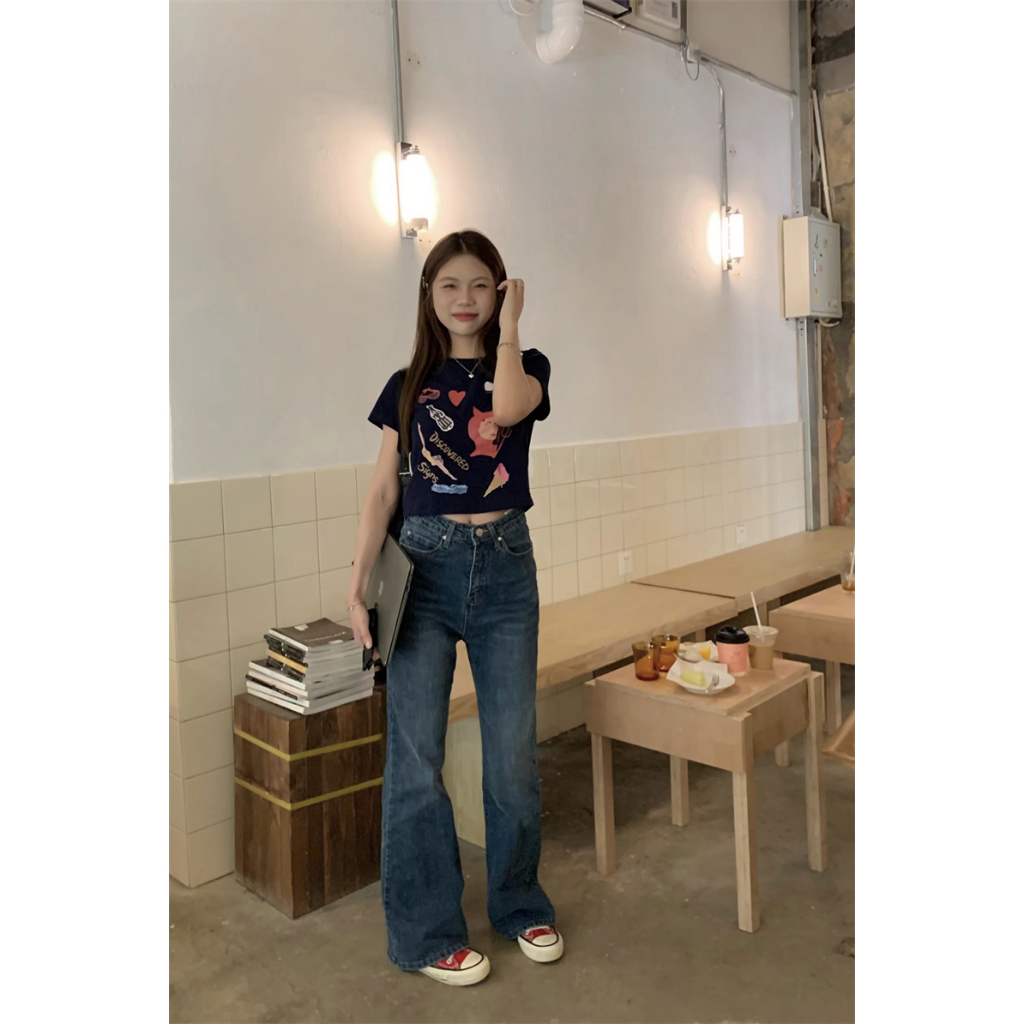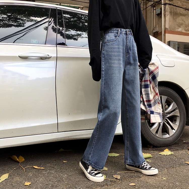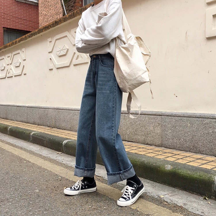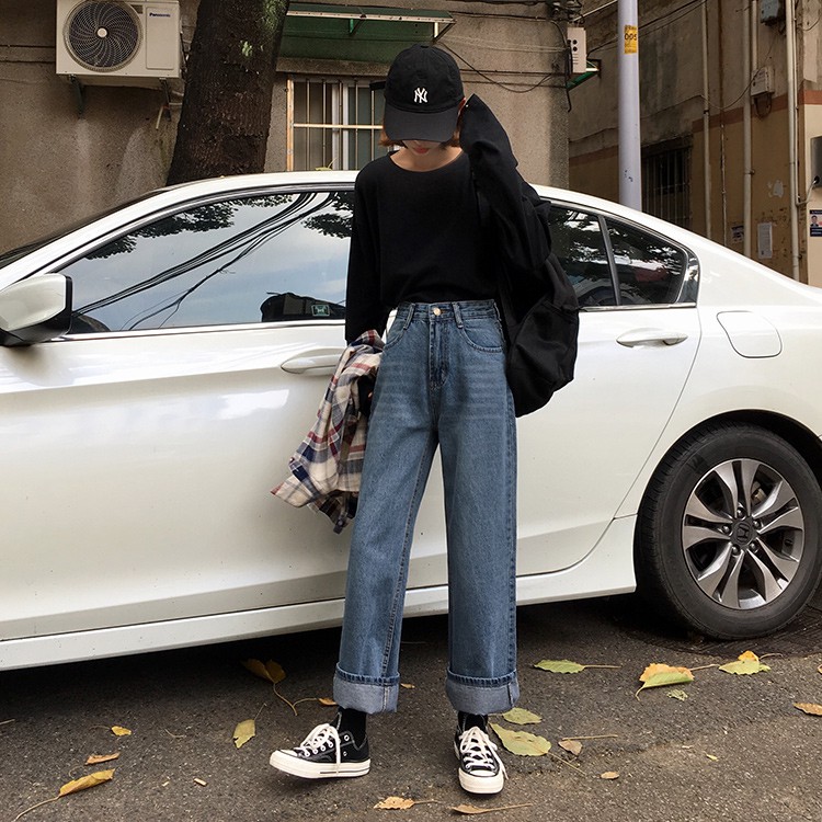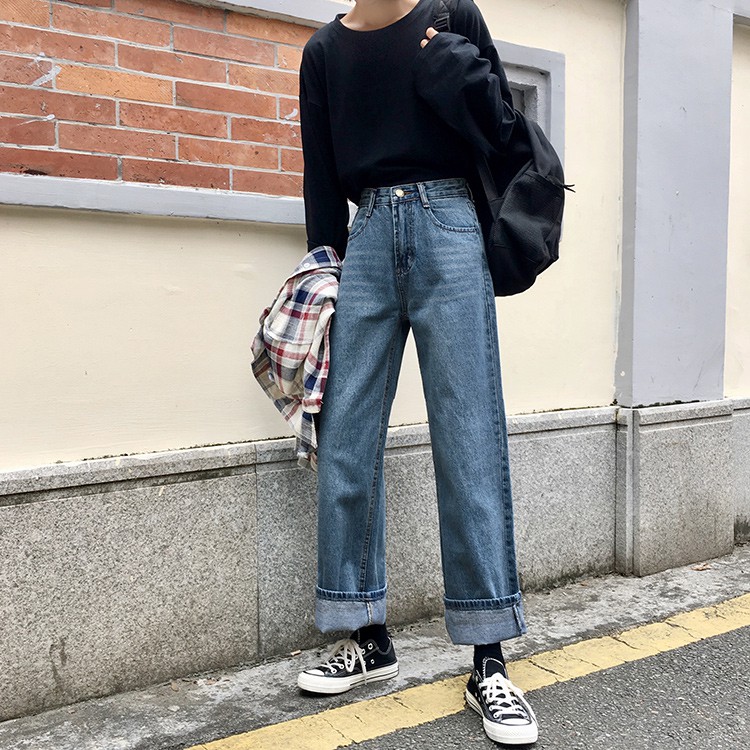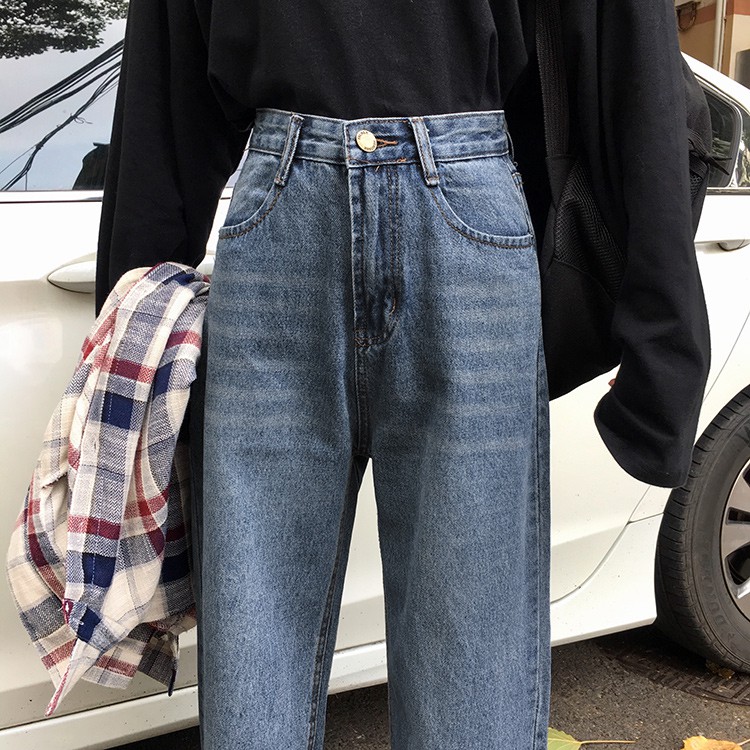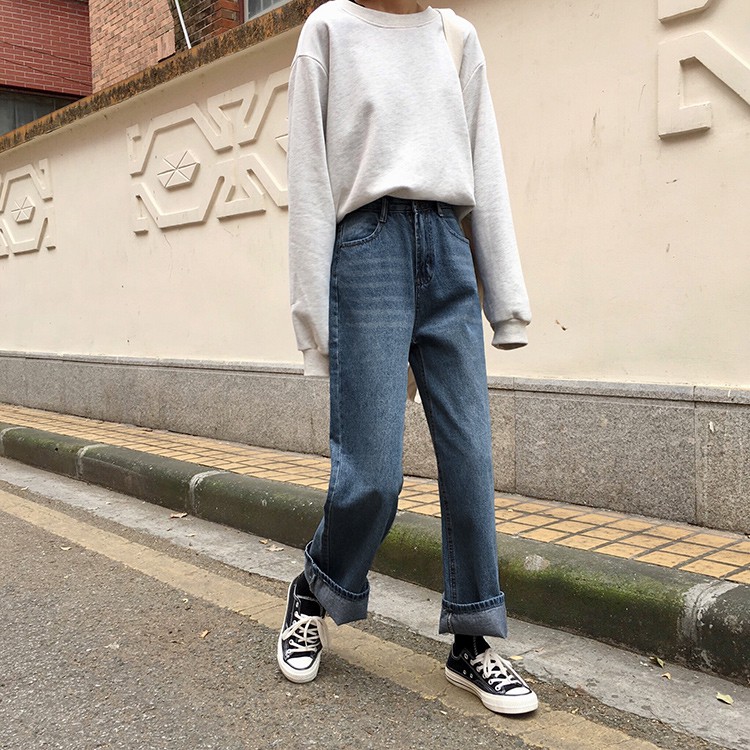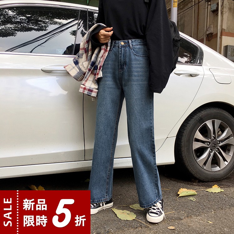 AHUA阿華有事嗎 韓系刷白高腰直筒牛仔長褲 C0645 四季百搭女裝 韓妞必備下著 簡約牛仔褲S號|M號|L號AHUA 韓國襪子品牌旗艦店