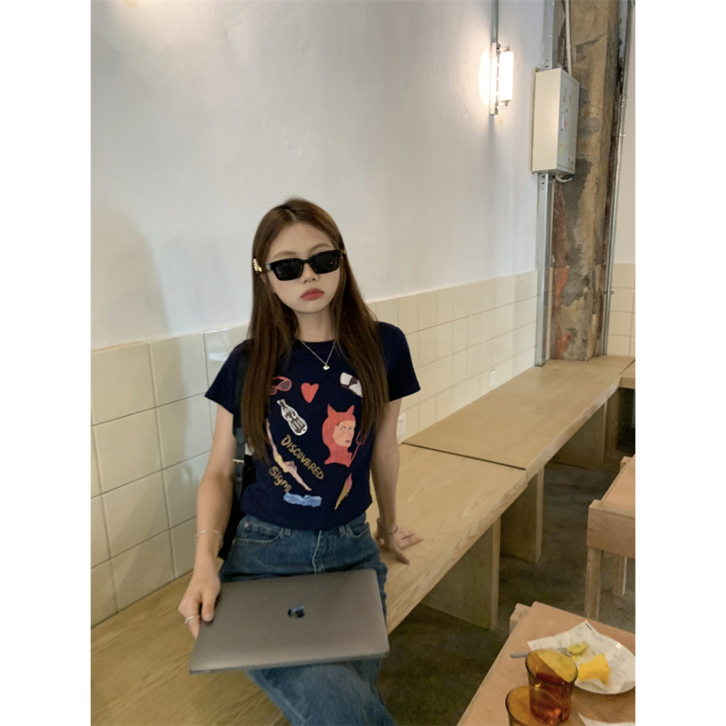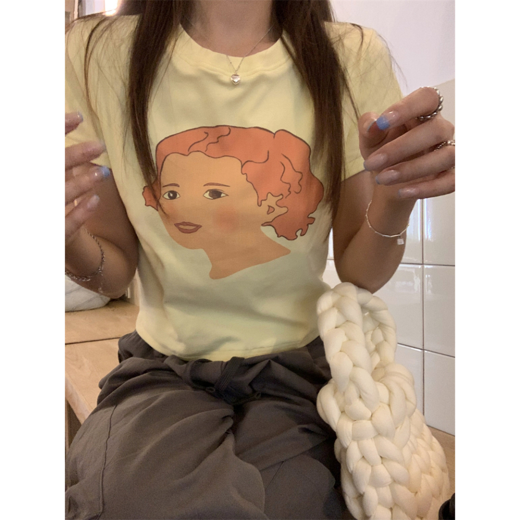 ANNE|出清中|113降75|趣味人像短袖t恤【AT21116】春夏 人像圖案 圓領 短版 短t 女裝 短袖上衣