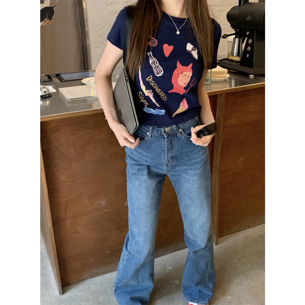 ANNE|出清中|113降75|趣味人像短袖t恤【AT21116】春夏 人像圖案 圓領 短版 短t 女裝 短袖上衣黑|深藍|黃T-shirtsANNE 孕婦裝 孕婦內衣褲 專櫃平替