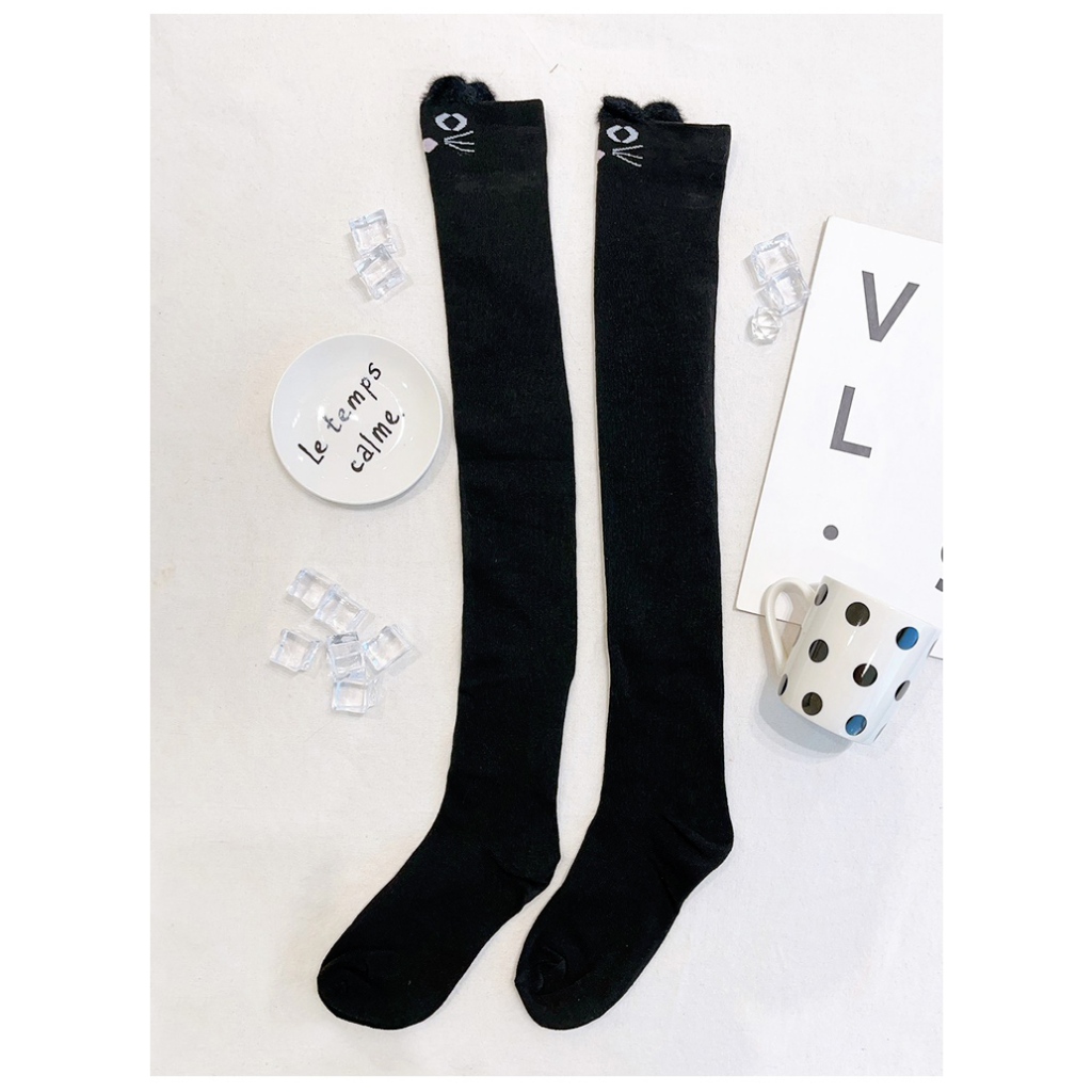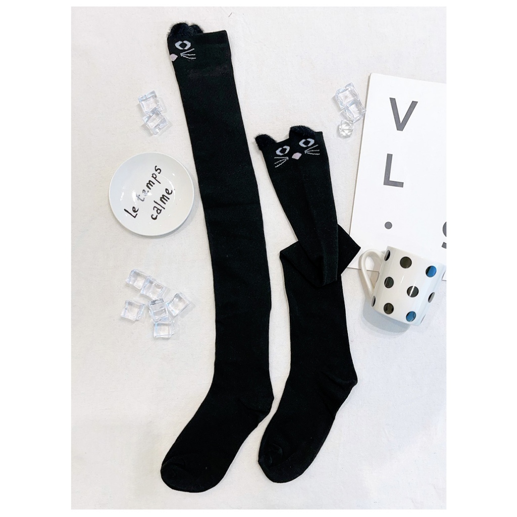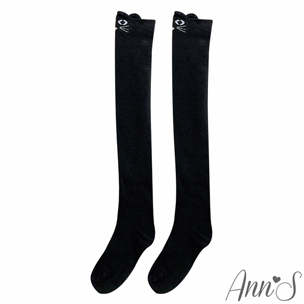 Ann’S 可愛貓咪系女孩黑色過膝長襪 -1色黑SocksAnn’S 女鞋官方旗艦店