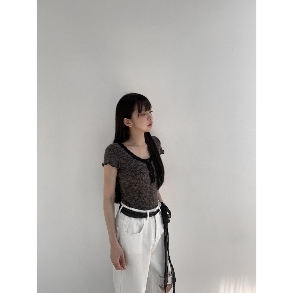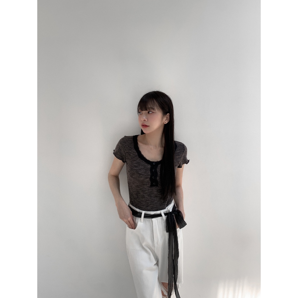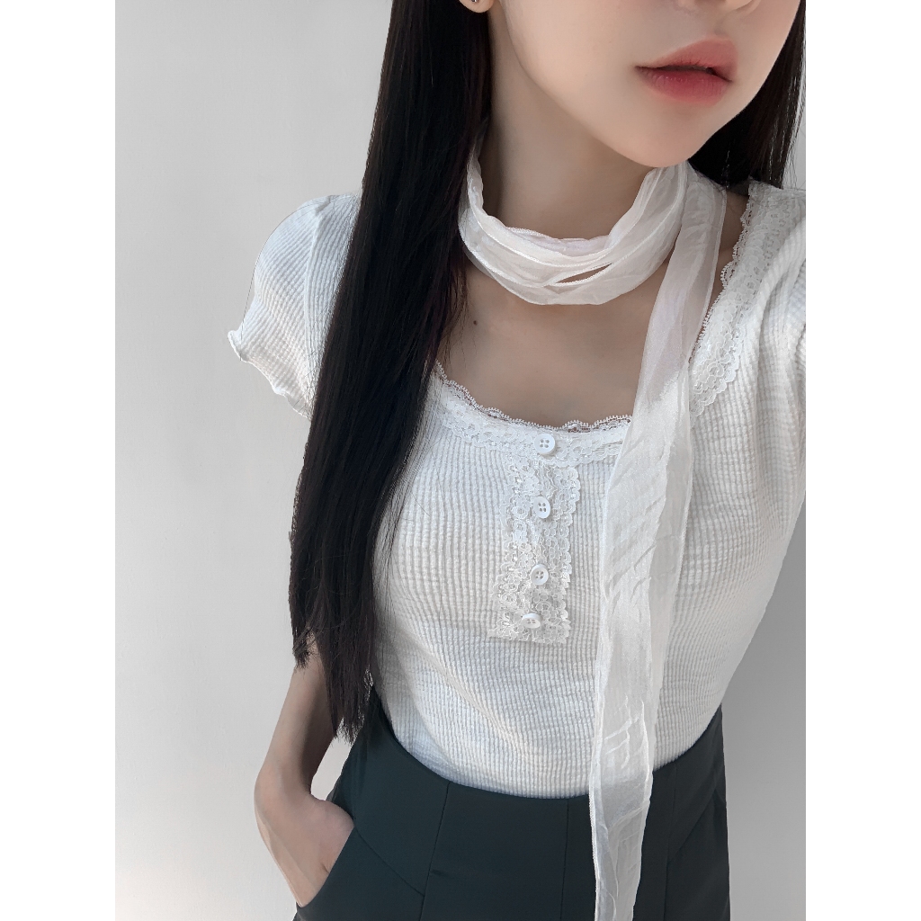 【Aa.chic】復古花邊鈕釦圓領上衣(三色).女裝/圓領/花邊/短袖/復古/春裝/日常【C502838】白(現貨)|深灰(現貨)|綠(現貨)OthersAa Chic
