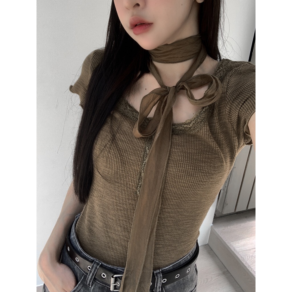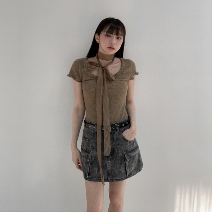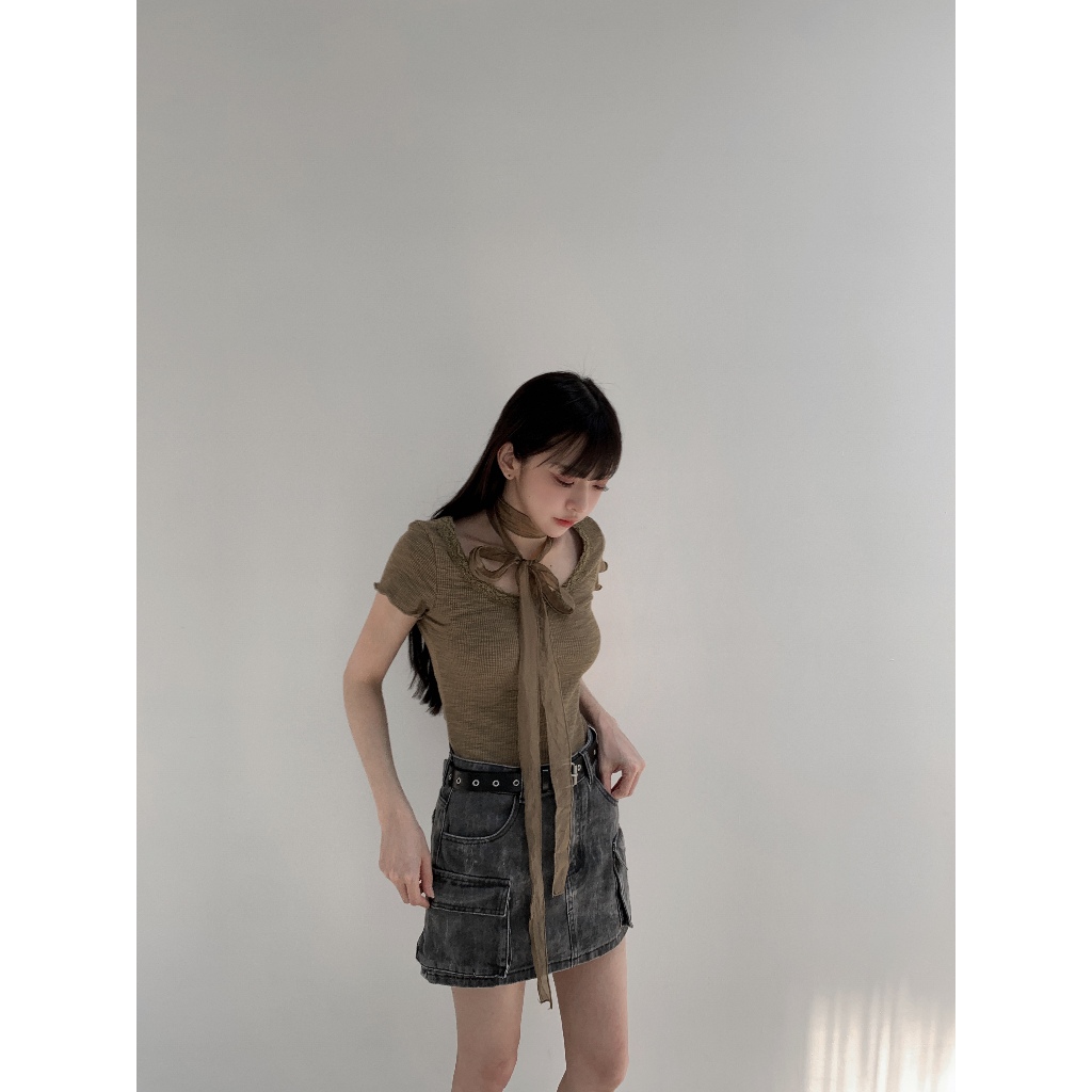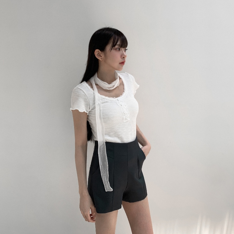 【Aa.chic】復古花邊鈕釦圓領上衣(三色).女裝/圓領/花邊/短袖/復古/春裝/日常【C502838】白(現貨)|深灰(現貨)|綠(現貨)OthersAa Chic
