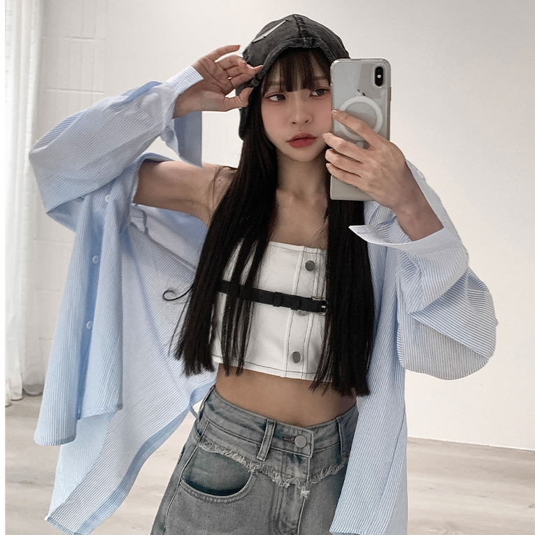 【Aa.chic熱賣商品】直條紋後開衩襯衫(單一色).女裝/直條紋/清新/襯衫/後開衩/搭/春夏/日常【C258195】單一色(現貨)Shirts & BlousesAa Chic