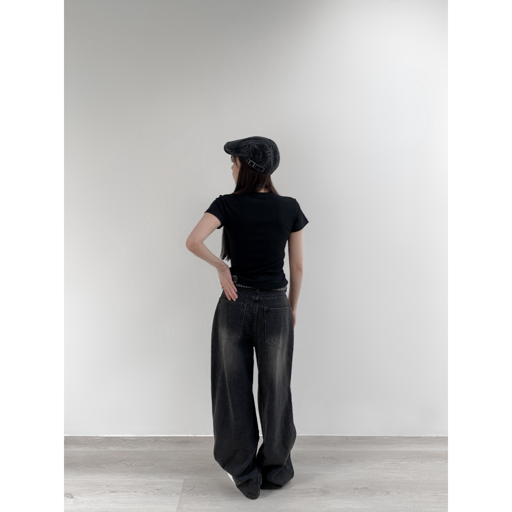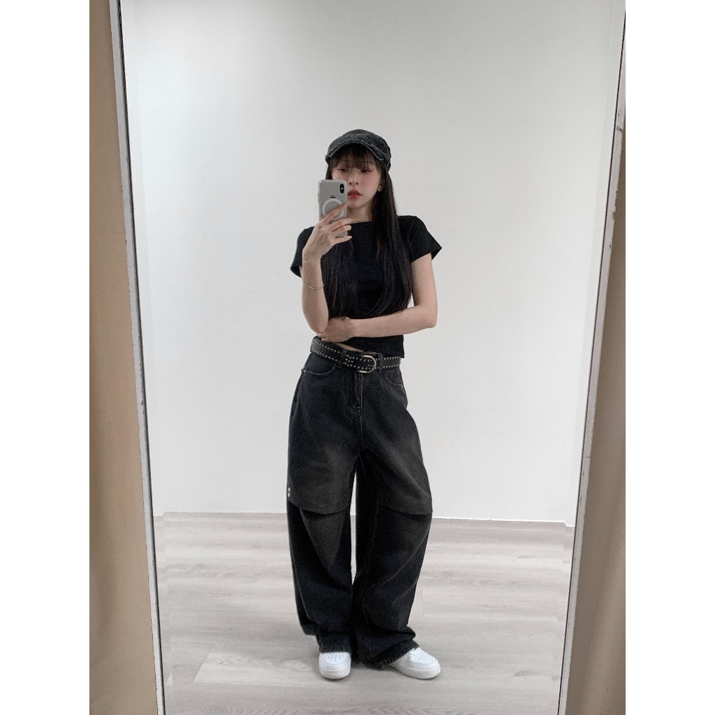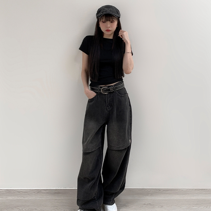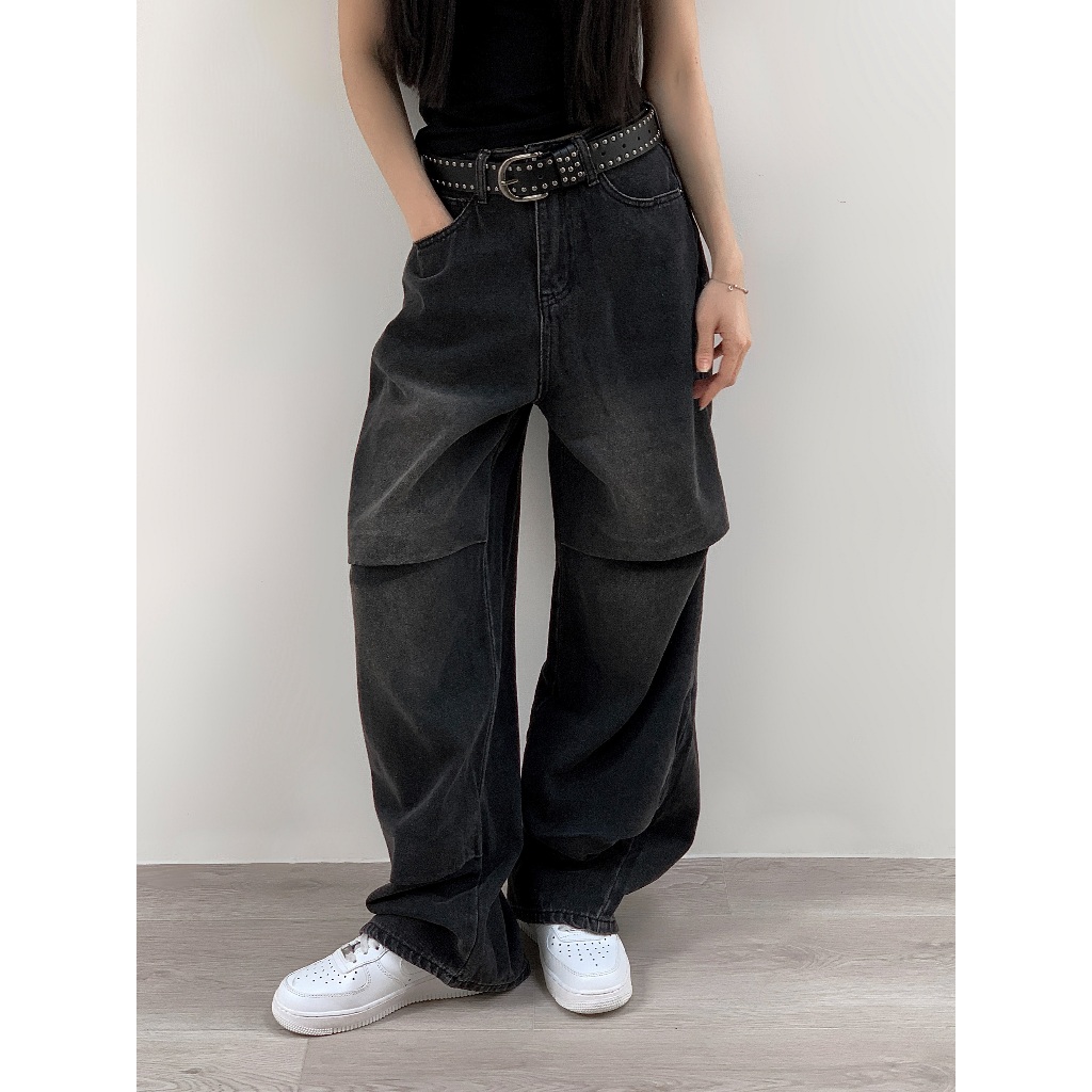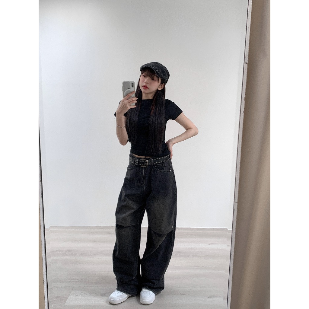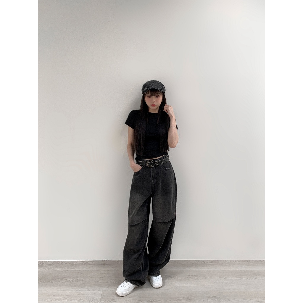 【Aa.chic】率性水洗牛仔錐形寬褲(單一色).女裝/牛仔/黑灰色/寬鬆/錐形/水洗/顯瘦【C910613】單一色(現貨),S|單一色(現貨),M|單一色(現貨),LAa Chic