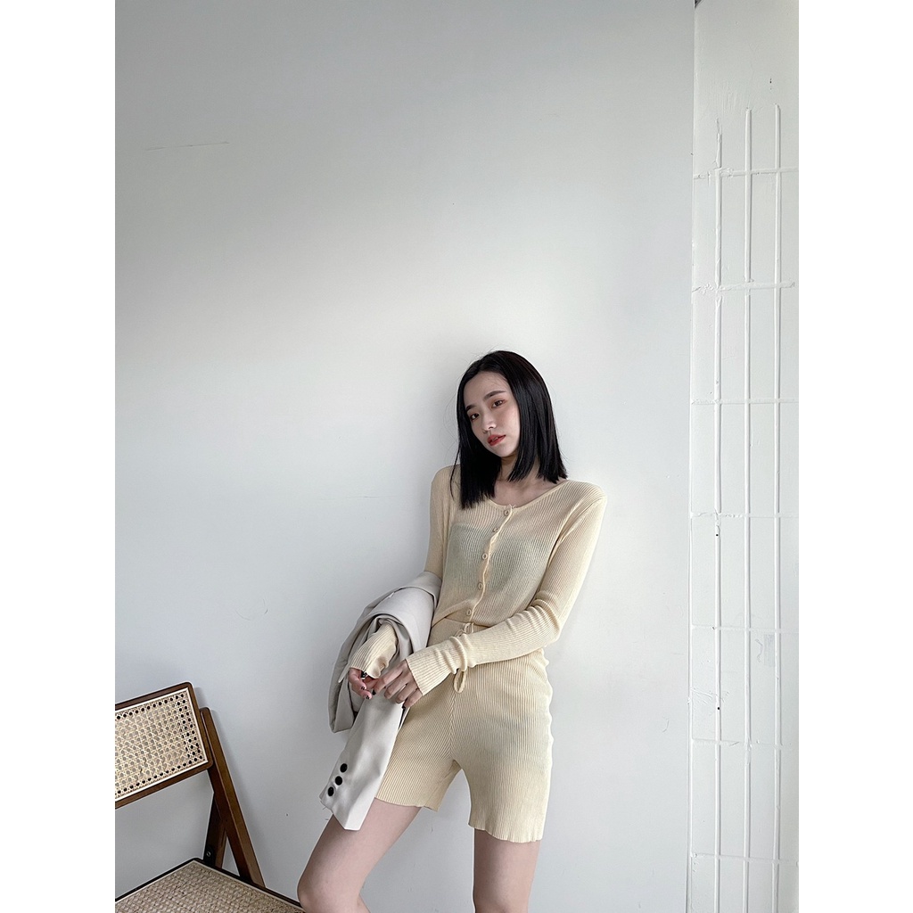 【Aa.chic出清5折起】薄料針織五分褲套裝(兩色).女裝/針織/五分褲/套裝/休閒【C31913】黑(現貨)|黃(現貨)Individual SetsAa Chic