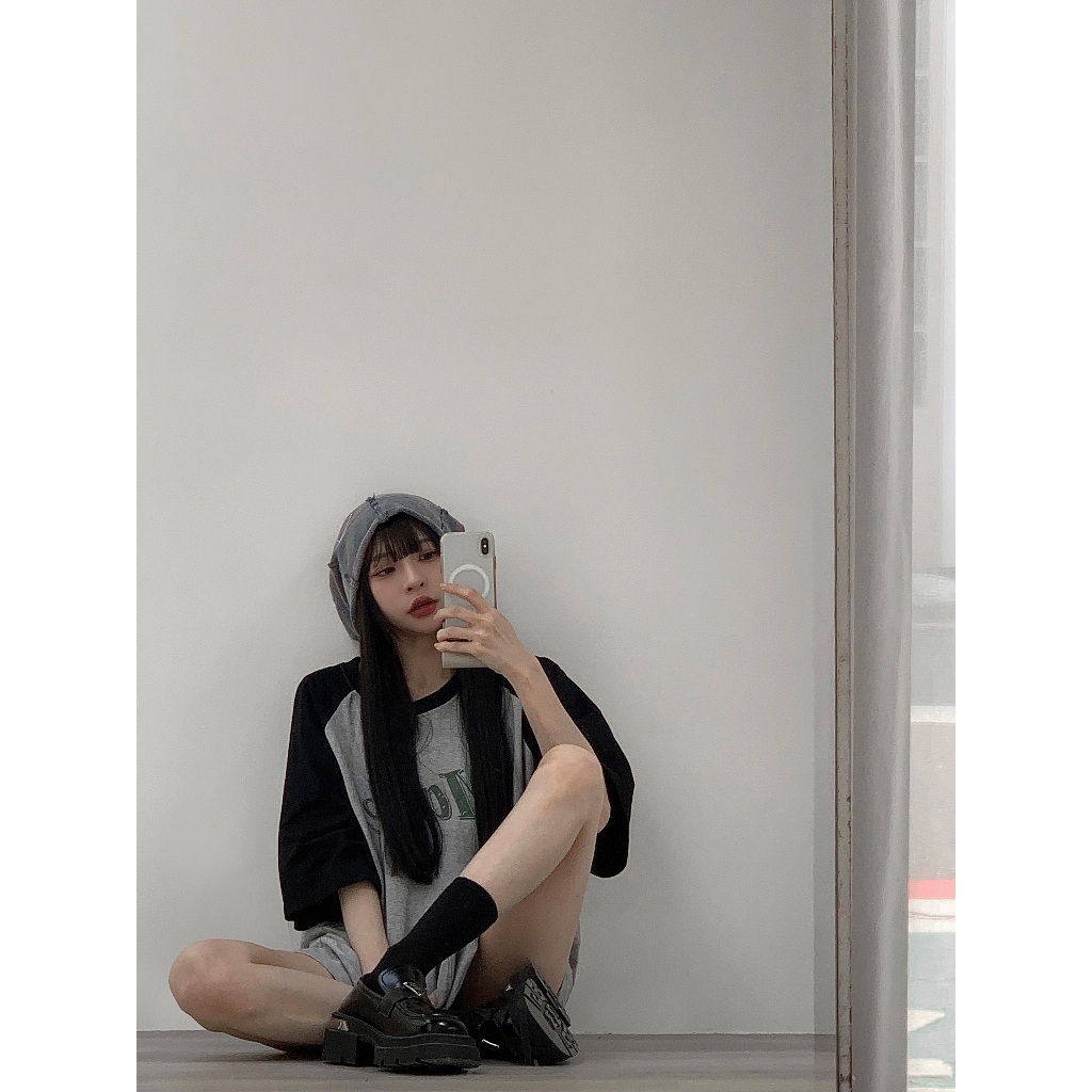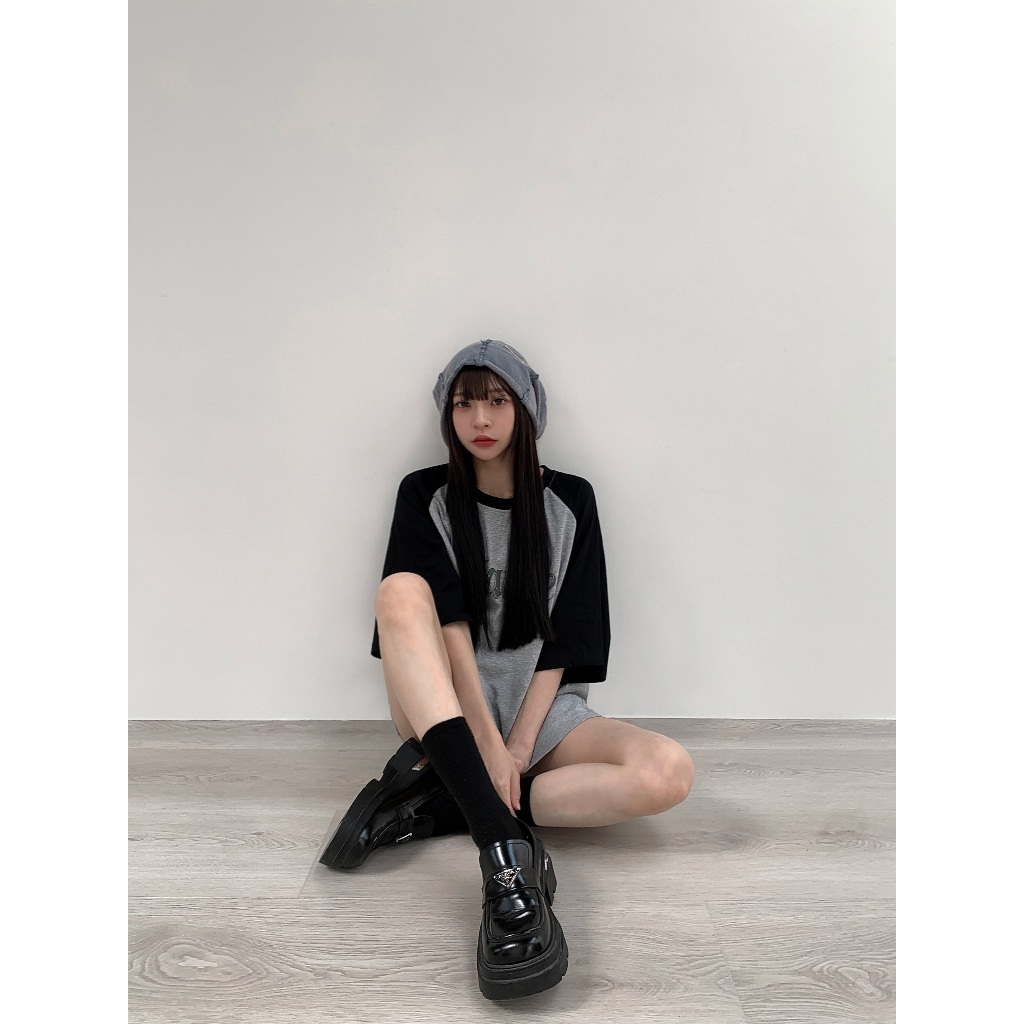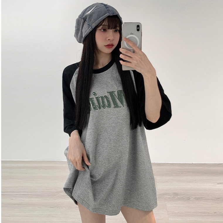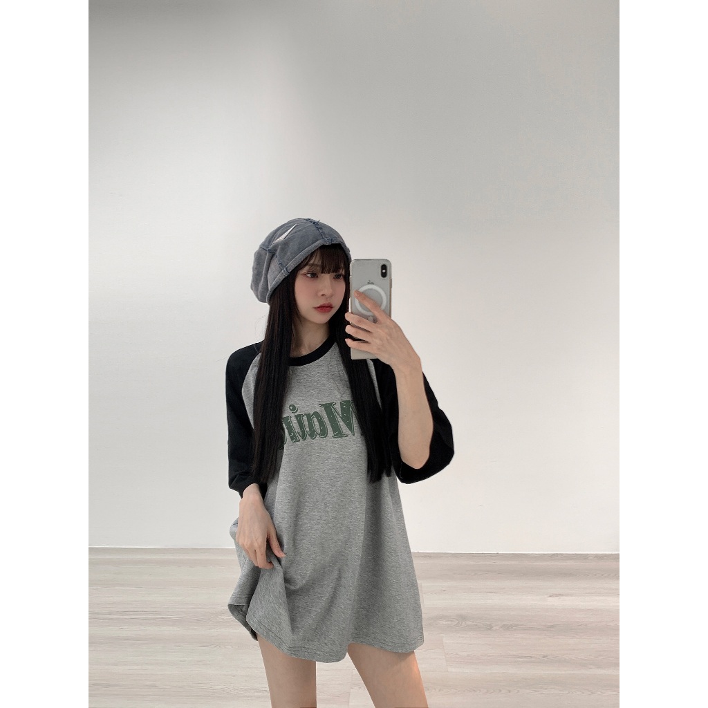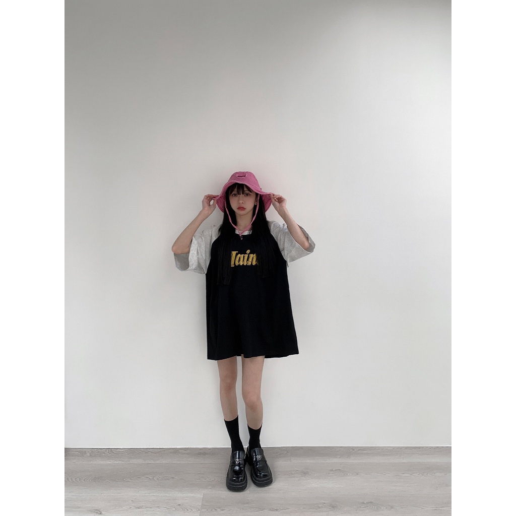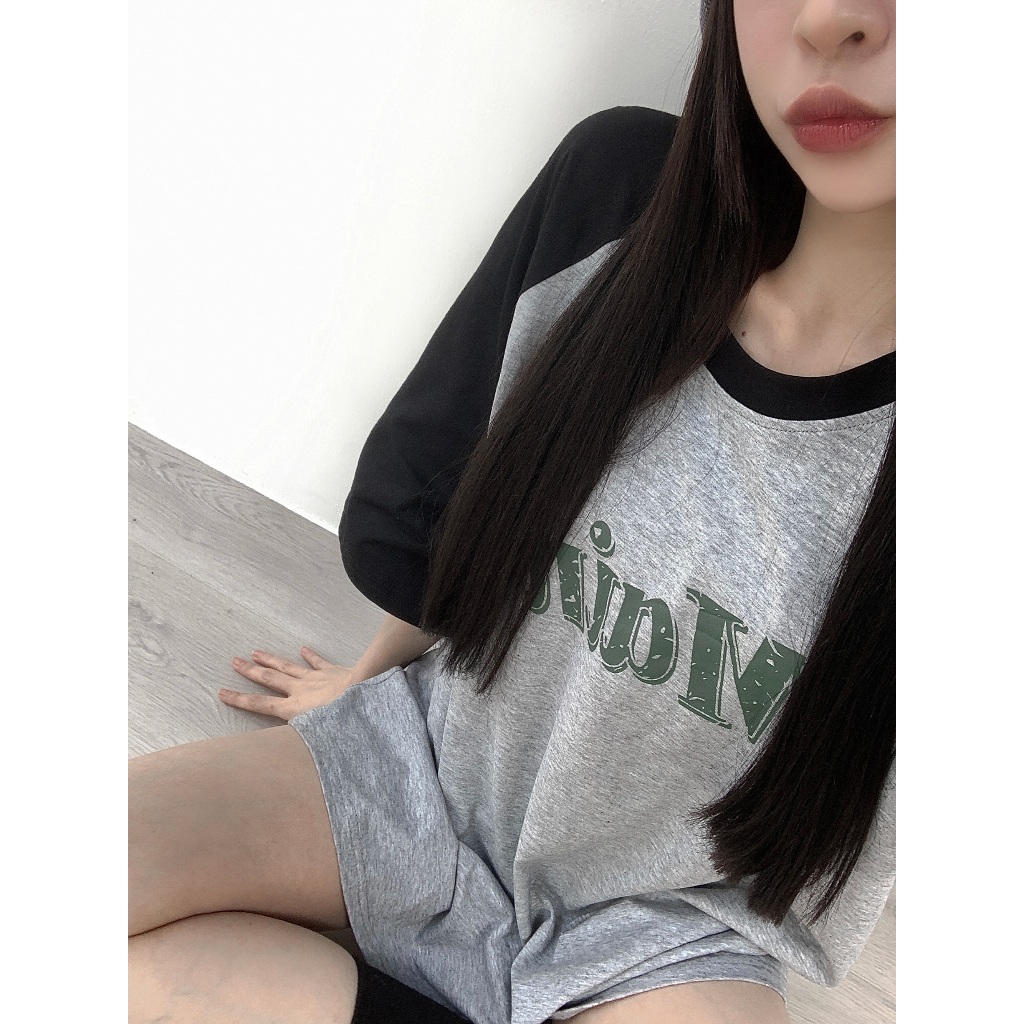 【Aa.chic熱賣商品】休閒滾邊字母寬鬆上衣(兩色).女裝/圓領/字母/寬鬆/滾邊/休閒/日常【C022310】黑(現貨)|灰(現貨)T-shirtsAa Chic