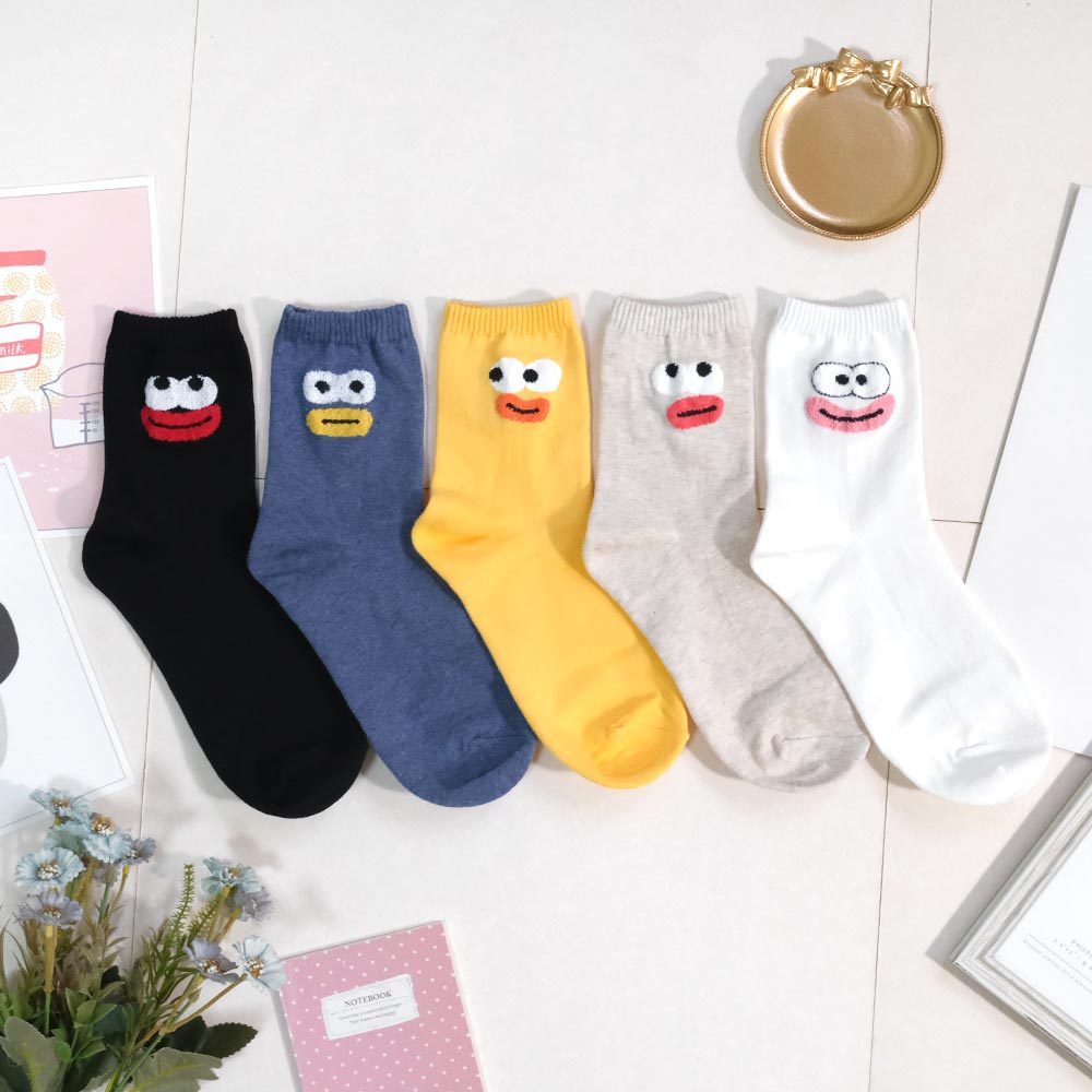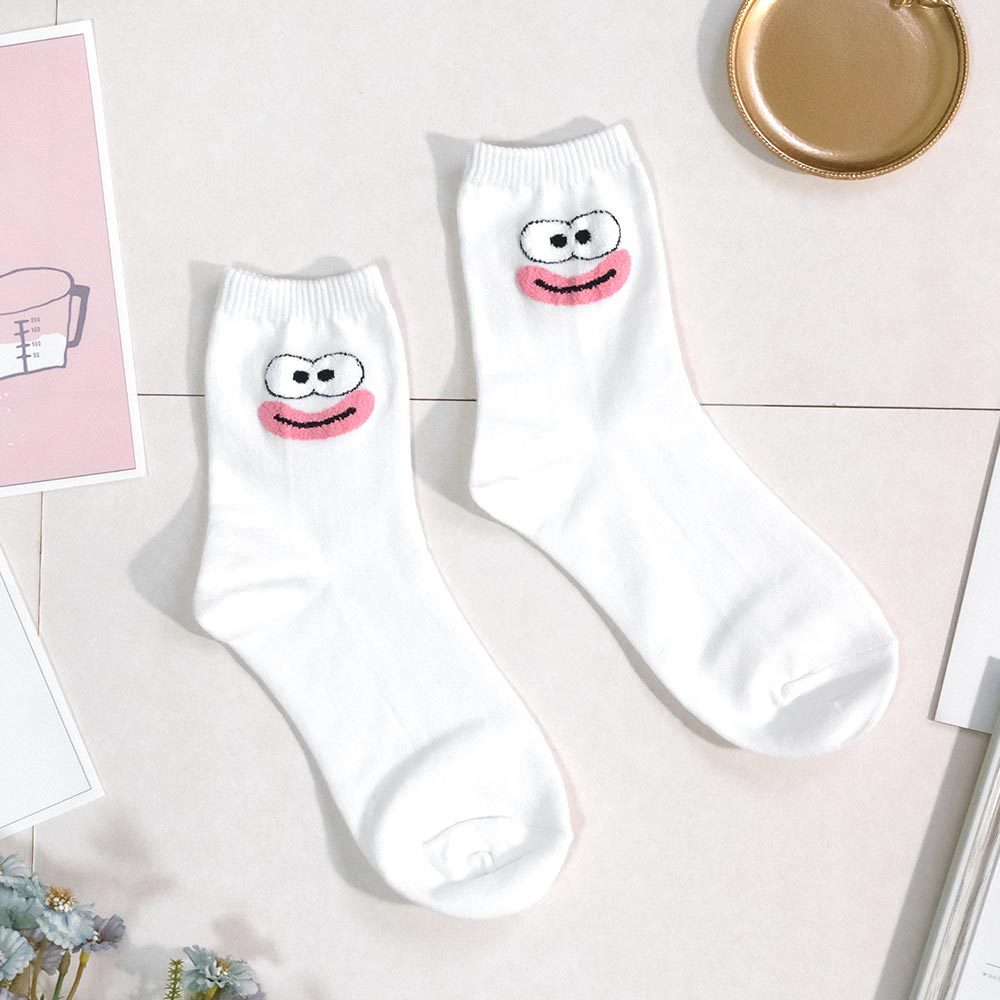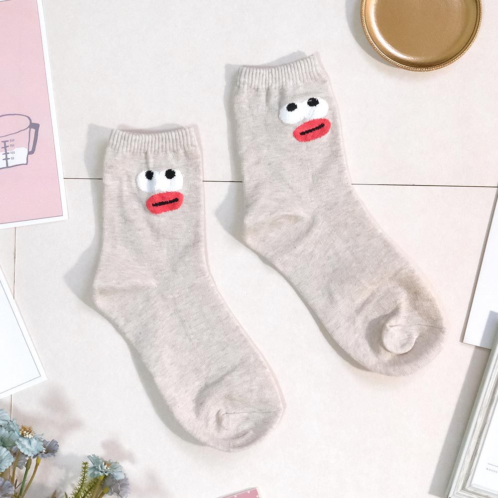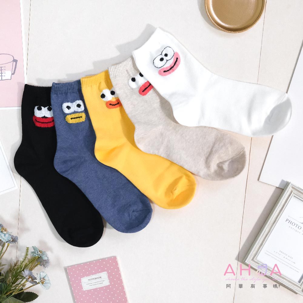 AHUA阿華有事嗎 襪口立體毛毛香腸嘴表情中筒襪 K2162 正韓襪子 百搭純棉襪 韓妞必備 少女襪白底|米底|黃底|藍底|黑底SocksAHUA 韓國襪子品牌旗艦店