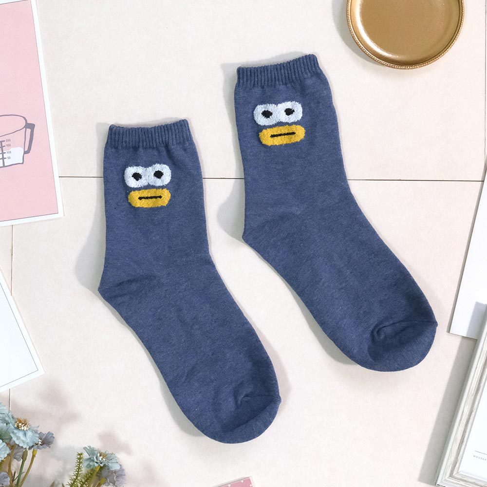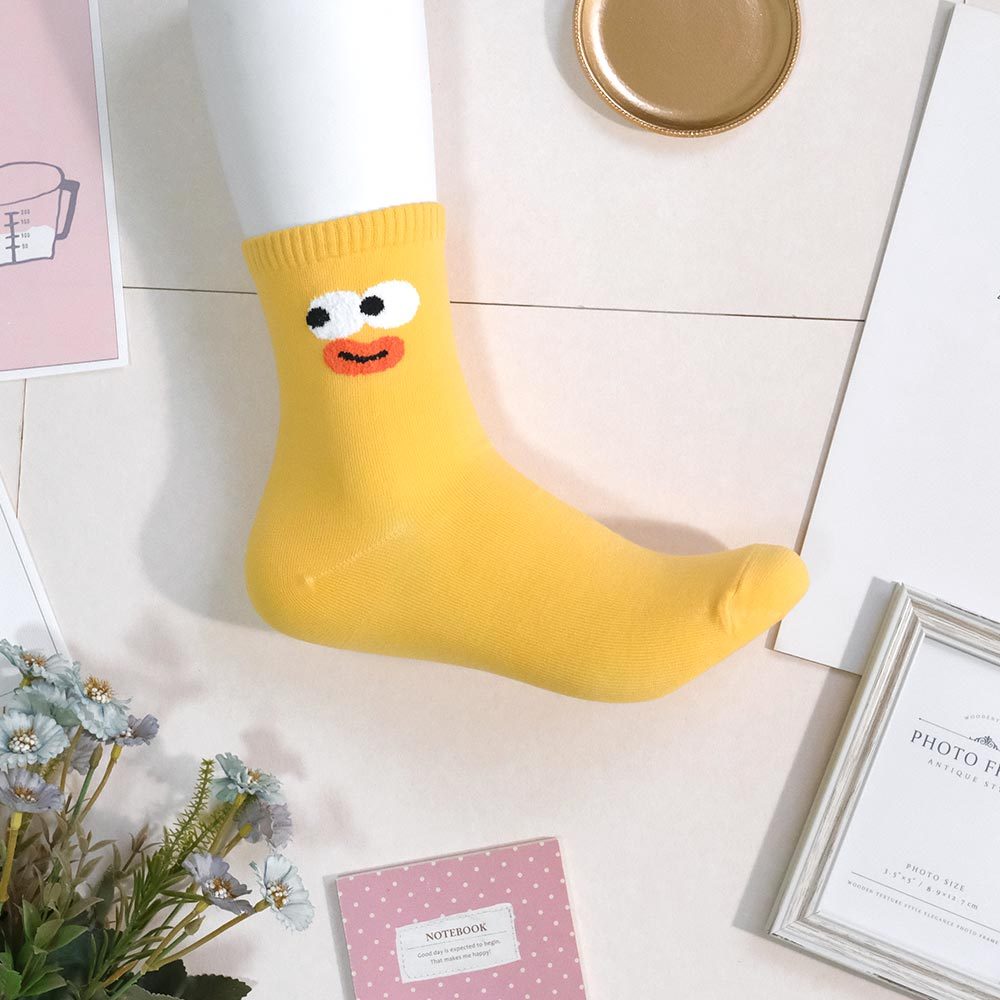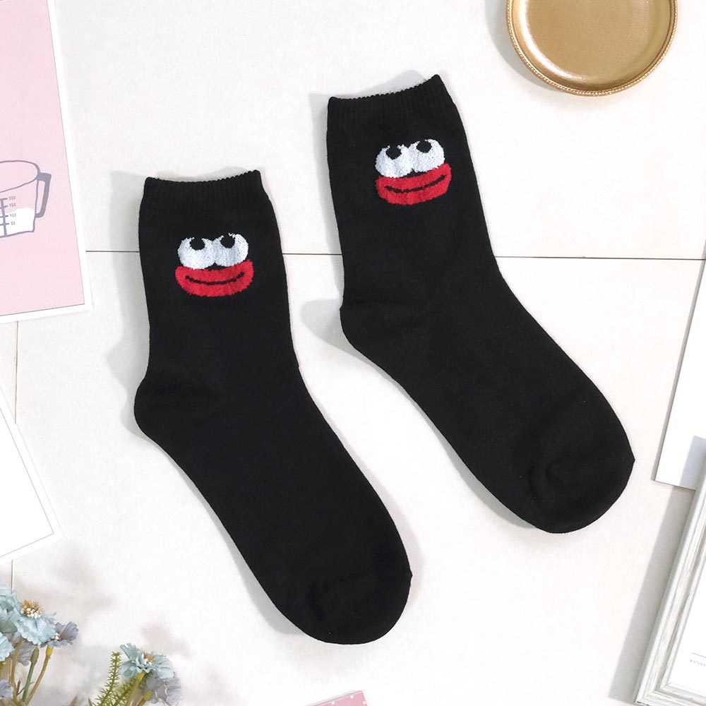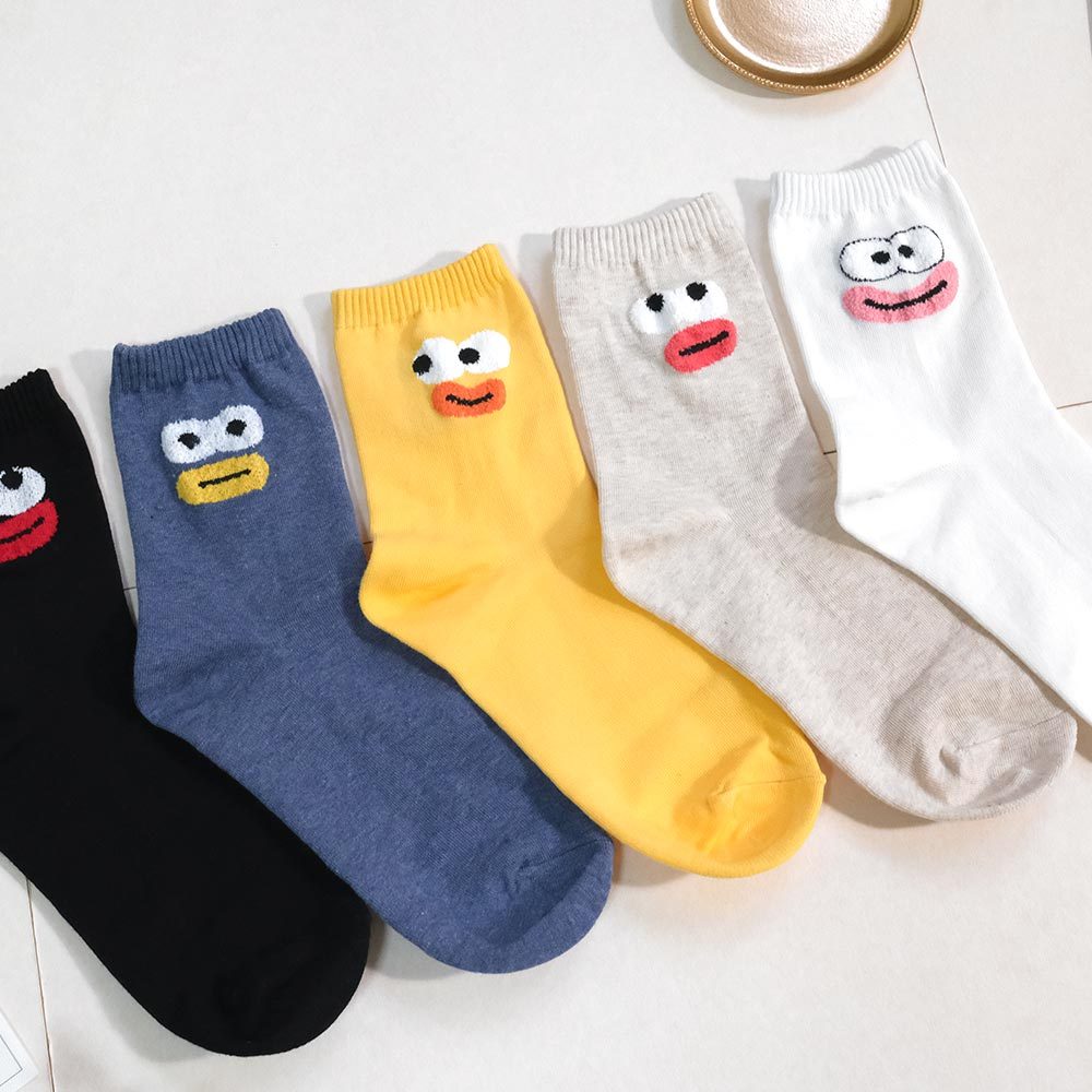 AHUA阿華有事嗎 襪口立體毛毛香腸嘴表情中筒襪 K2162 正韓襪子 百搭純棉襪 韓妞必備 少女襪白底|米底|黃底|藍底|黑底SocksAHUA 韓國襪子品牌旗艦店