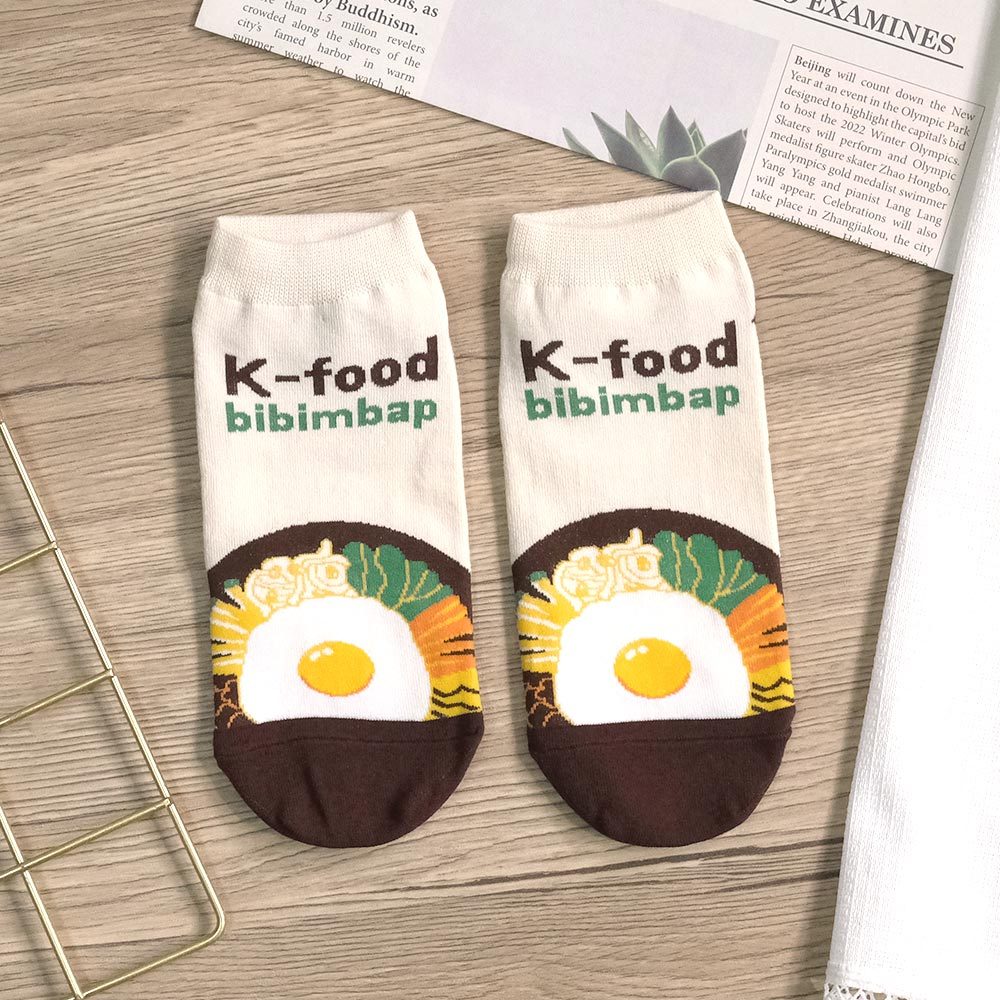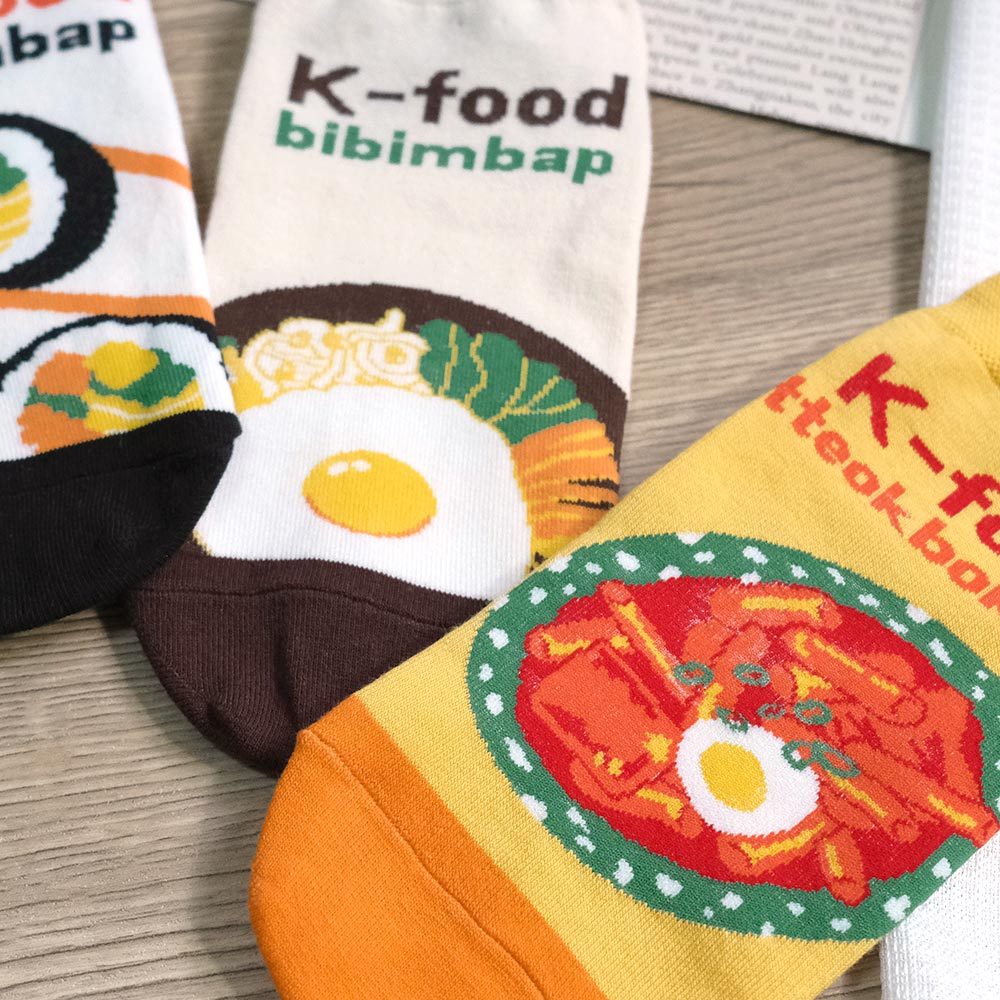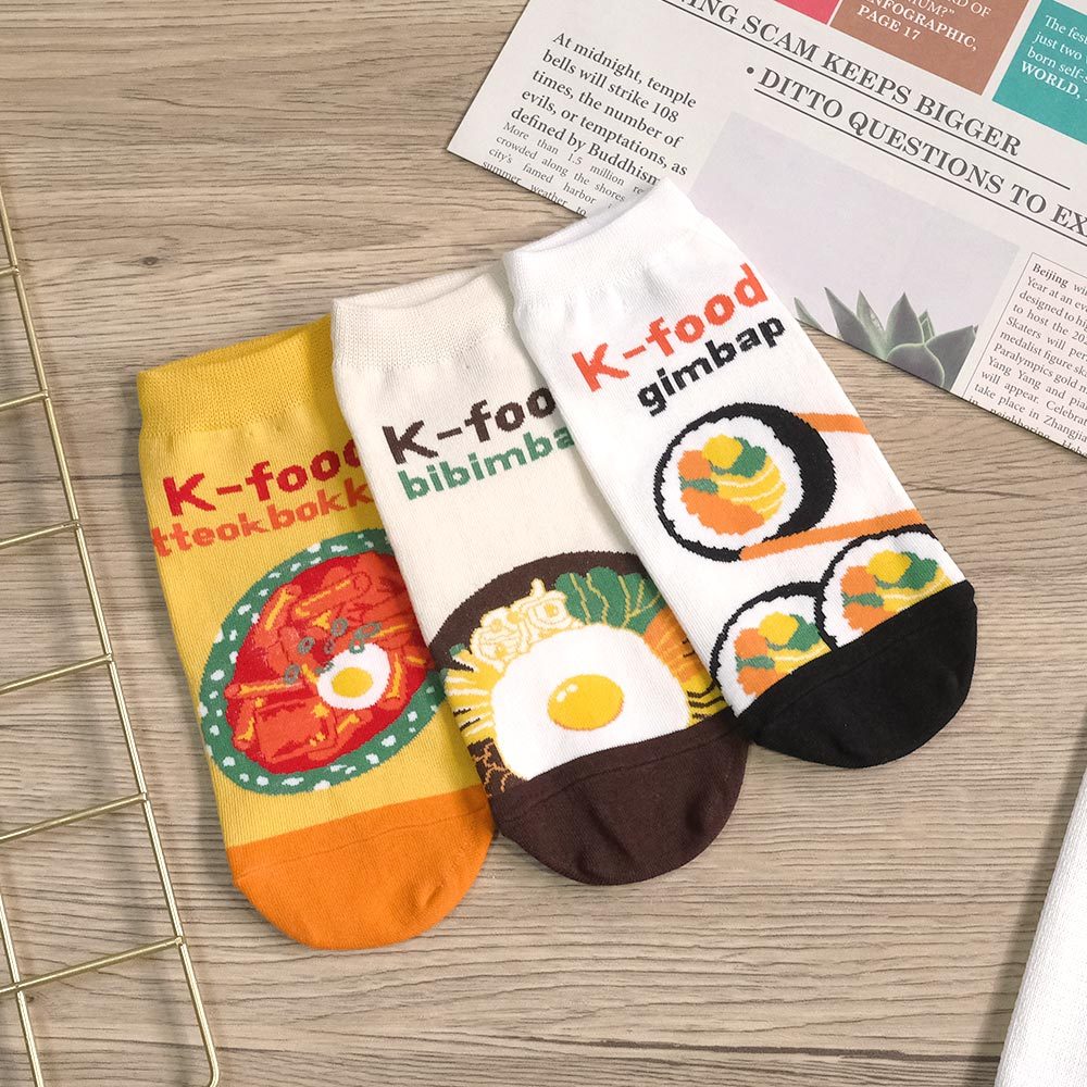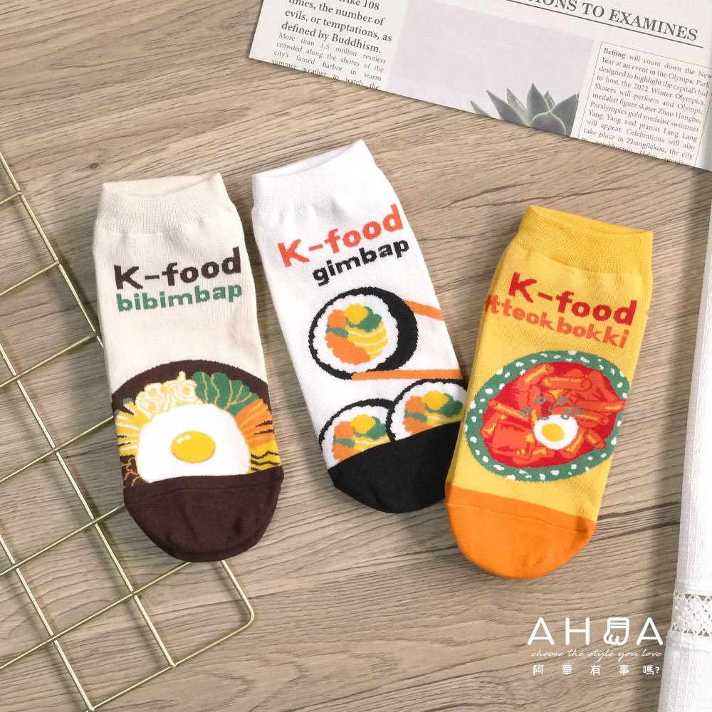 AHUA阿華有事嗎 Q版韓國美食拼色短襪 K2280 正韓襪子 百搭純棉襪 韓妞必備 少女襪白底黑前跟飯捲|米黃底咖前跟石鍋拌飯|黃底橘前跟辣炒年糕SocksAHUA 韓國襪子品牌旗艦店
