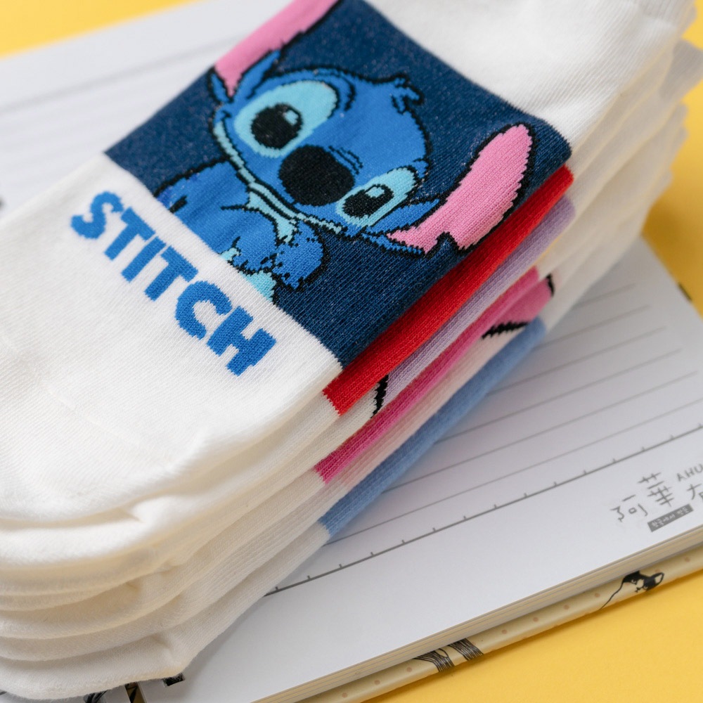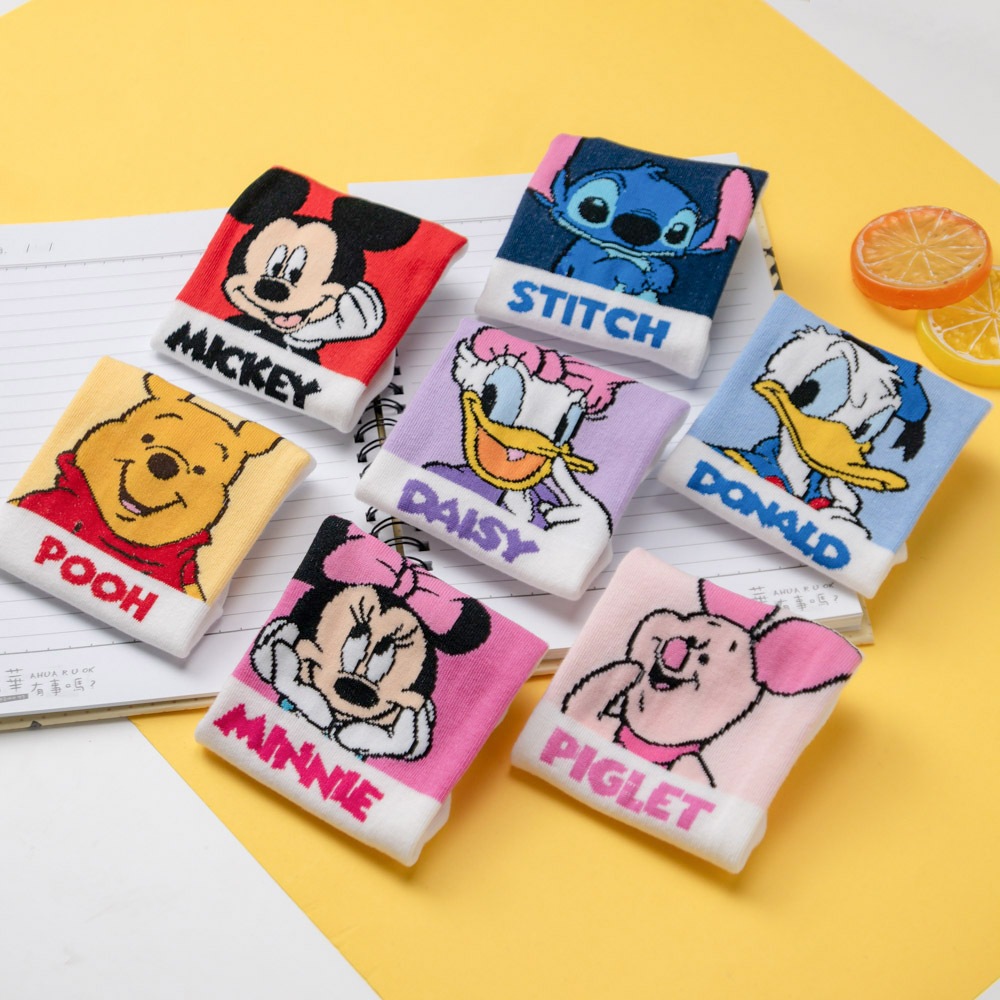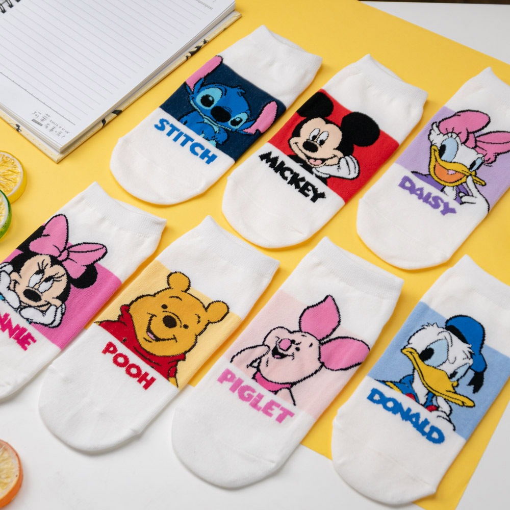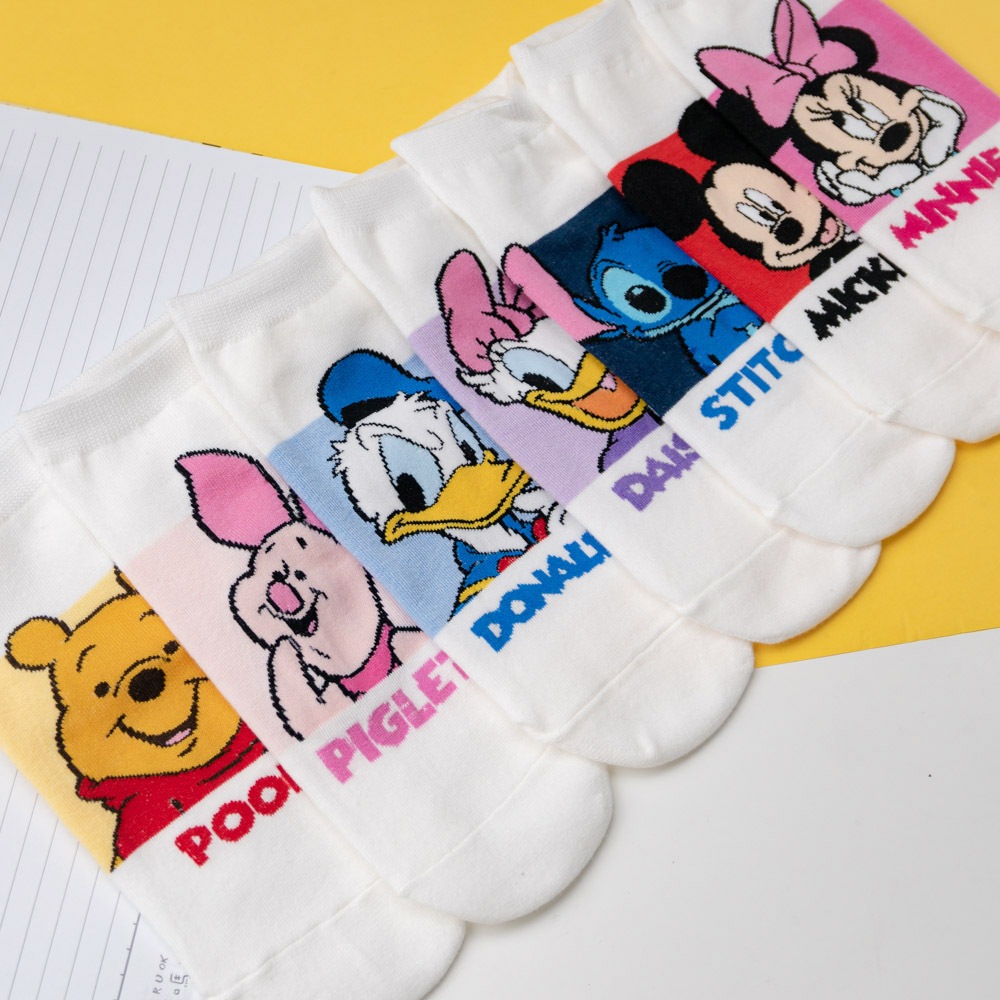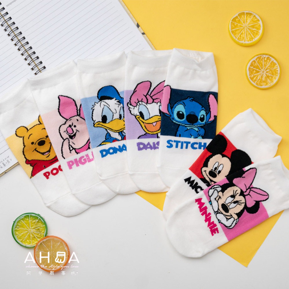 AHUA阿華有事嗎 韓國襪子 迪士尼白底拼色經典人物短襪 K1881 韓妞必備 百搭純棉襪 卡通人物 日系 可愛白底紅米奇|白底粉米妮|白底藍唐老鴨|白底紫黛西|白底黃維尼|白底粉小豬|白底深藍史迪奇SocksAHUA 韓國襪子品牌旗艦店