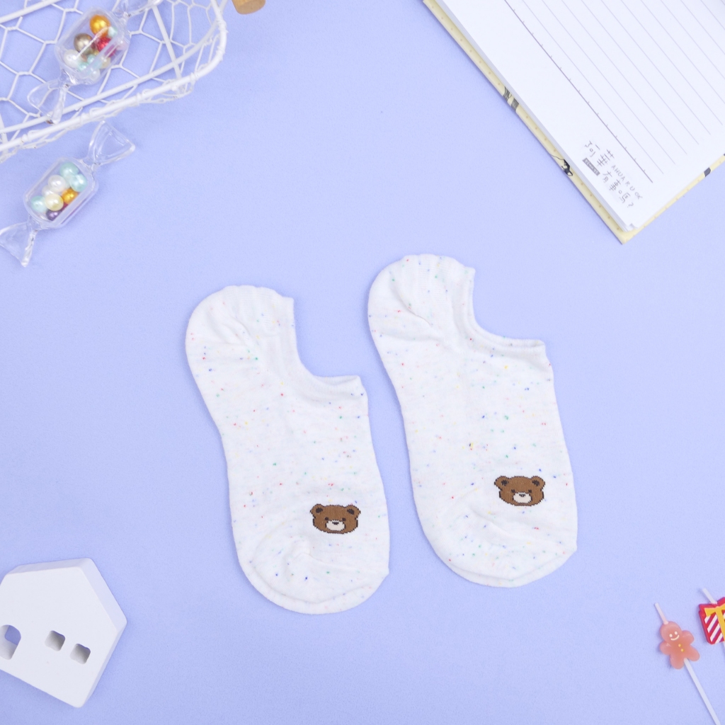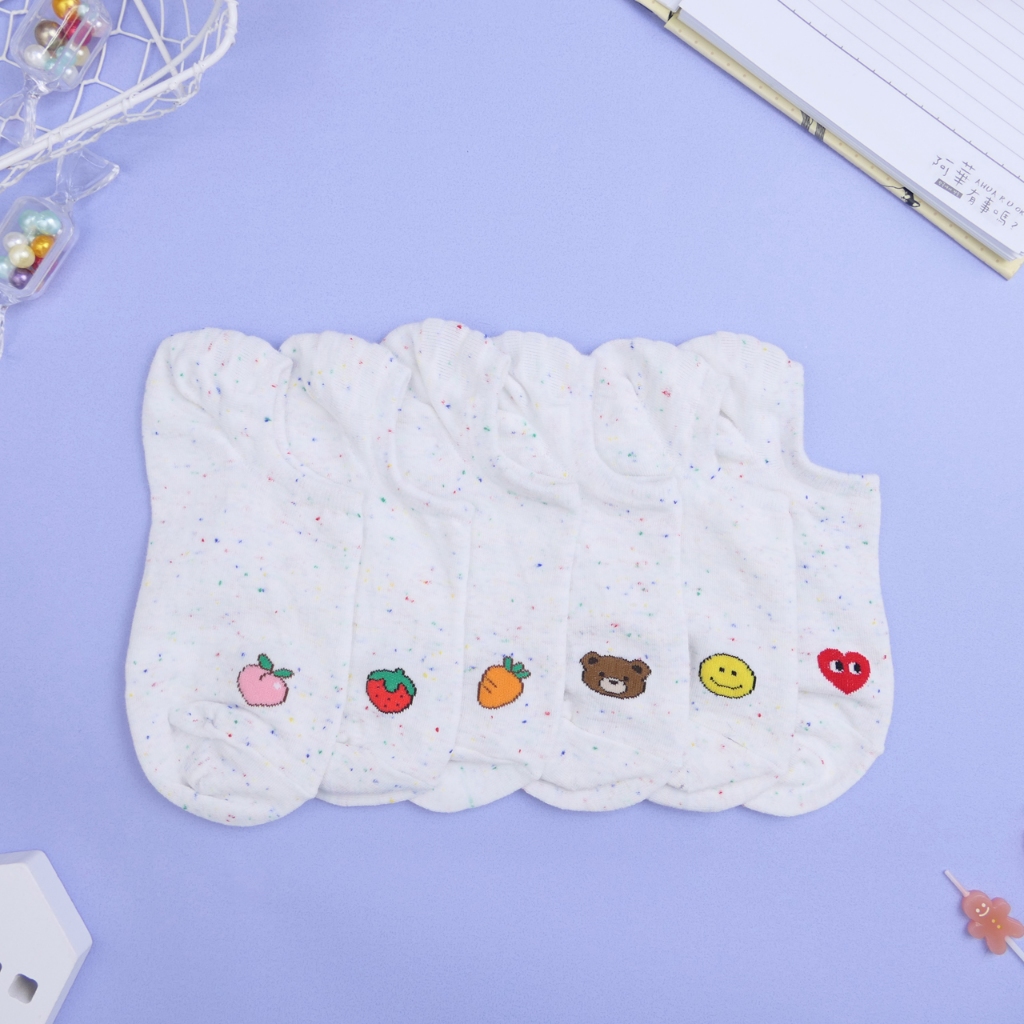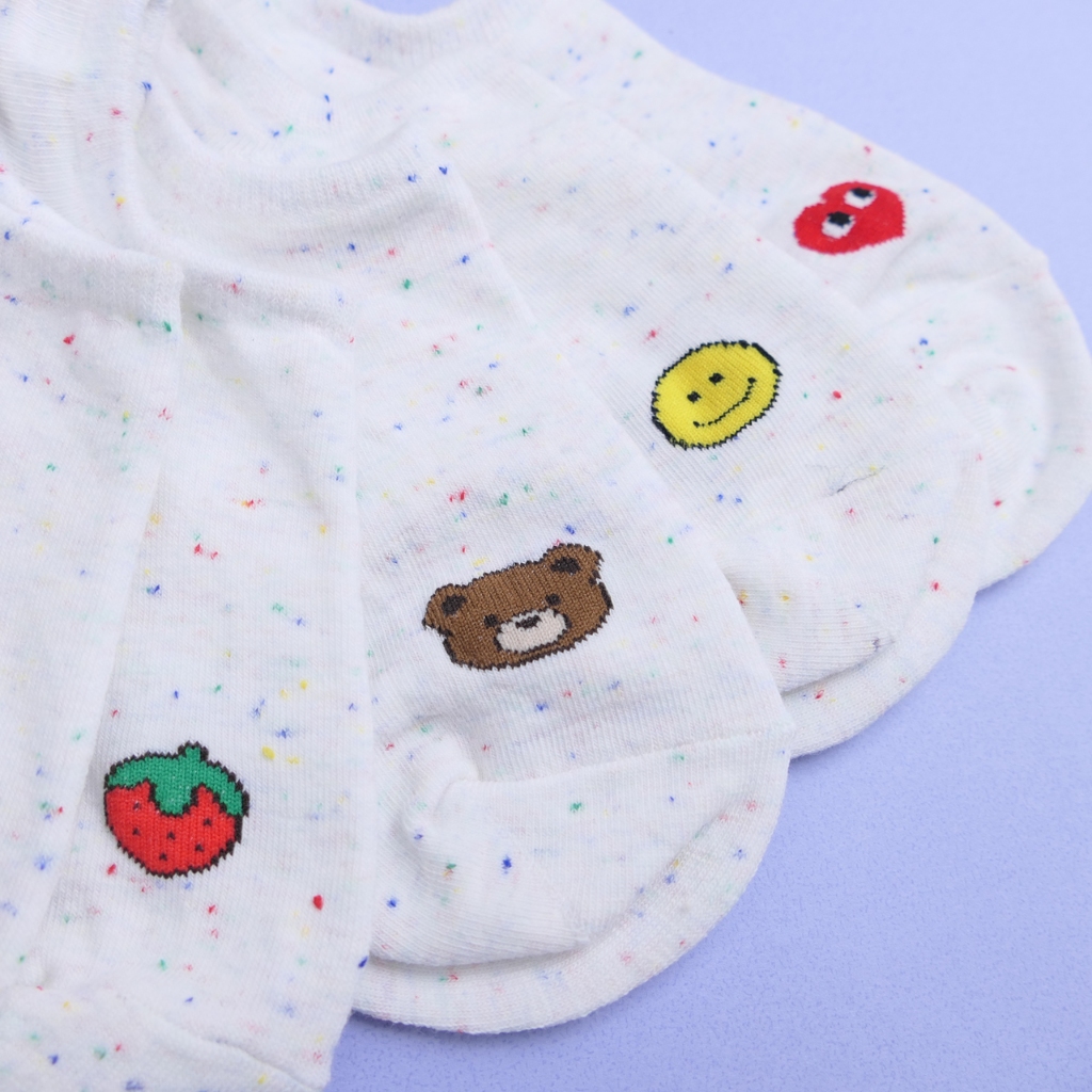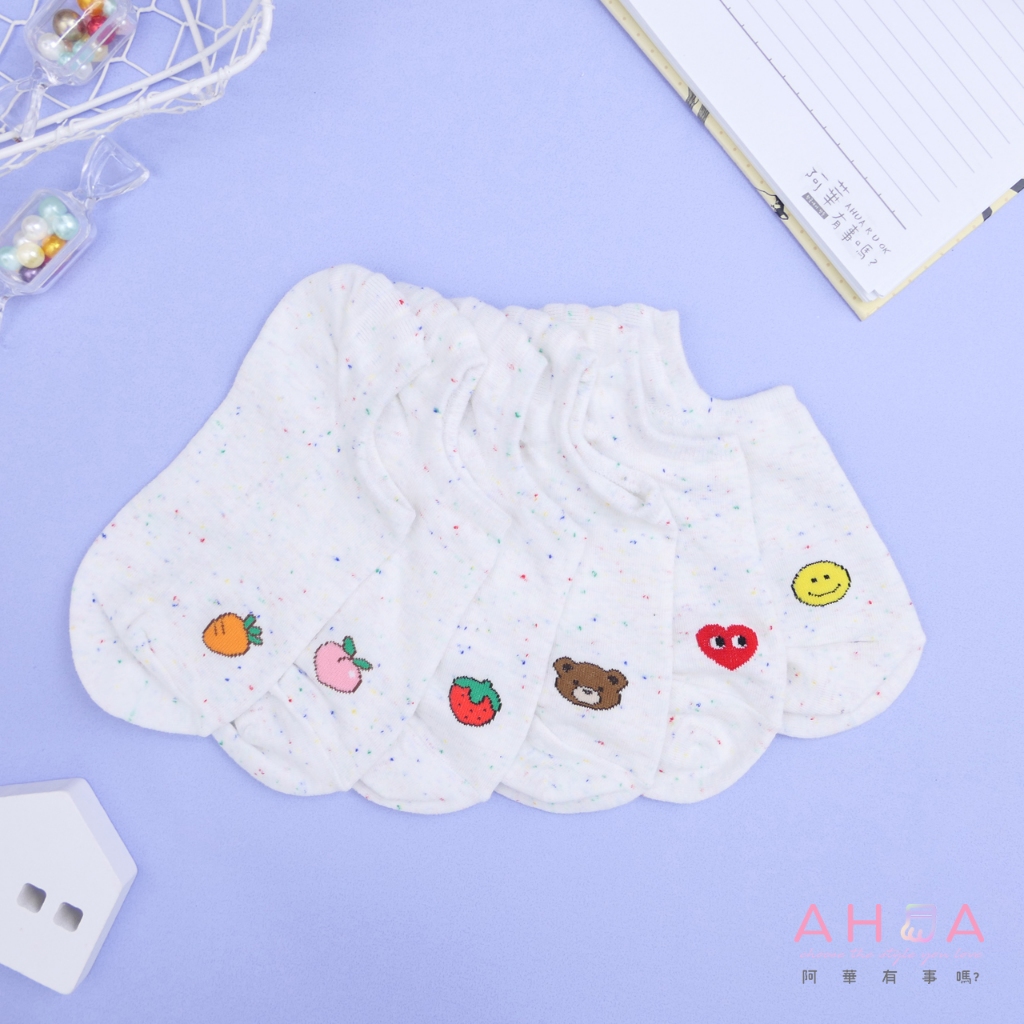 AHUA 阿華有事嗎 點子紗前腳跟小圖船型襪 K2319 正韓襪子 百搭純棉襪 韓系必備 少女襪眼睛愛心|黃色笑臉|小棕熊|草莓|水蜜桃|胡蘿蔔SocksAHUA 韓國襪子品牌旗艦店