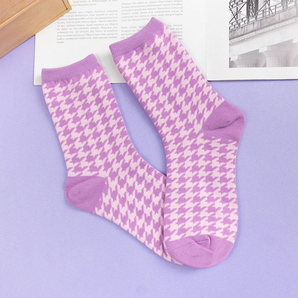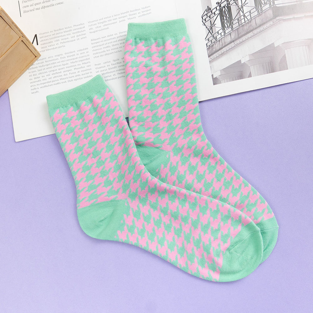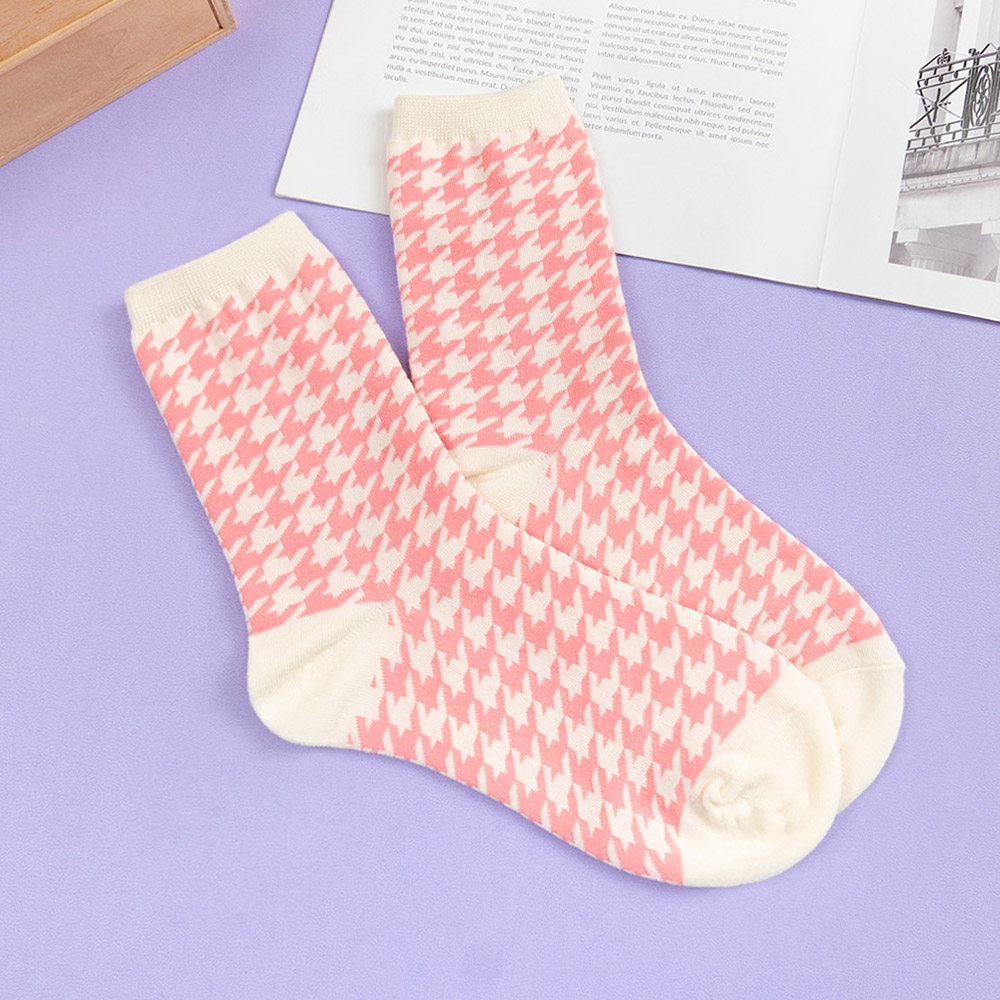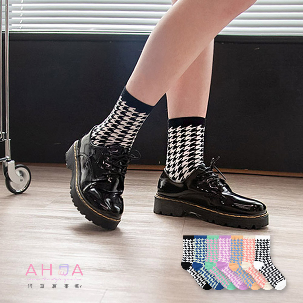 AHUA阿華有事嗎 韓國襪子 滿版千鳥格紋中筒襪 女襪 K1534 襪子推薦 流行襪首選 印花女襪 長襪 純棉襪白襪口|黑襪口|紫襪口|米白襪口|綠襪口|橘襪口|藍襪口SocksAHUA 韓國襪子品牌旗艦店