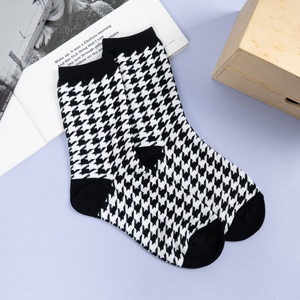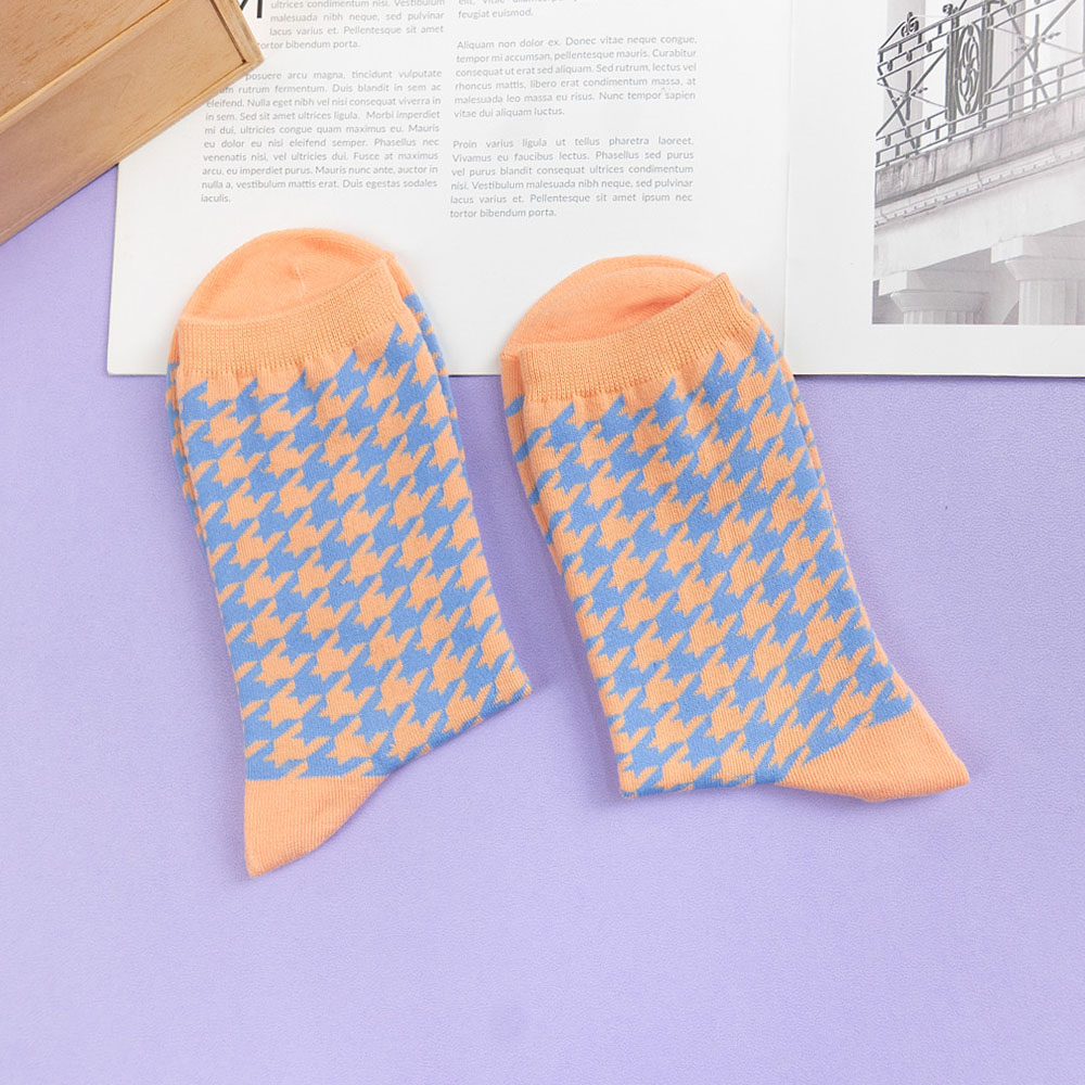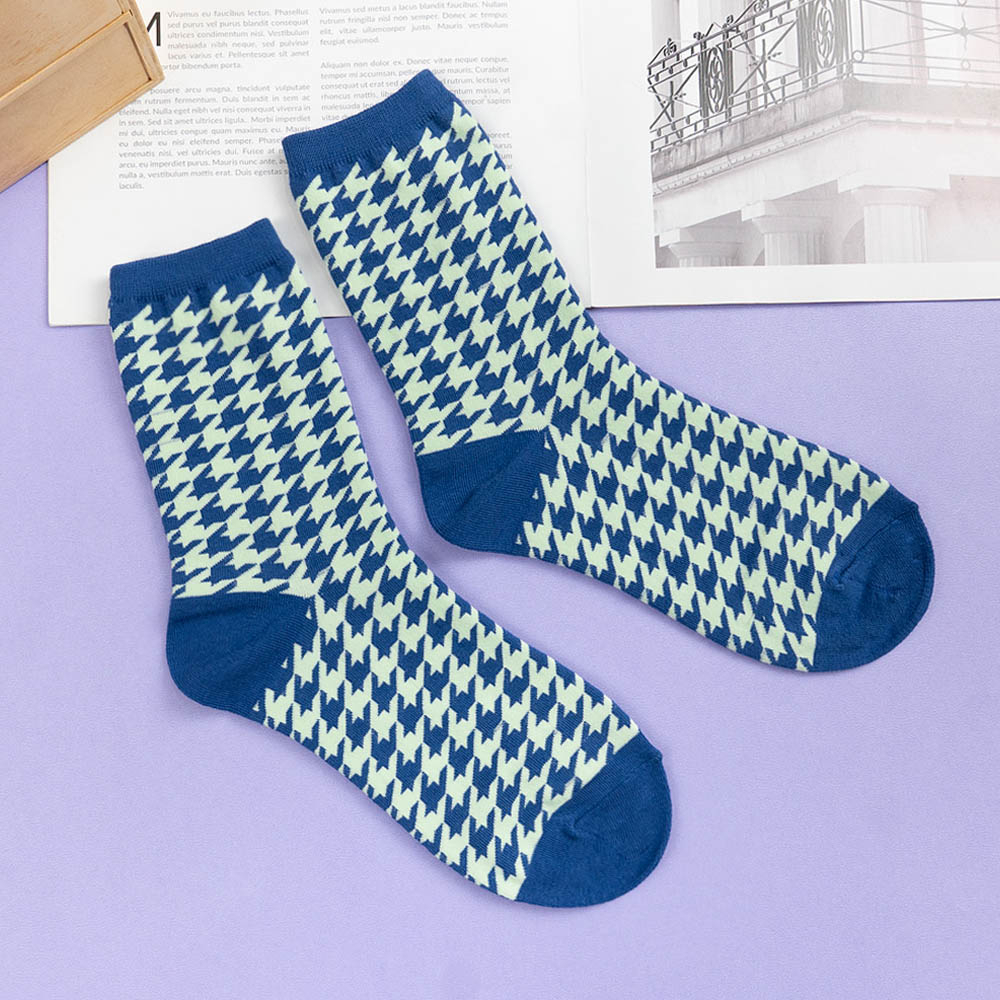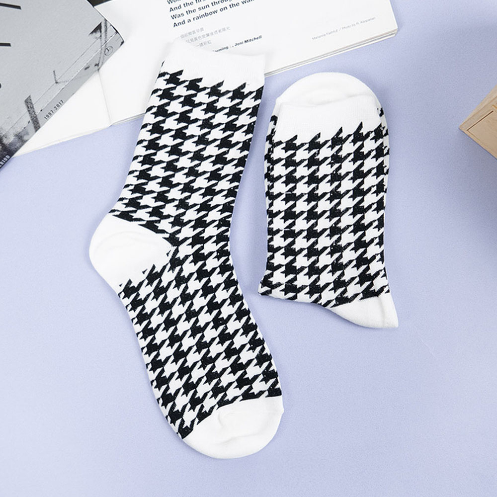 AHUA阿華有事嗎 韓國襪子 滿版千鳥格紋中筒襪 女襪 K1534 襪子推薦 流行襪首選 印花女襪 長襪 純棉襪白襪口|黑襪口|紫襪口|米白襪口|綠襪口|橘襪口|藍襪口SocksAHUA 韓國襪子品牌旗艦店