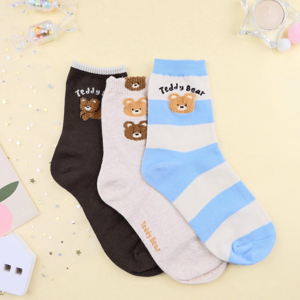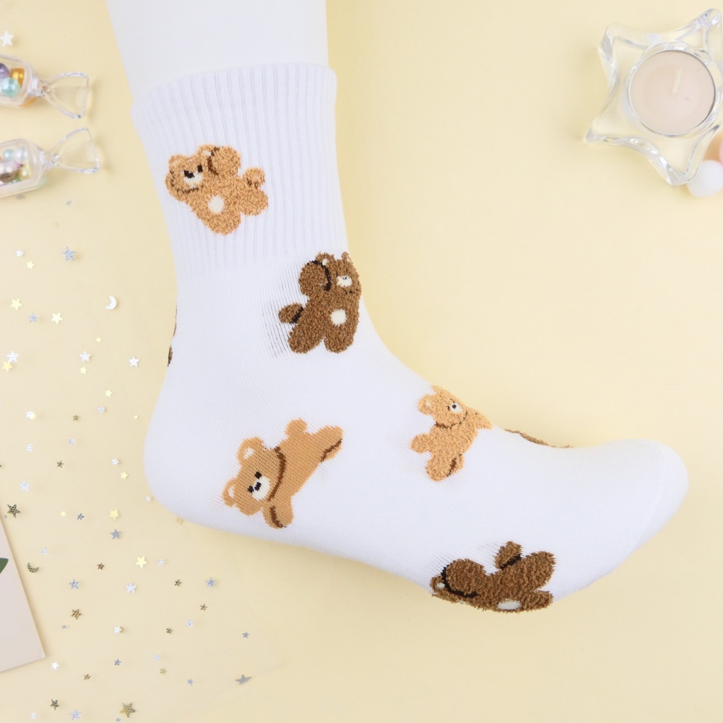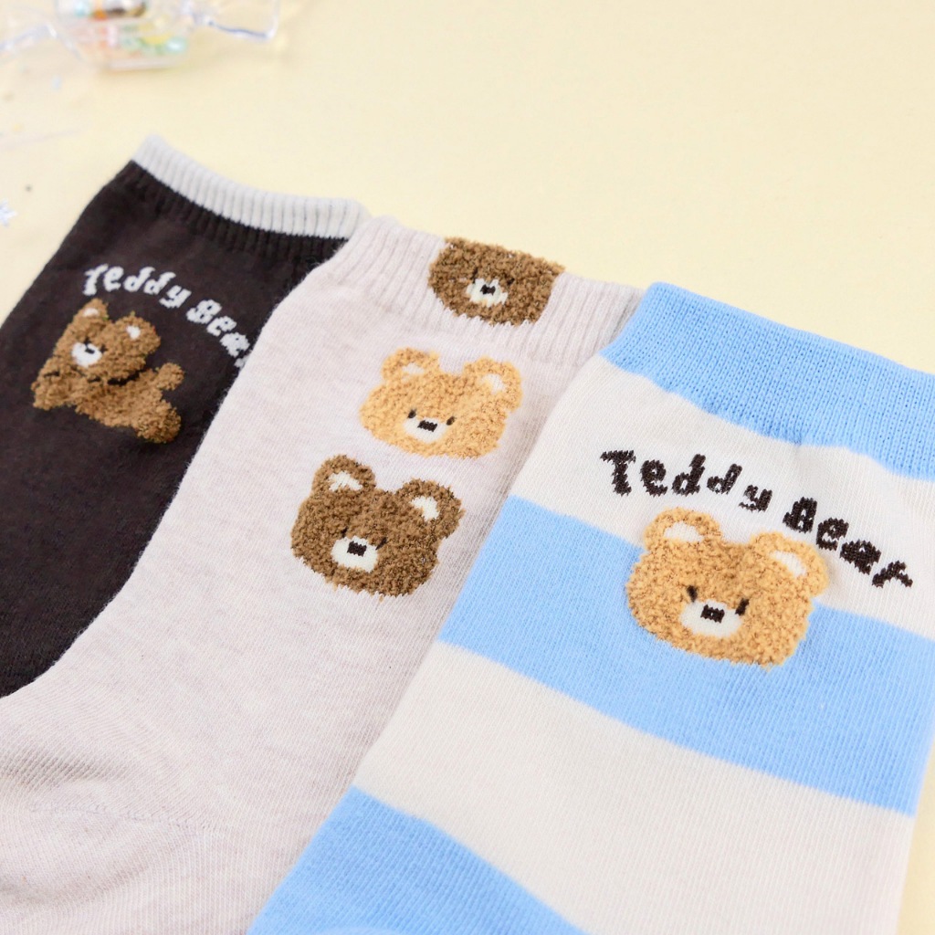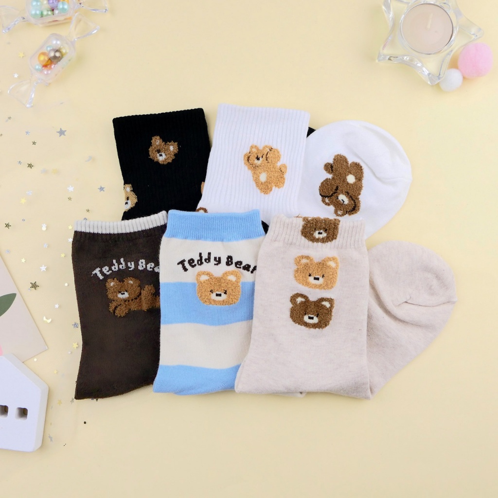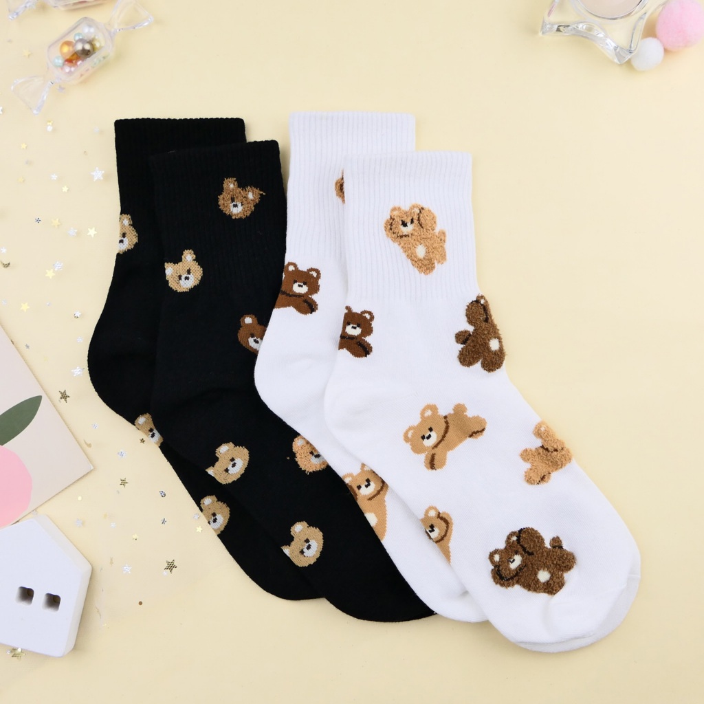 AHUA 阿華有事嗎 立體毛毛泰迪熊熊系列中筒襪 K2333 正韓襪子 百搭純棉襪 韓系必備 少女襪黑底滿版小頭|深咖底米白襪口|藍底米黃條紋|米白底立體耳朵三隻熊熊|白底滿版飛奔熊熊SocksAHUA 韓國襪子品牌旗艦店