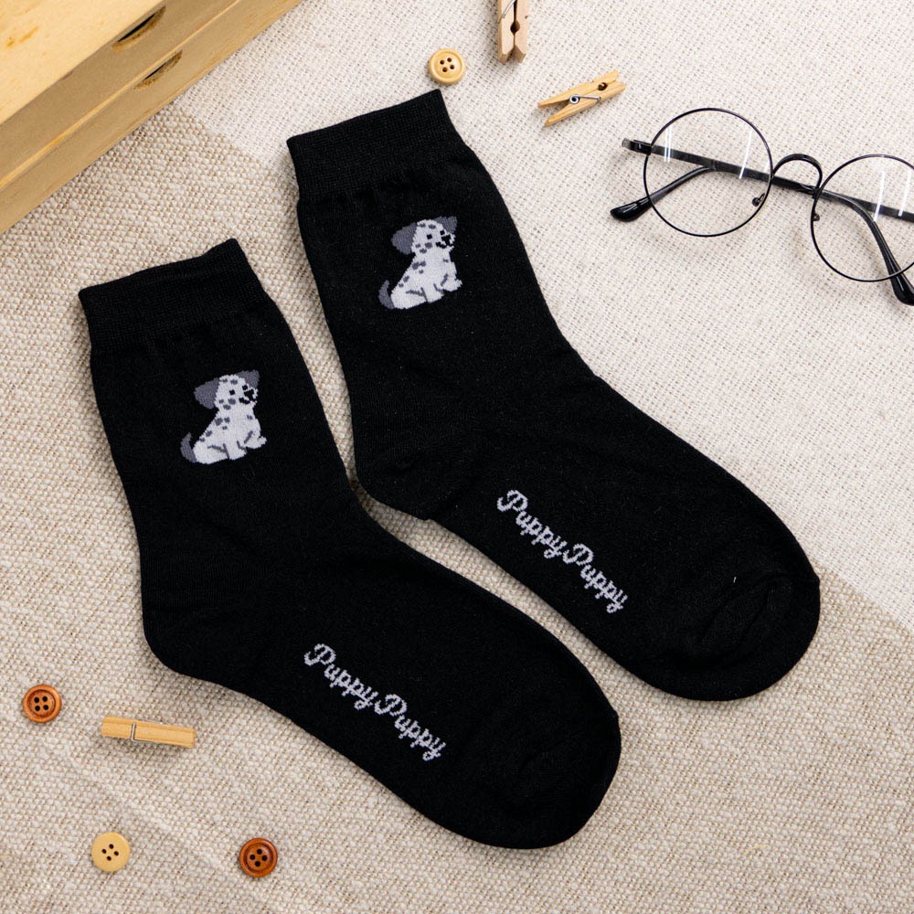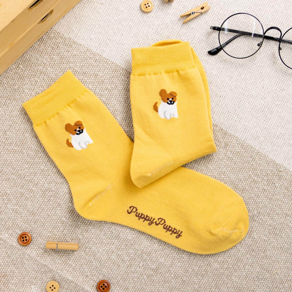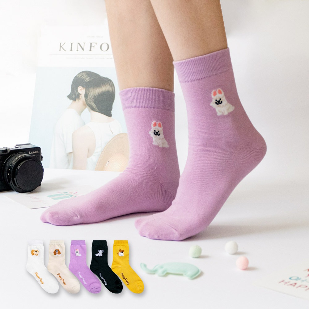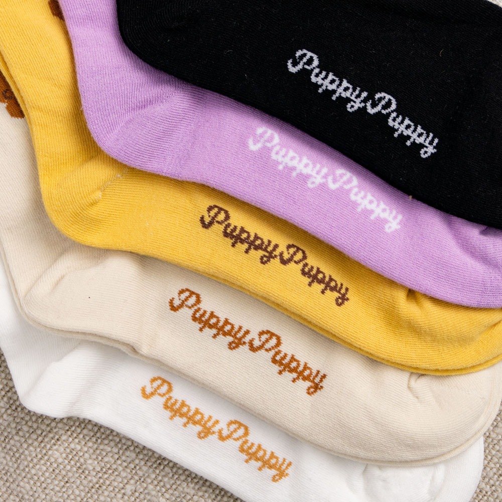 AHUA 韓國襪子 腳底Puppy文字狗狗中筒襪 K2027 韓妞必備 百搭純棉襪 正韓襪子 少女襪 阿華有事嗎白底|米白底|紫底|薑黃底|黑底SocksAHUA 韓國襪子品牌旗艦店