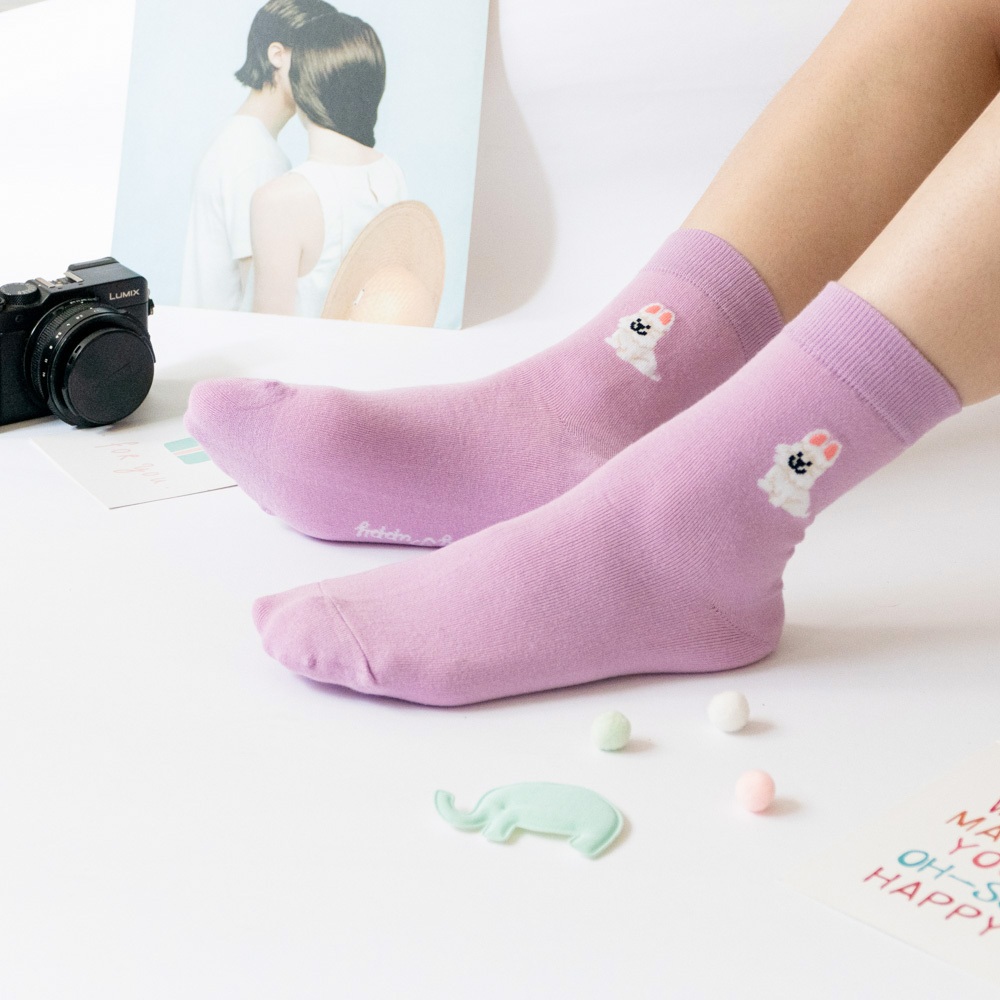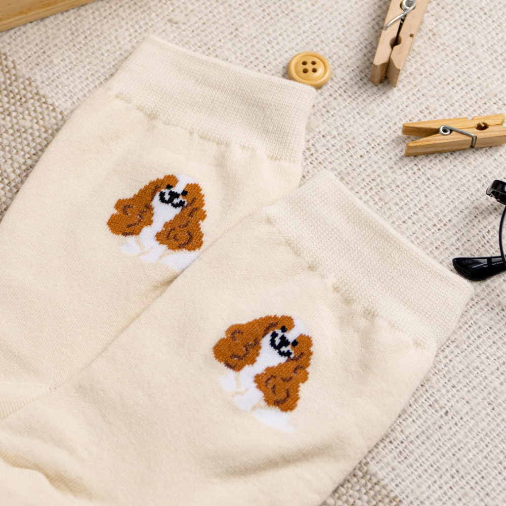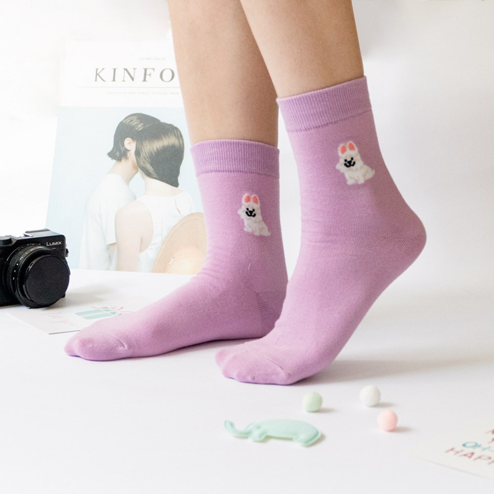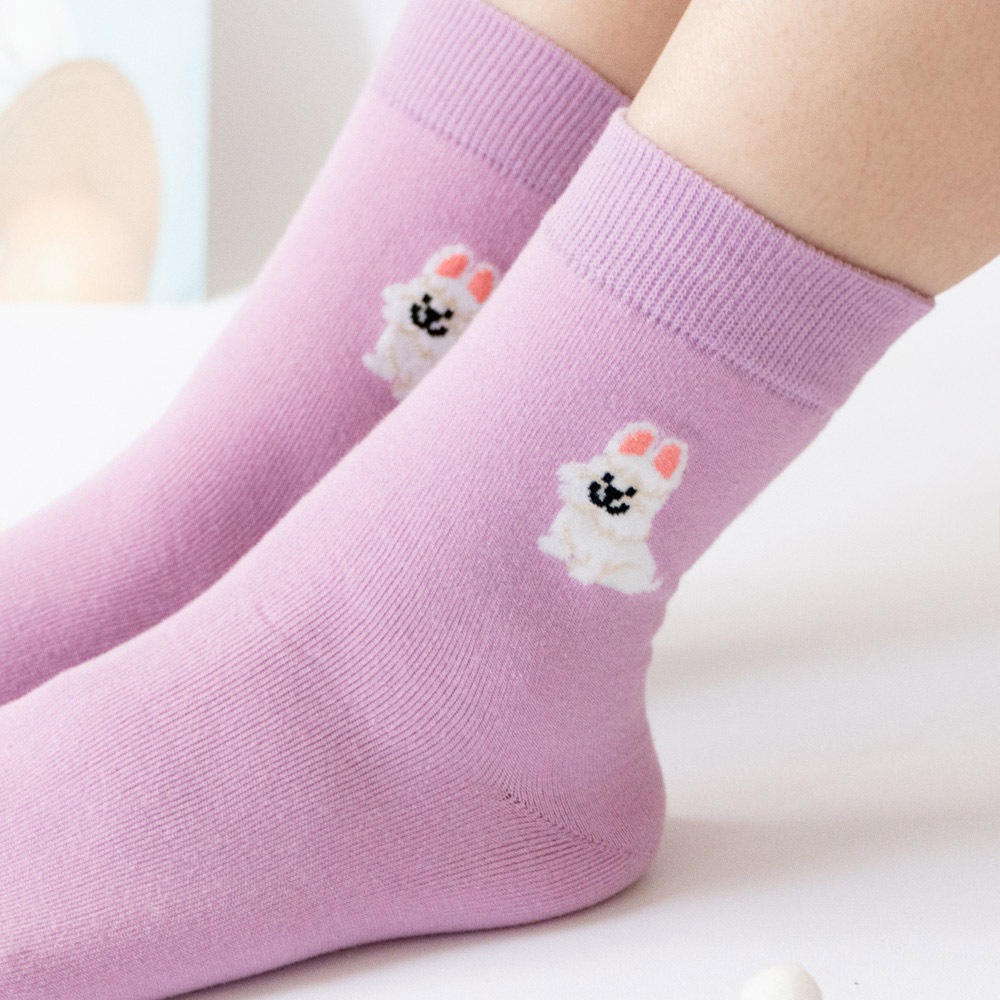 AHUA 韓國襪子 腳底Puppy文字狗狗中筒襪 K2027 韓妞必備 百搭純棉襪 正韓襪子 少女襪 阿華有事嗎白底|米白底|紫底|薑黃底|黑底SocksAHUA 韓國襪子品牌旗艦店