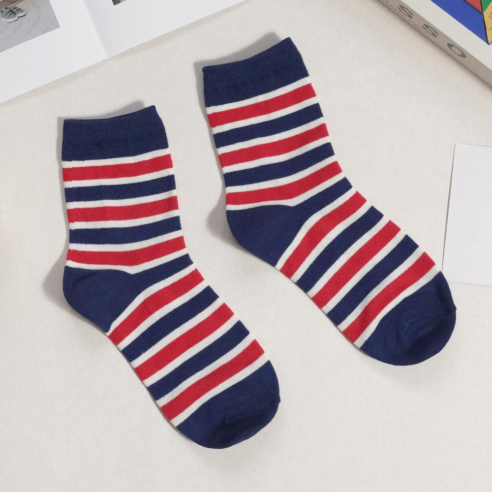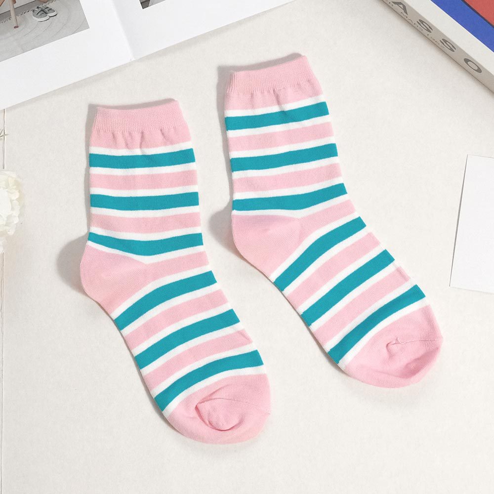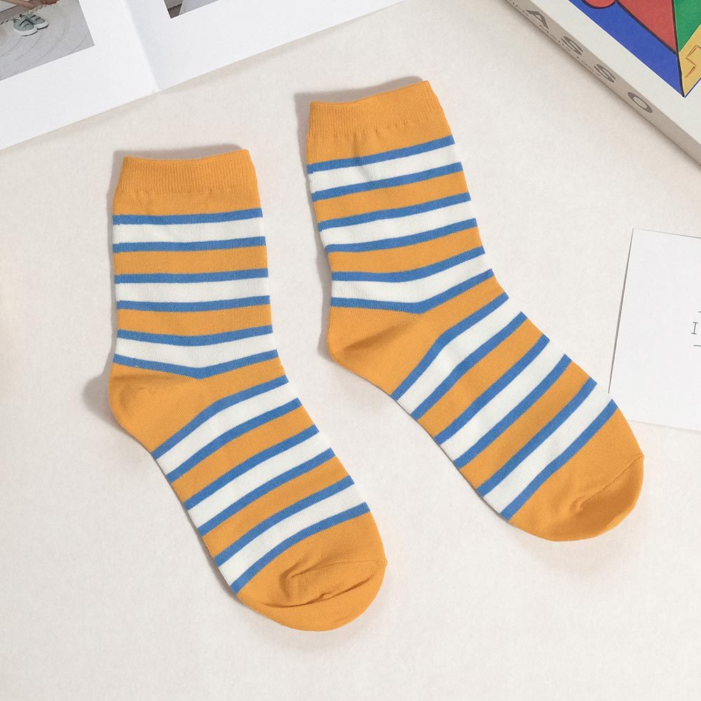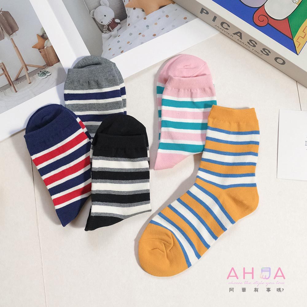 AHUA阿華有事嗎 滿版糖果色系條紋中筒襪 K2227 正韓襪子 百搭純棉襪 韓妞必備 少女襪粉底薄荷綠條紋|薑黃底藍條紋|深藍底紅條紋|灰底深藍條紋|黑底灰條紋SocksAHUA 韓國襪子品牌旗艦店