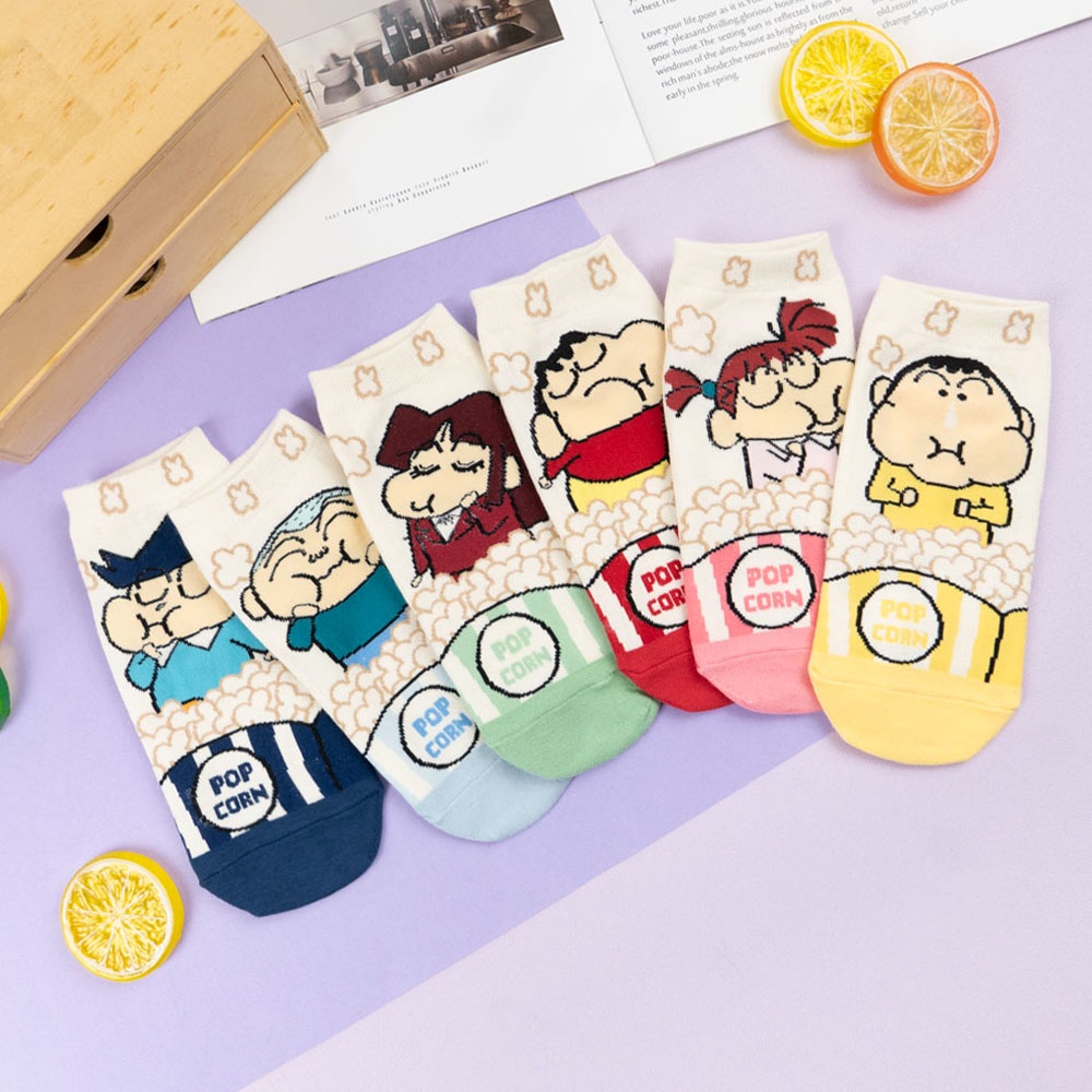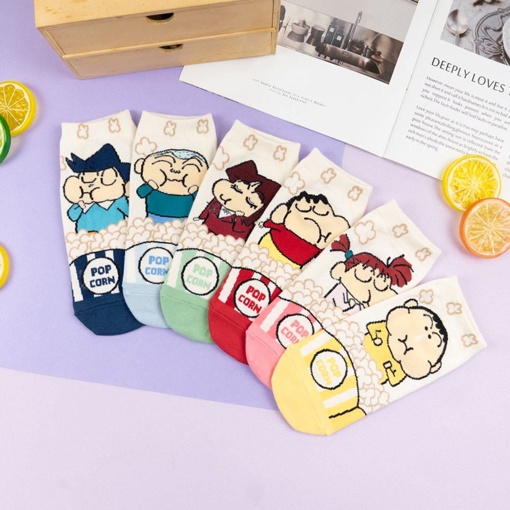 蠟筆小新 AHUA阿華有事嗎 韓國襪子 蠟筆小新爆米花系列短襪【K1475】短襪 少女襪 韓妞必備 百搭純棉襪小新|正男|妮妮|風間|阿呆|小愛SocksAHUA 韓國襪子品牌旗艦店