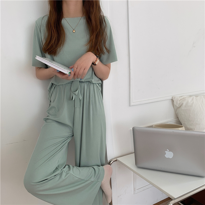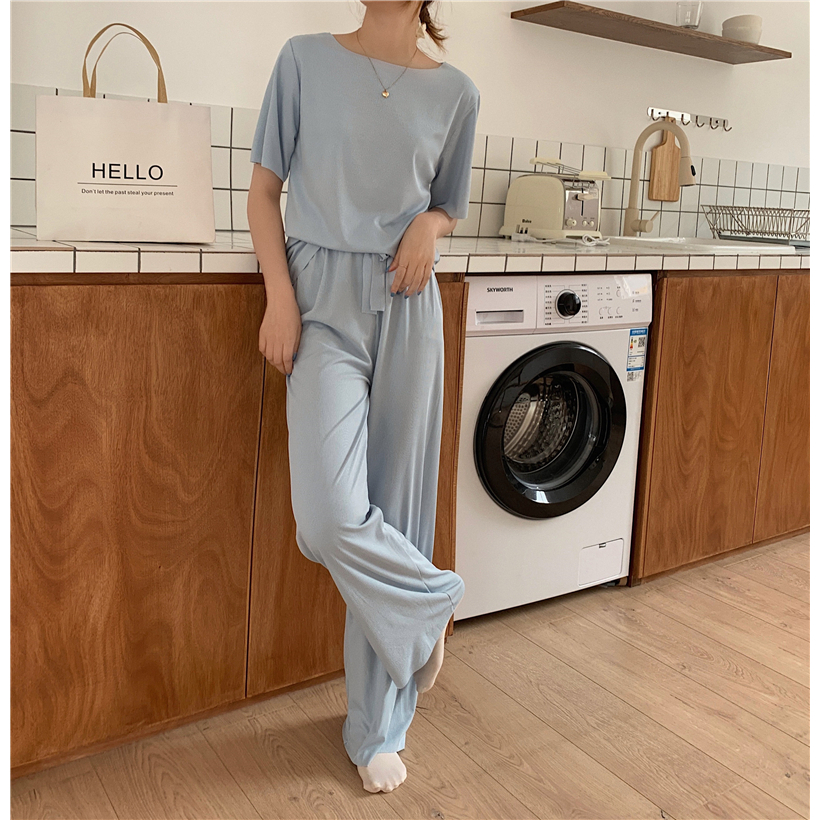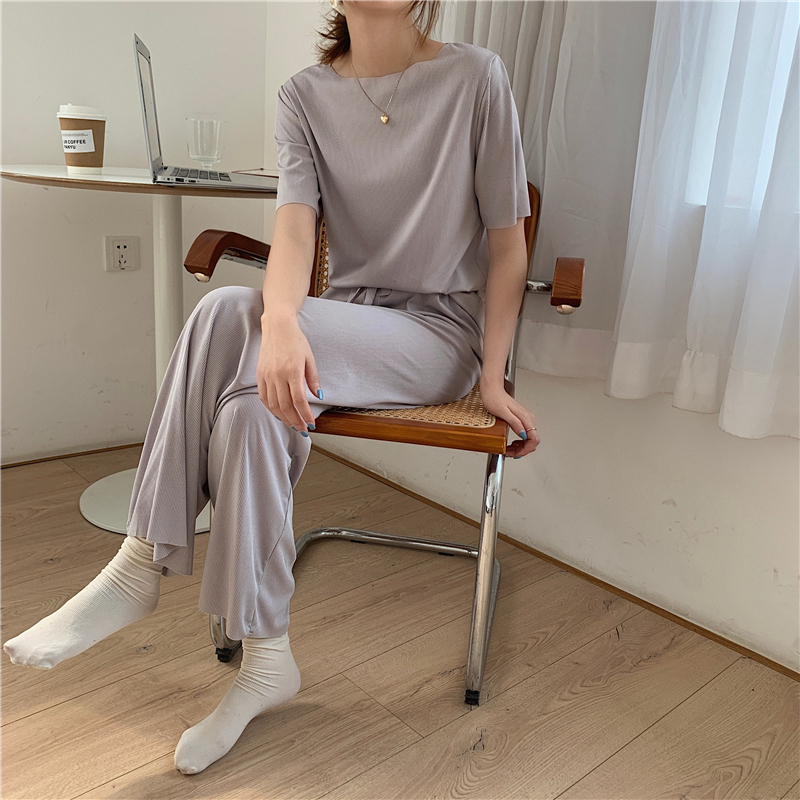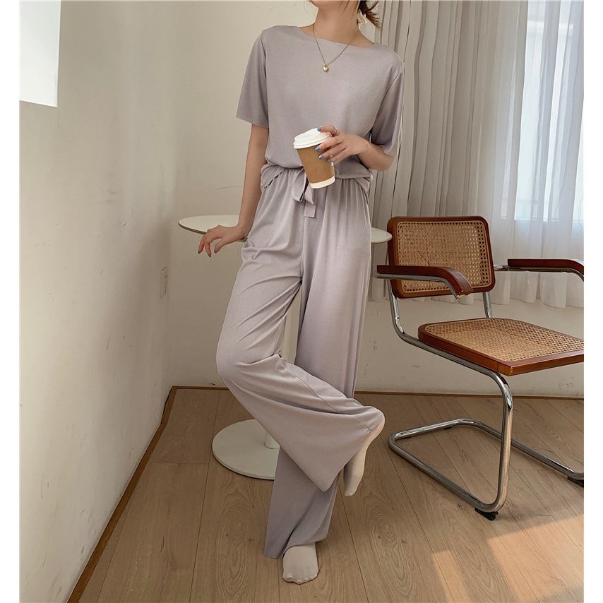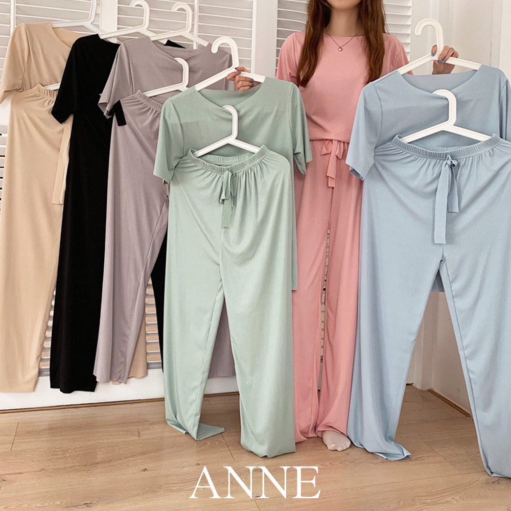 ANNE|出清中|250降167|休閒套裝 居家服 睡衣【AO10166】涼感 上衣 短袖T恤 短袖上衣 長褲 棉長褲灰|杏|粉|綠|藍|黑Individual SetsANNE 孕婦裝 孕婦內衣褲 專櫃平替