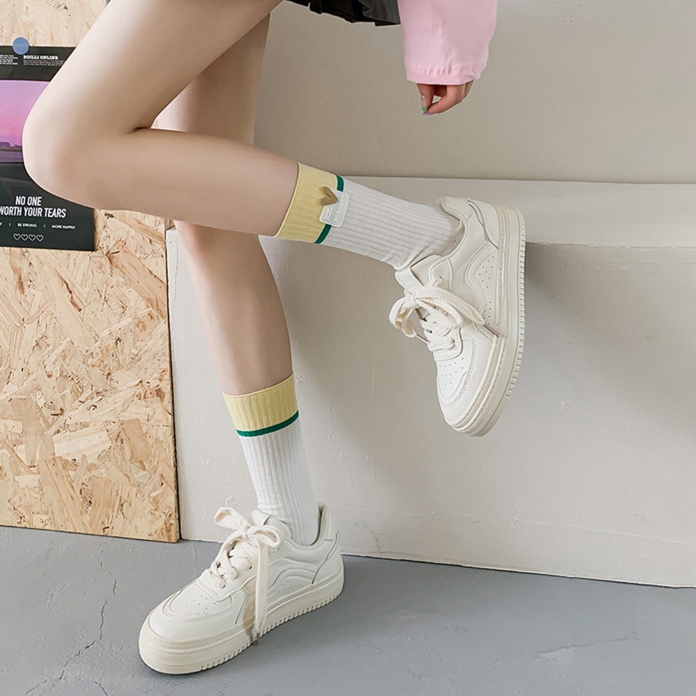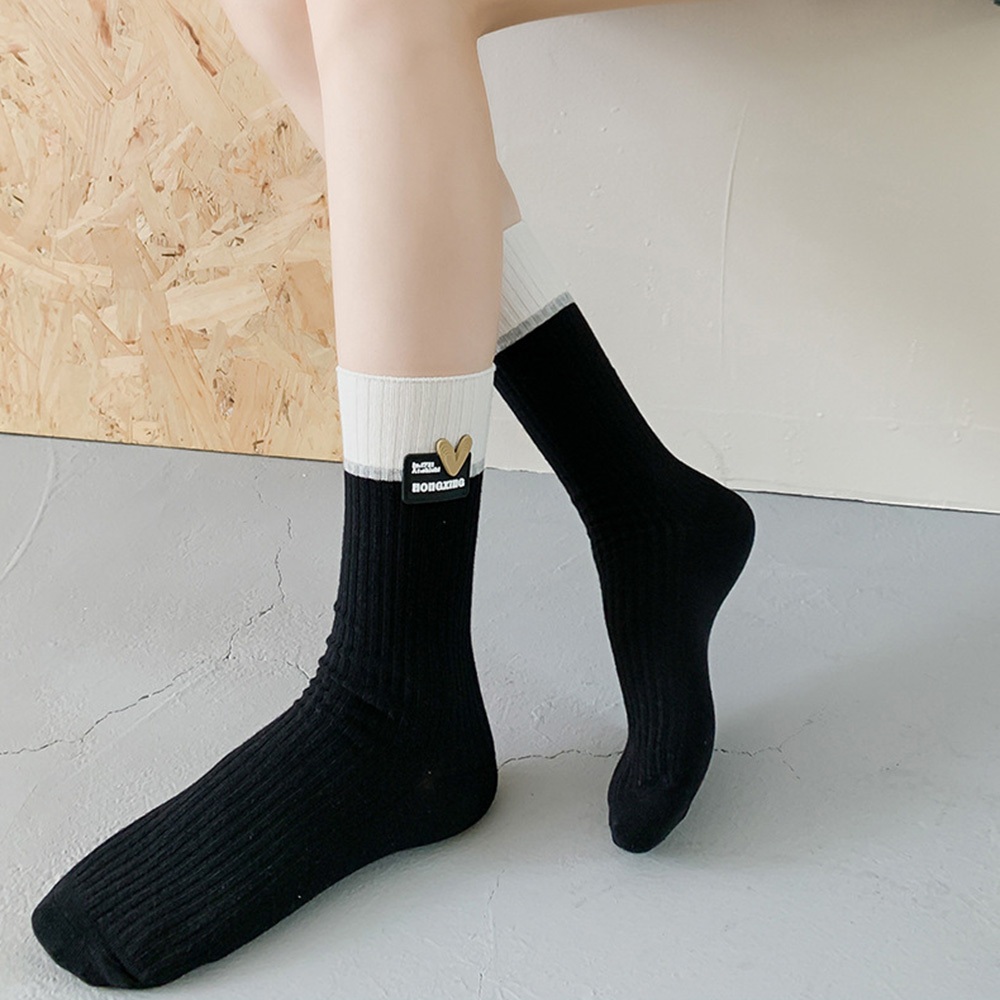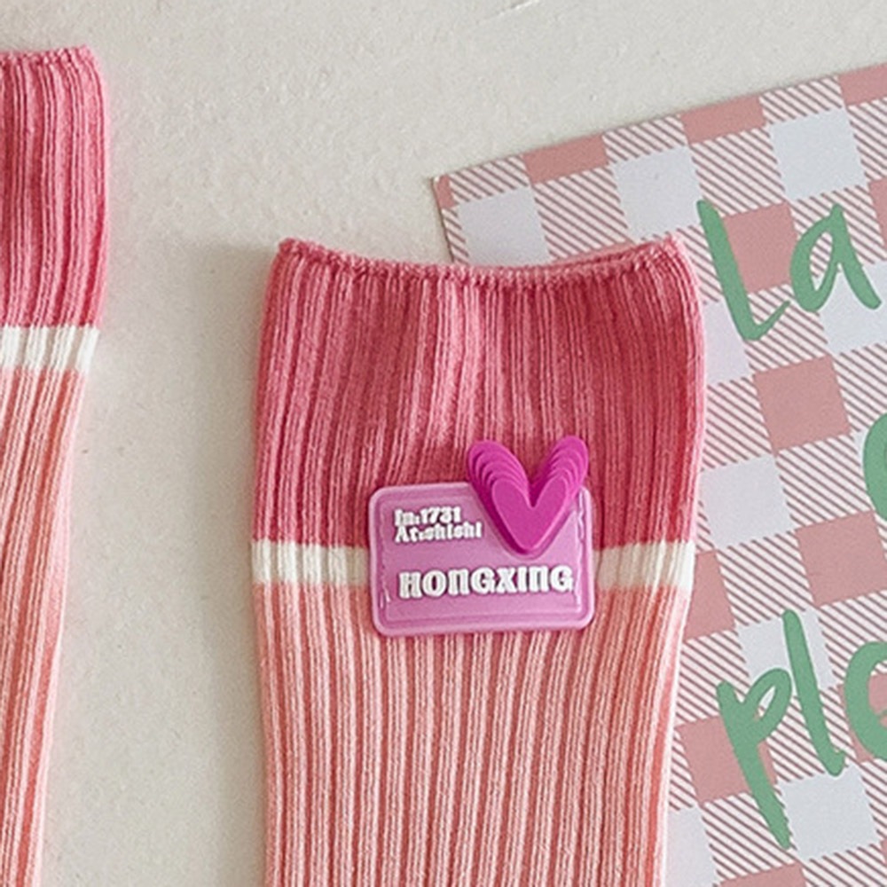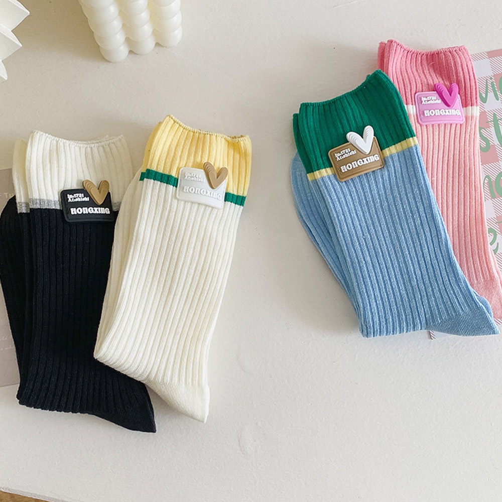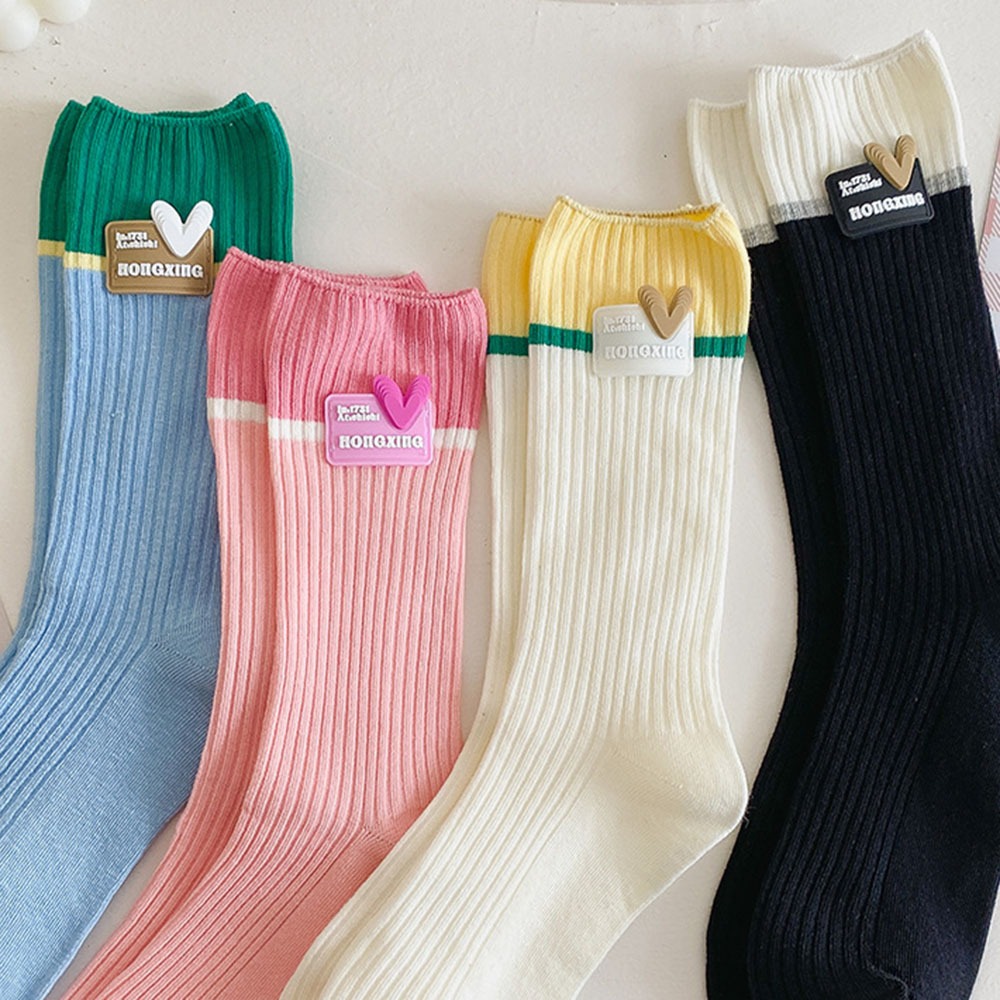 AHUA阿華有事嗎 韓國襪子 立體愛心標籤多巴胺拼色中筒襪 S0484 韓妞必備 百搭純棉襪 卡通 日系 可愛米底黃襪口|淺粉底粉襪口|藍底綠襪口|黑底米襪口SocksAHUA 韓國襪子品牌旗艦店