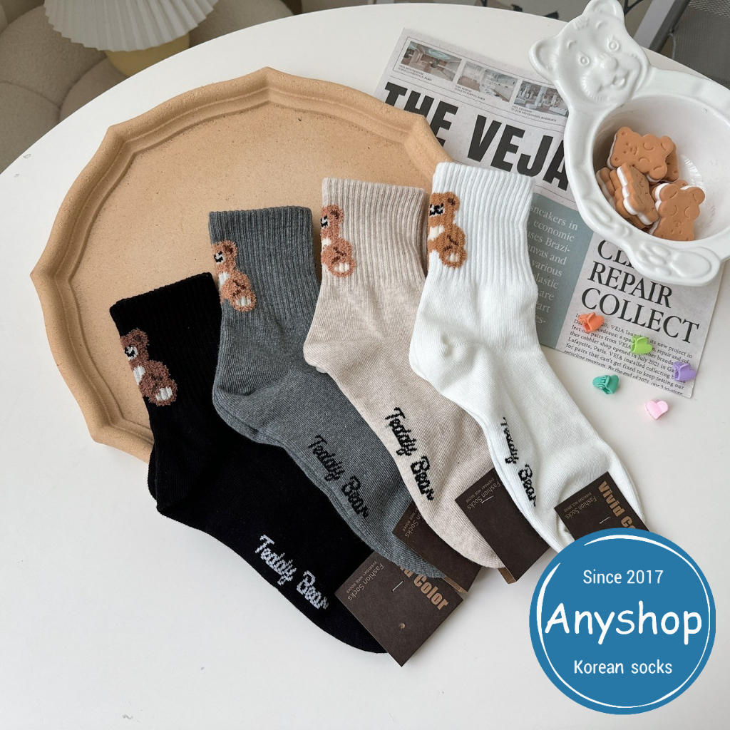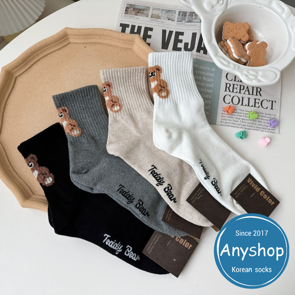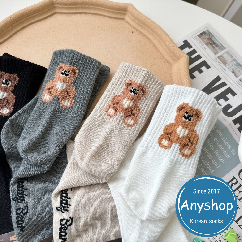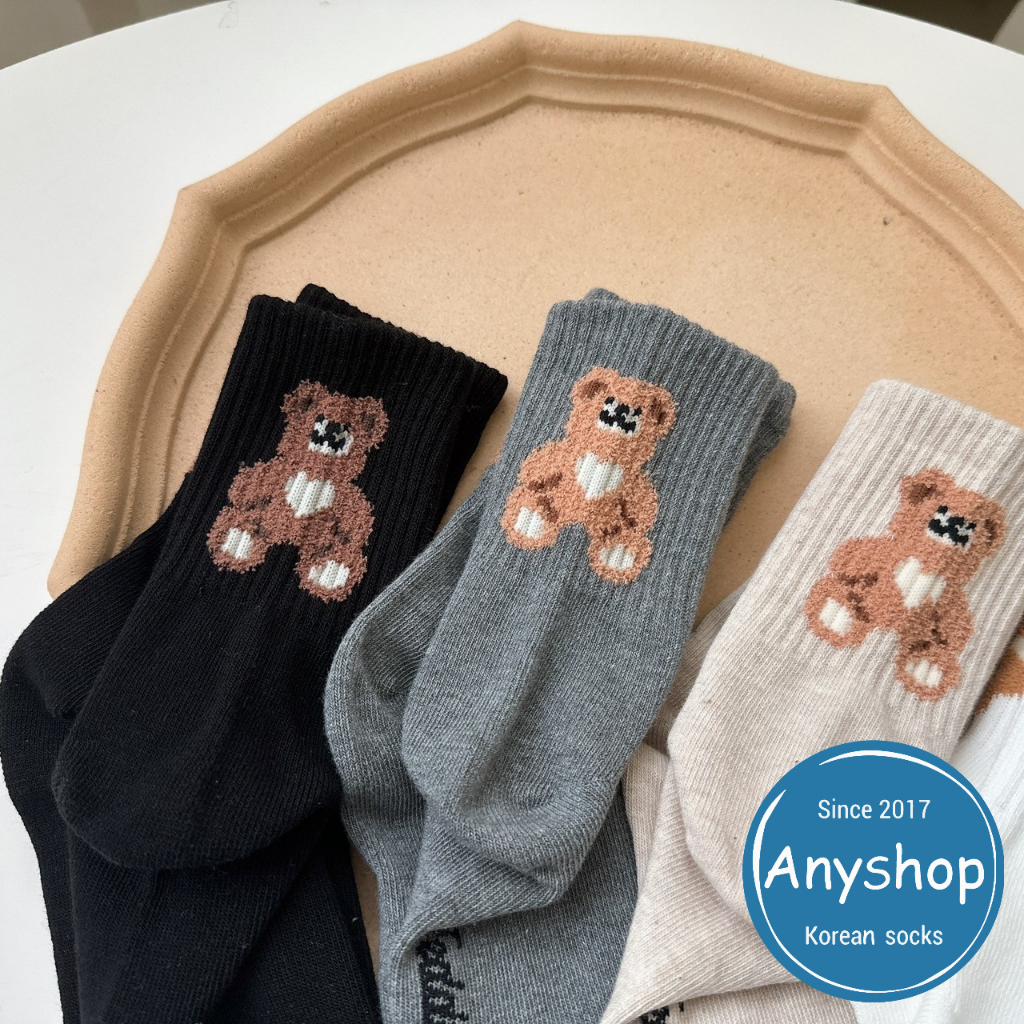 Anyshop韓國襪 後腳跟熊熊中筒襪 動物襪 女孩精選 泰迪熊 韓國襪 韓國女襪 韓襪 貼圖 笑臉 熊熊襪 09803黑色【09803】|白色【09803】|灰色【09803】|米色【09803】SocksAnyshop韓國襪專賣 | 零售 | 團購 | 批發