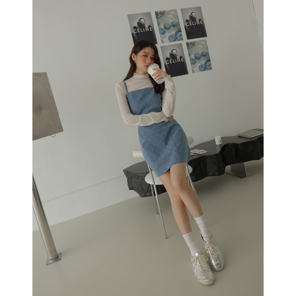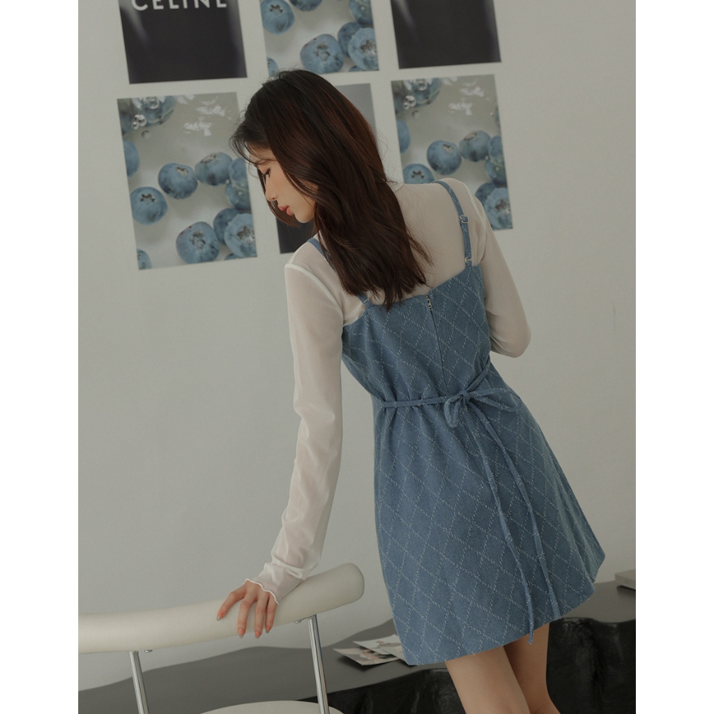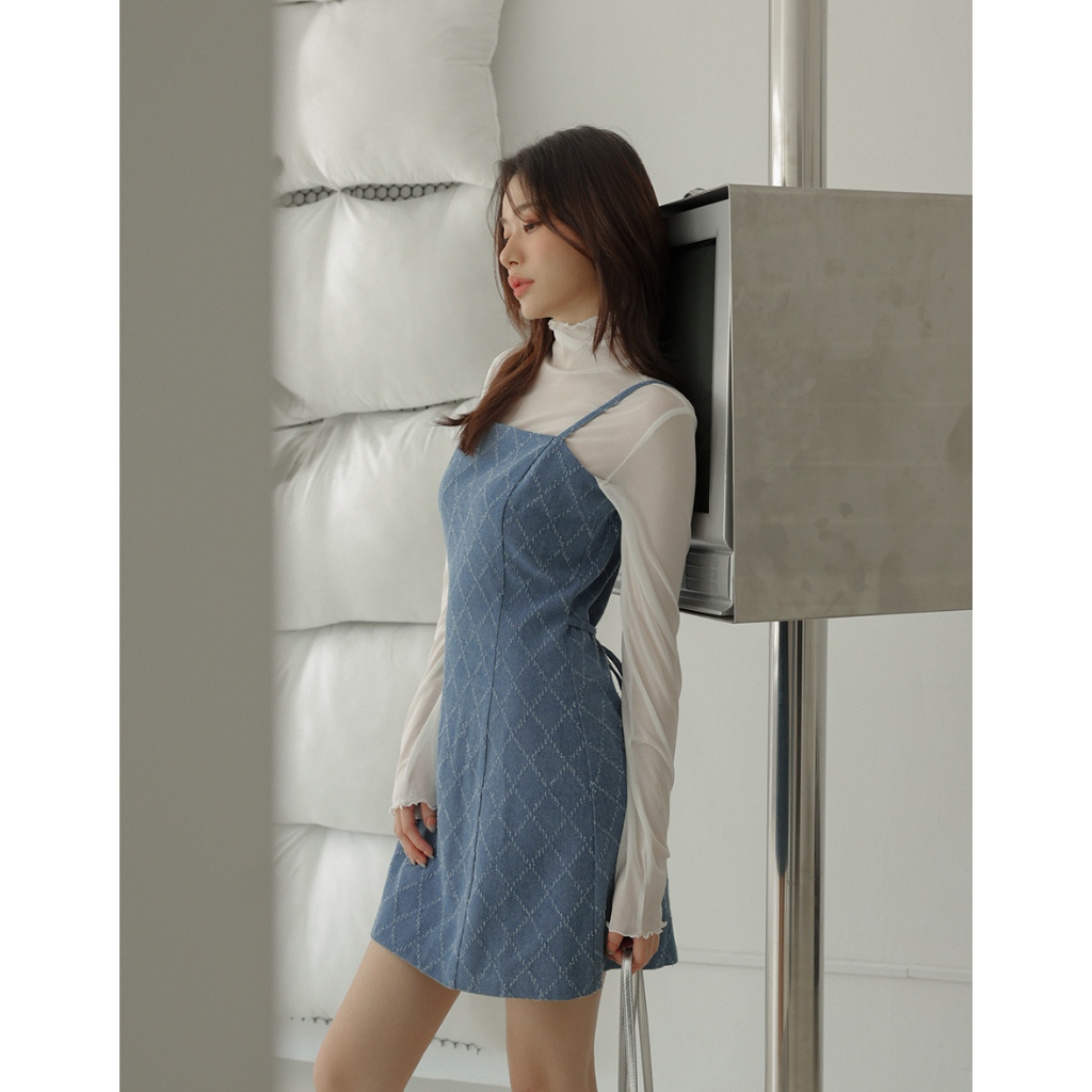 AIR SPACE LADY 菱格紋厚磅細肩短洋裝(黑/藍) 女裝 現貨黑,S|黑,M|黑,L|藍,S|藍,M|藍,LAIR SPACE