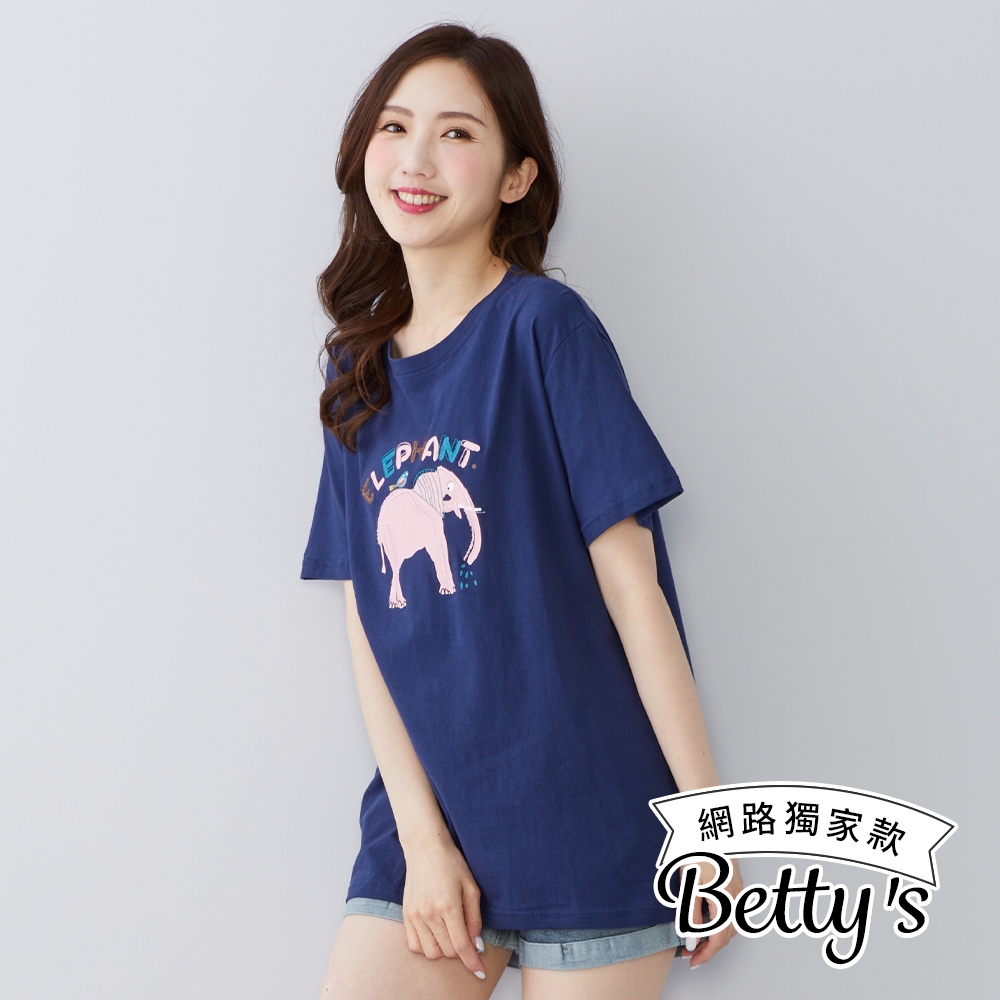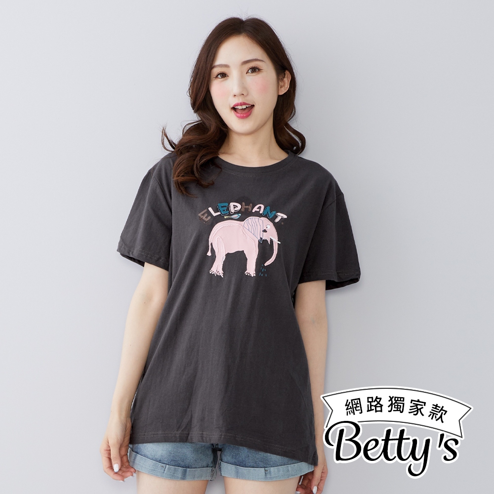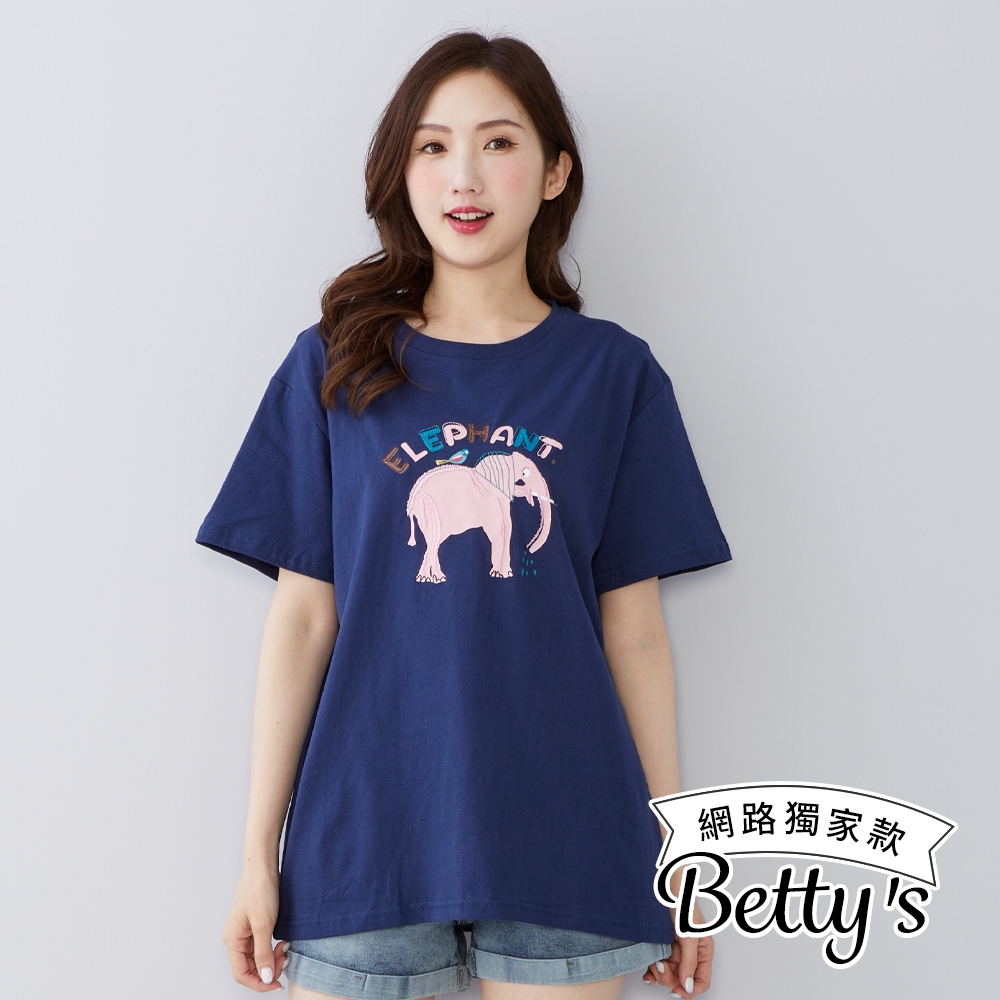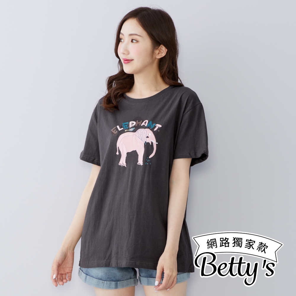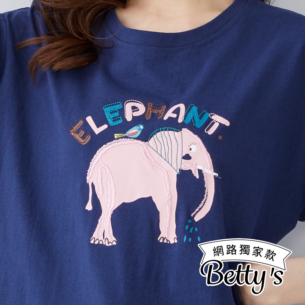 betty’s貝蒂思(50)趣味字母大象刺繡上衣(共二色)深藍|深灰T-shirtsbetty’s貝蒂思