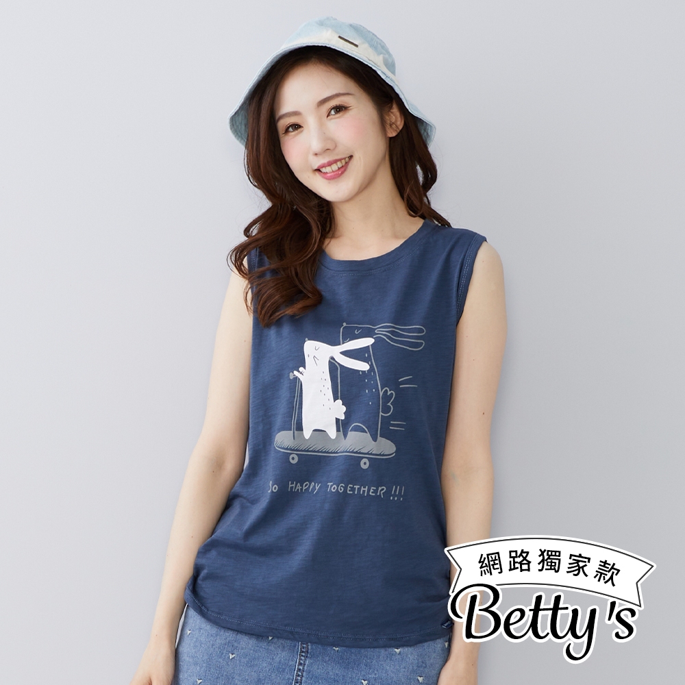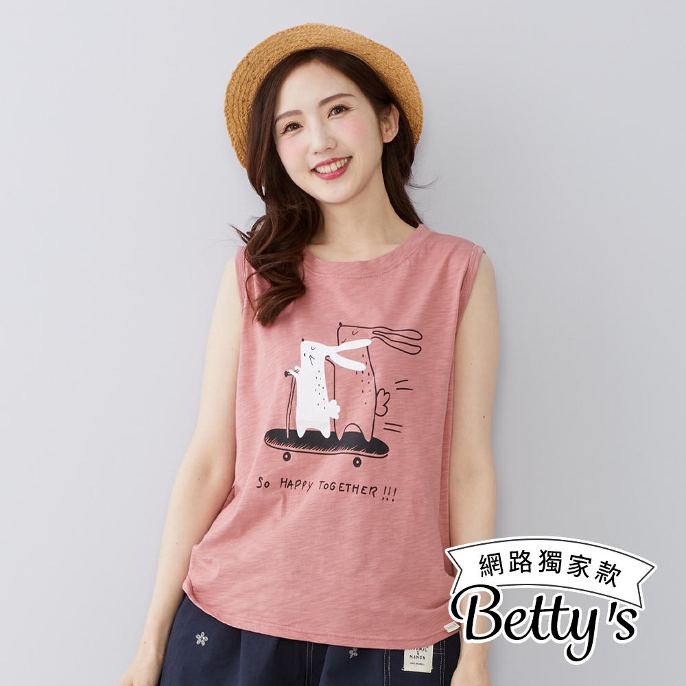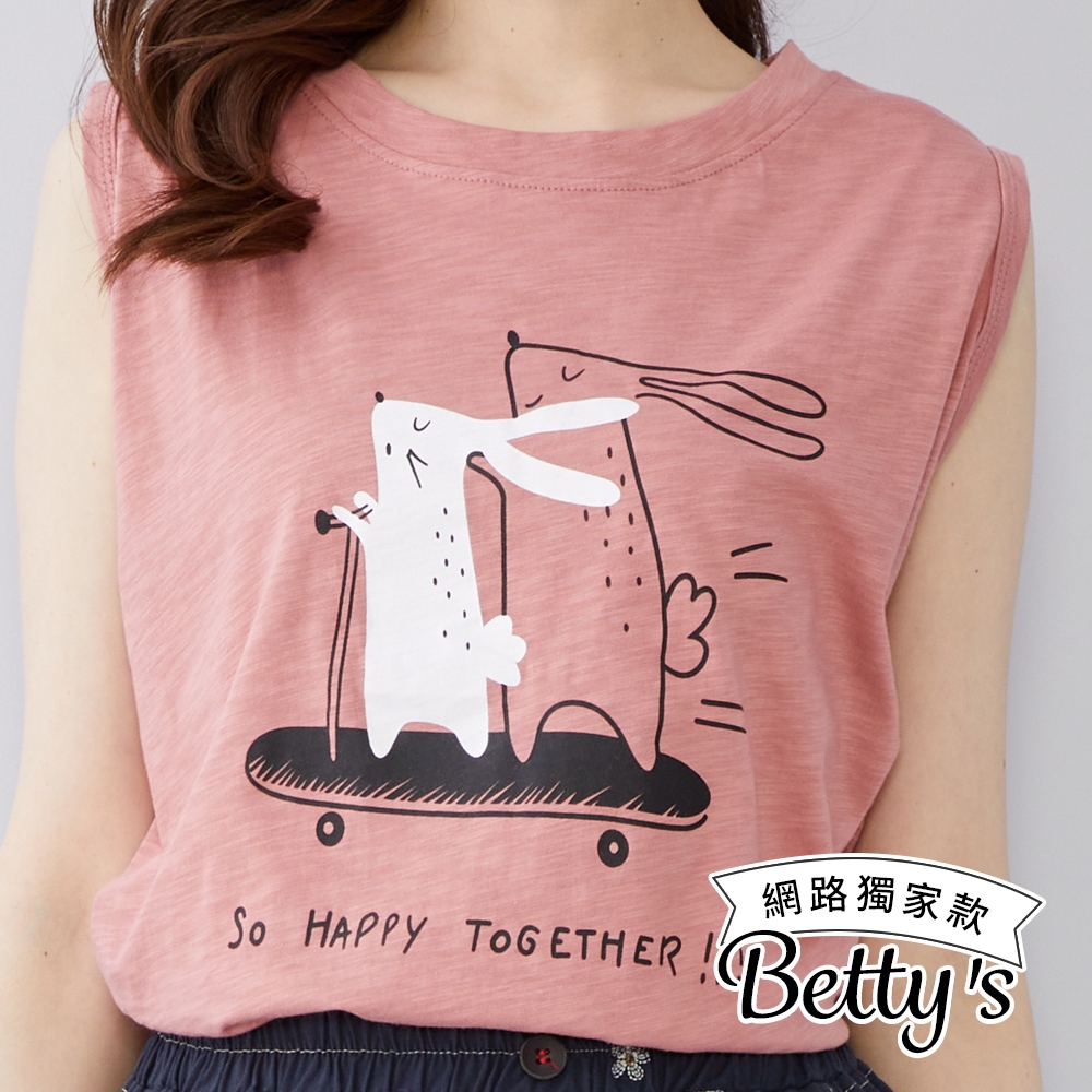 betty’s貝蒂思(50)兔兔印花竹節棉無袖上衣(共三色)粉橘|淺綠|藍色T-shirtsbetty’s貝蒂思