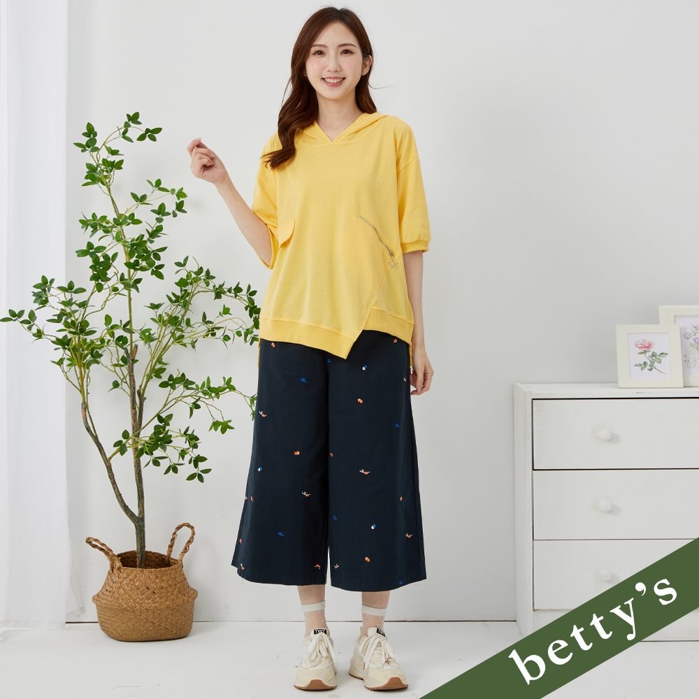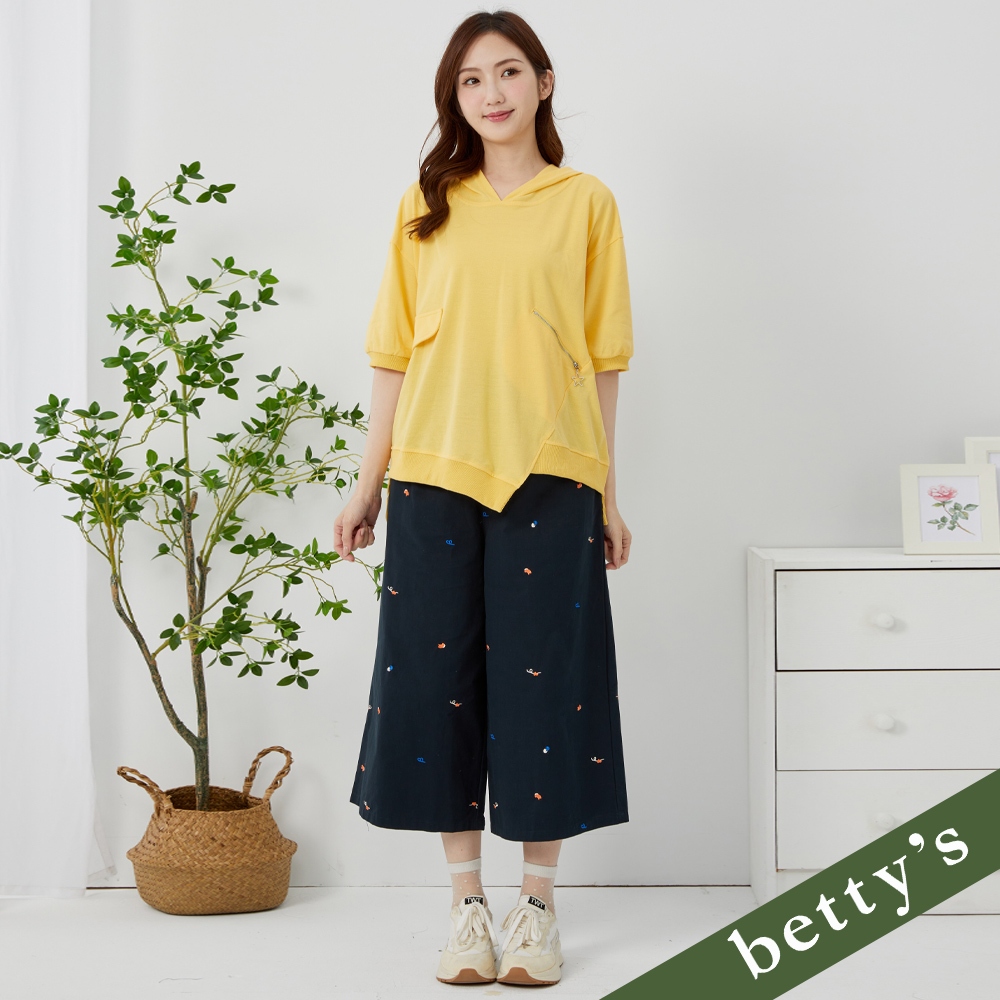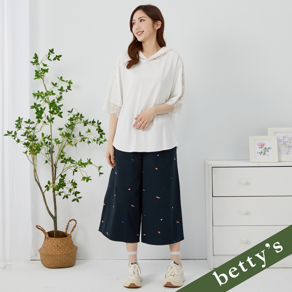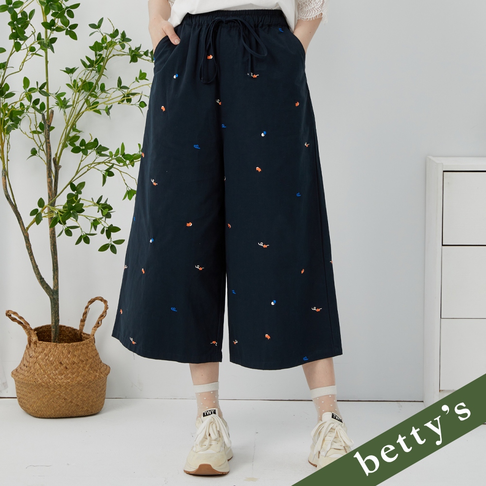 betty’s貝蒂思(35) 腰鬆緊抽繩迷你刺繡休閒寬褲(深藍)深藍,M|深藍,LPantsbetty’s貝蒂思
