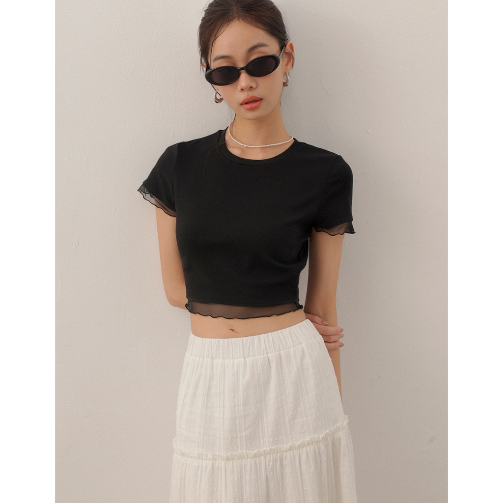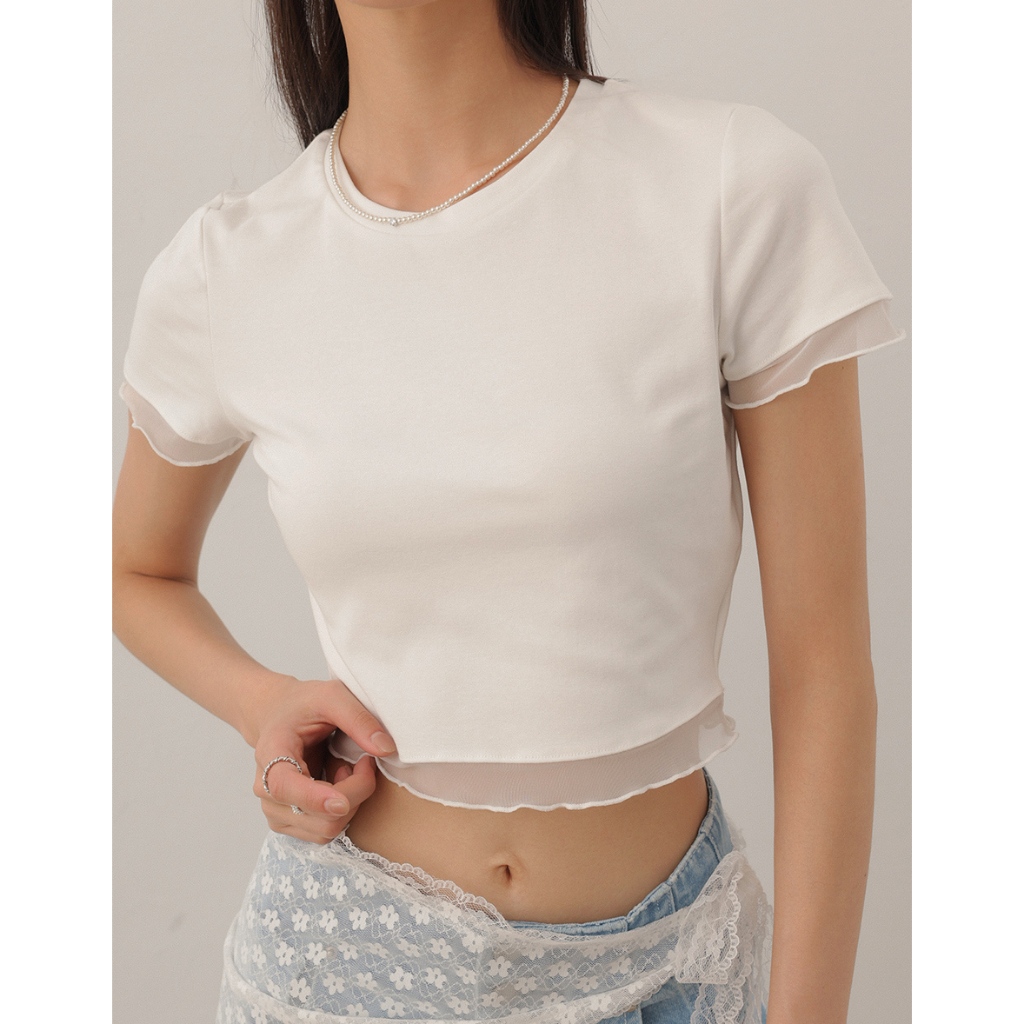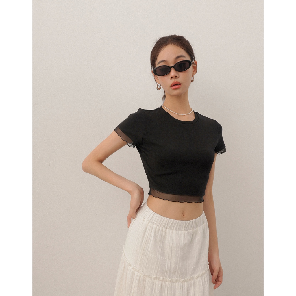 AIR SPACE PLUS 層次感透紗木耳捲合身短TEE(黑/白) 女裝 現貨 大尺碼 中大尺碼黑,XL|黑,2XL|黑,3XL|白,XL|白,2XL|白,3XLT-shirtsAIR SPACE