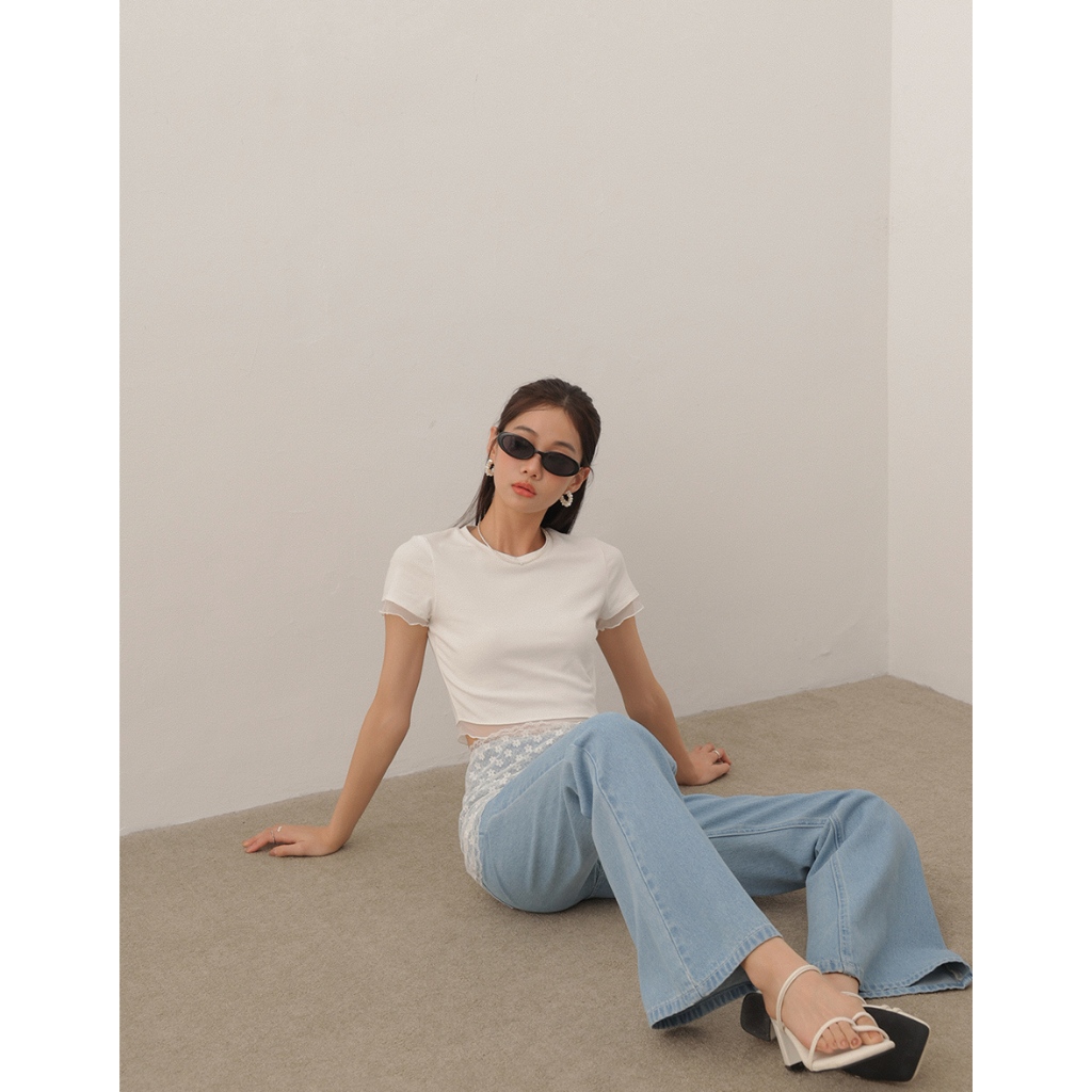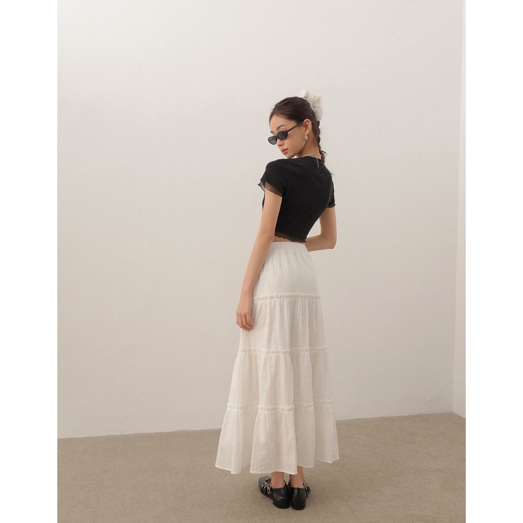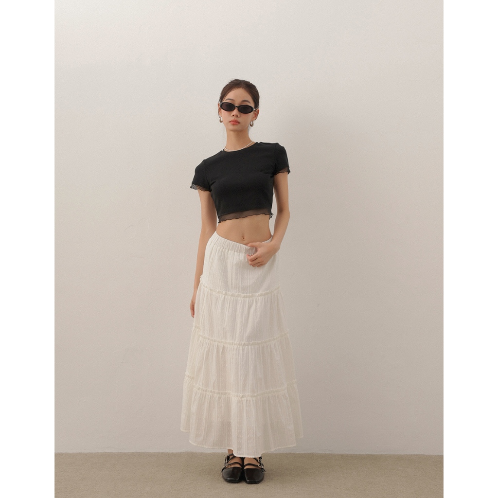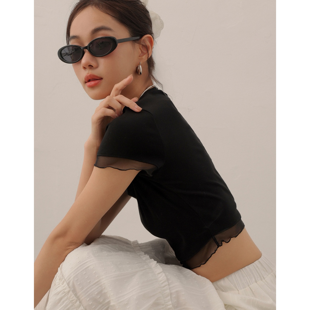 AIR SPACE PLUS 層次感透紗木耳捲合身短TEE(黑/白) 女裝 現貨 大尺碼 中大尺碼黑,XL|黑,2XL|黑,3XL|白,XL|白,2XL|白,3XLT-shirtsAIR SPACE