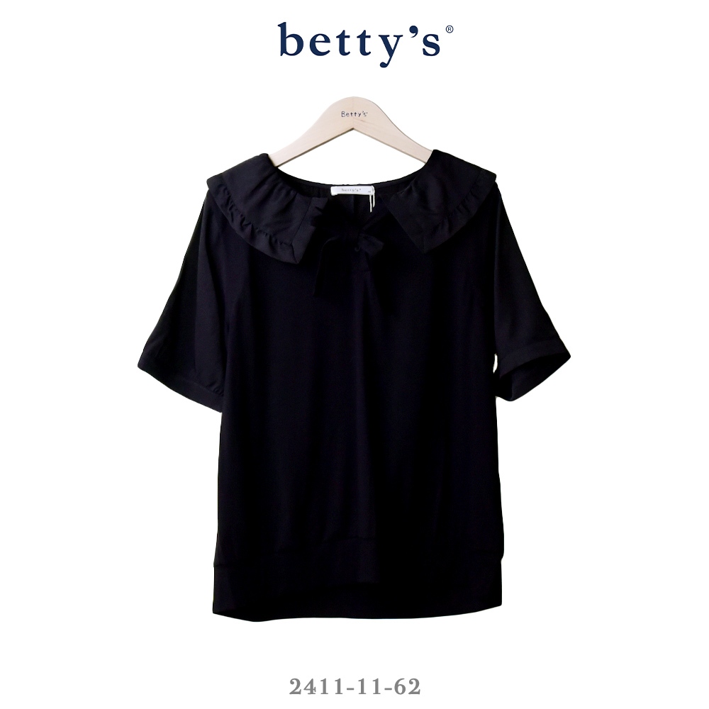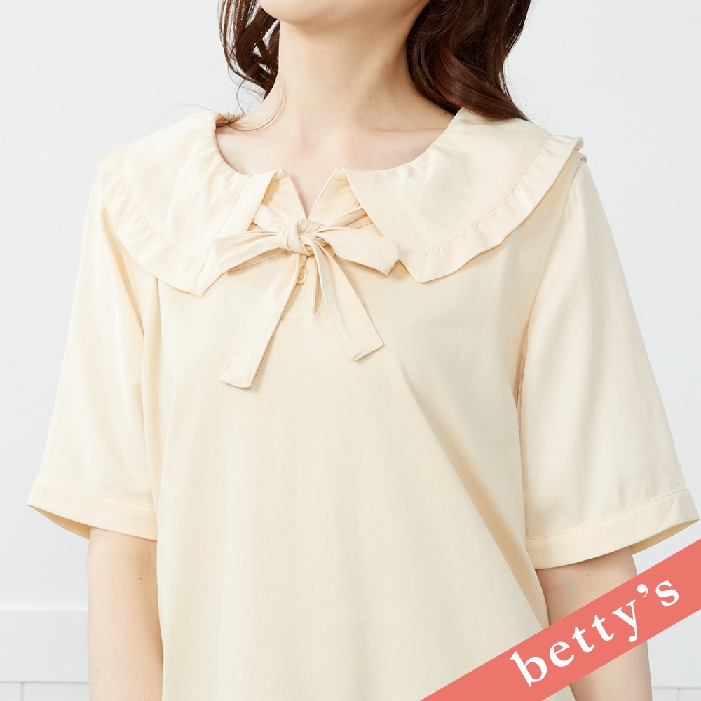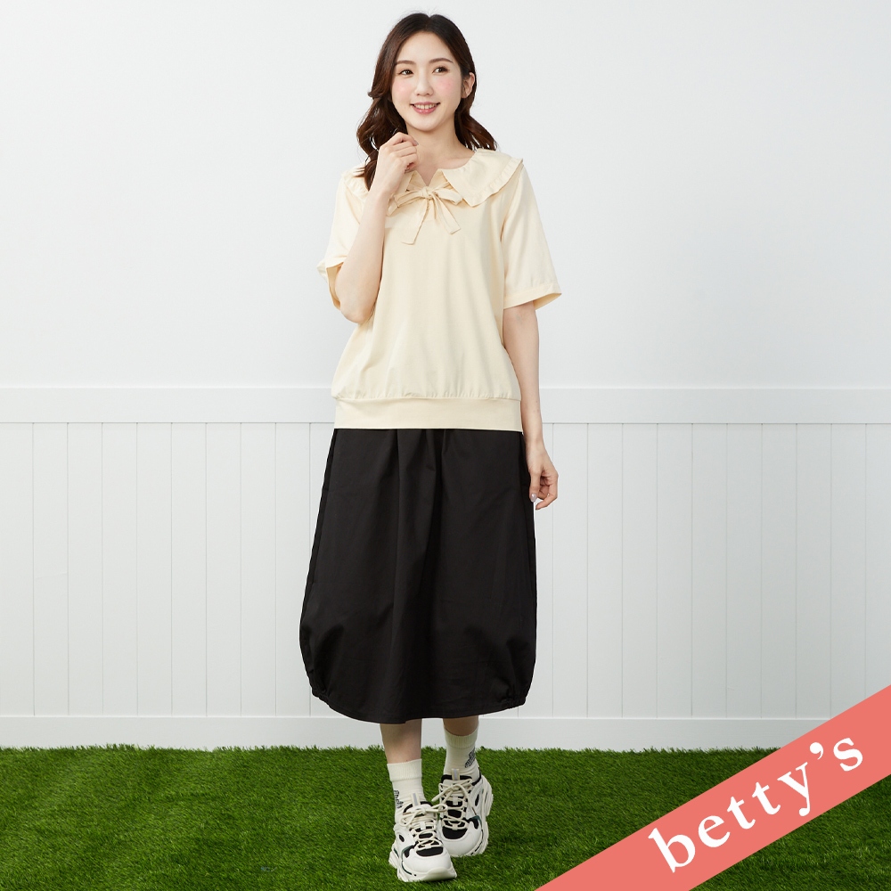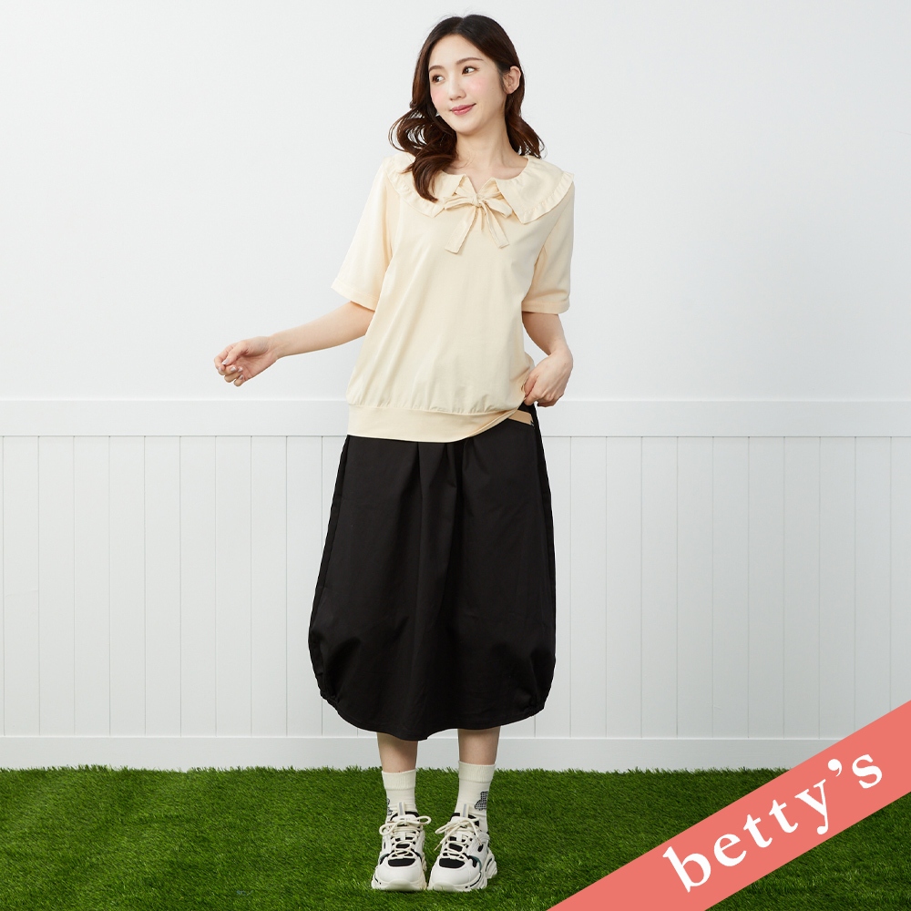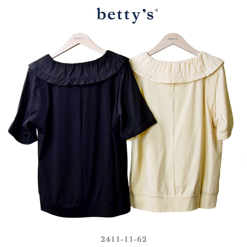 betty’s貝蒂思(41)荷葉邊翻領綁帶拼接上衣(共二色)米白,M|米白,L|黑色,M|黑色,LShirts & Blousesbetty’s貝蒂思