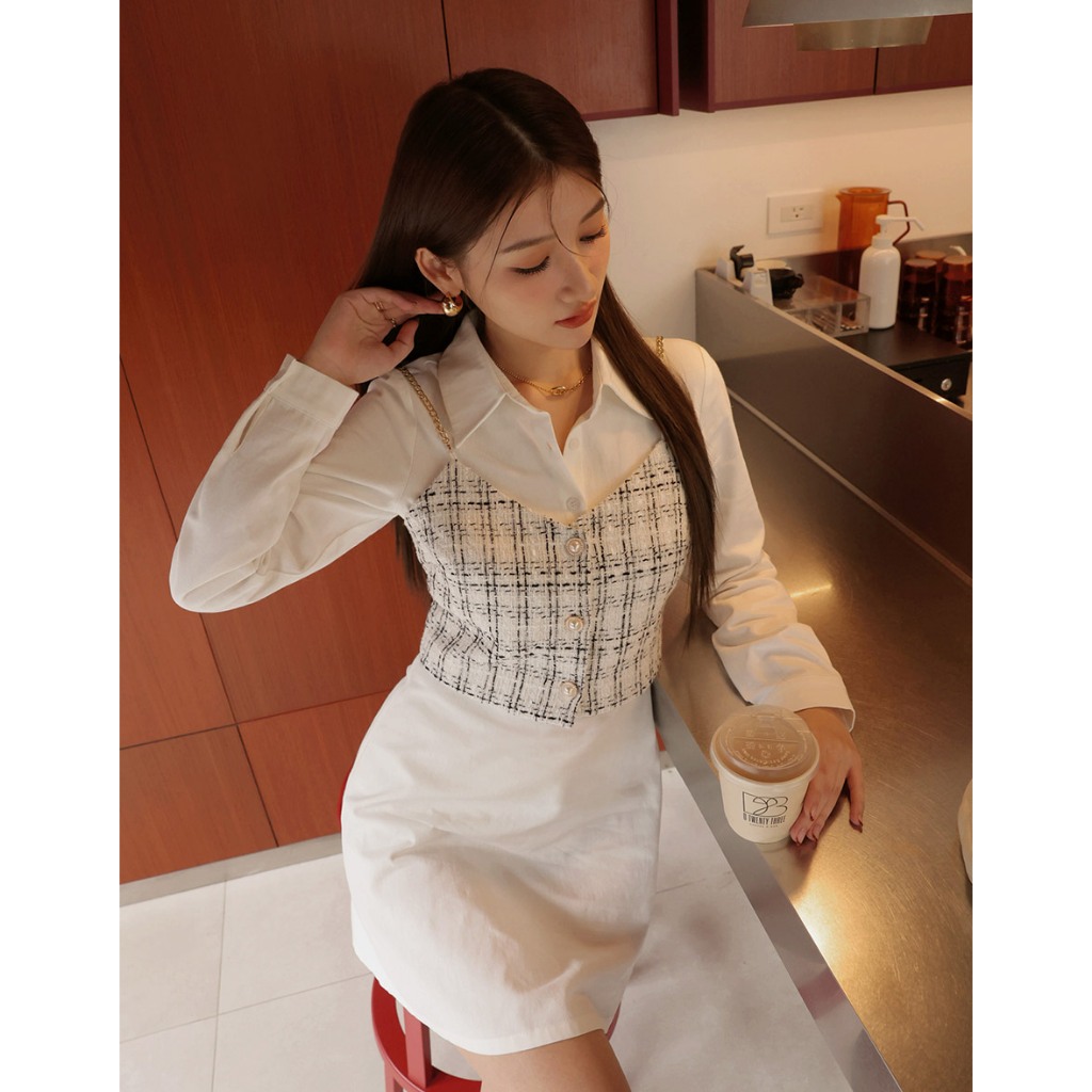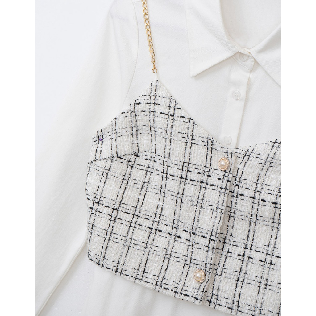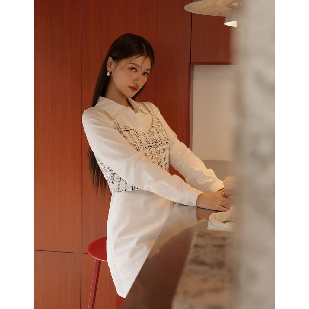 AIR SPACE 小香金鍊格紋襯衫短洋裝(白) 女裝 現貨白,S|白,M|白,LAIR SPACE